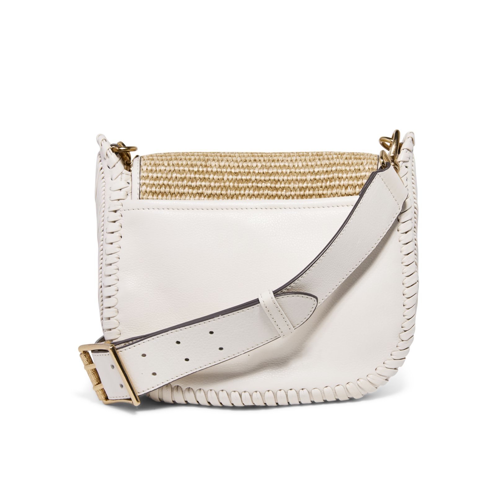 Indulge in the bohemian charm of the Aimee Kestenberg All For Love saddle cross-body bag. This stylish bag combines classic design with modern functionality, featuring a unique raffia body with glove-tanned leather trim and custom hardware. The magnetic snap closure ensures your belongings stay secure, while the adjustable and detachable cross-body strap offers versatile wear. Perfect for everyday use or special occasions, this bag effortlessly blends practicality with chic aesthetics.