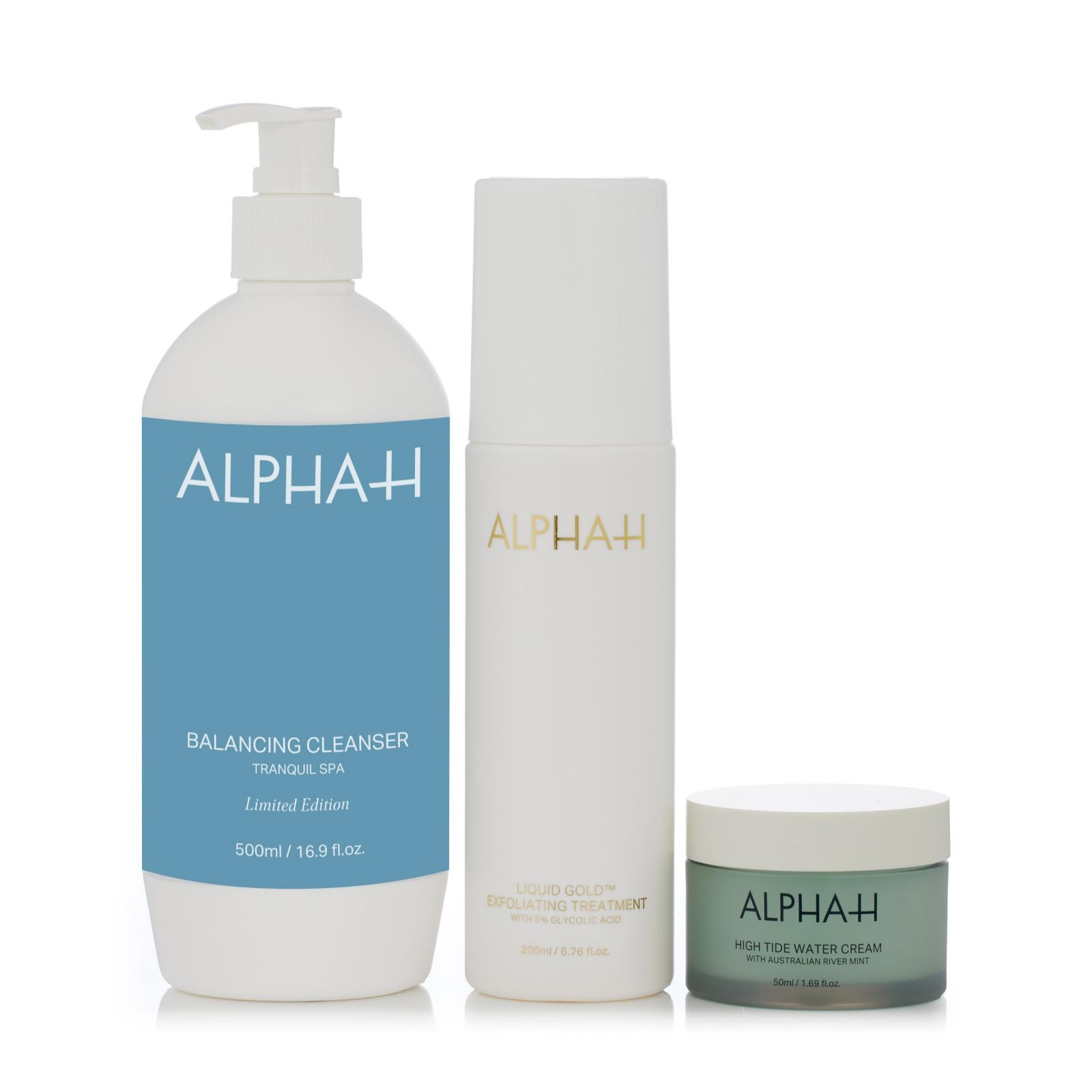 - start your routine with the Balancing Cleanser, a creamy multi-tasker that gently removes make-up and cleanses your skin. Follow with the iconic Liquid Gold, a powerful revitalising lotion that works to improve the look of fine lines and wrinkles, leaving your skin looking brighter and more radiant. Finish off with the High Tide Water Cream, a weightless, water-based moisturiser that provides an instant plumping and hydrating effect.
