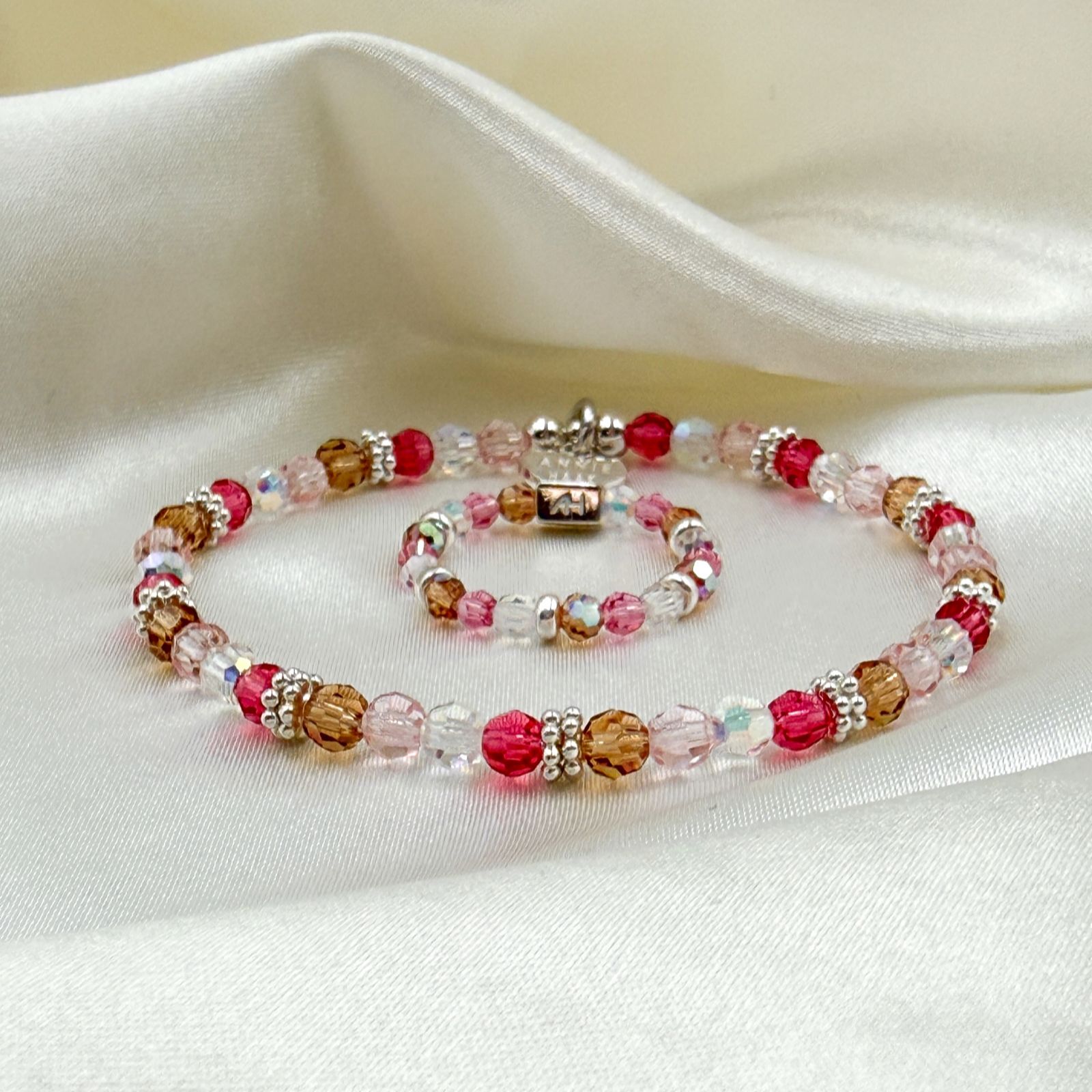 • Multicoloured Preciosa crystals: clear, deep pink, light pink, yellow (quantities vary by size)