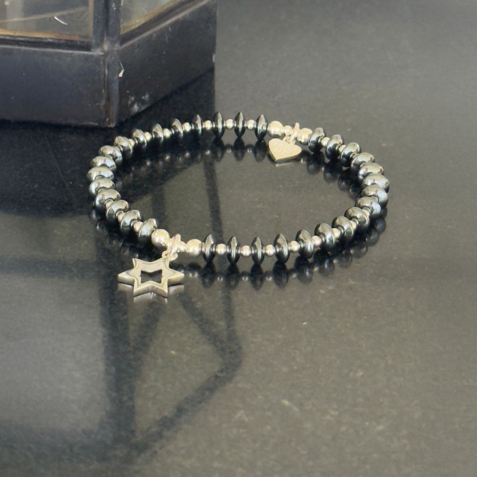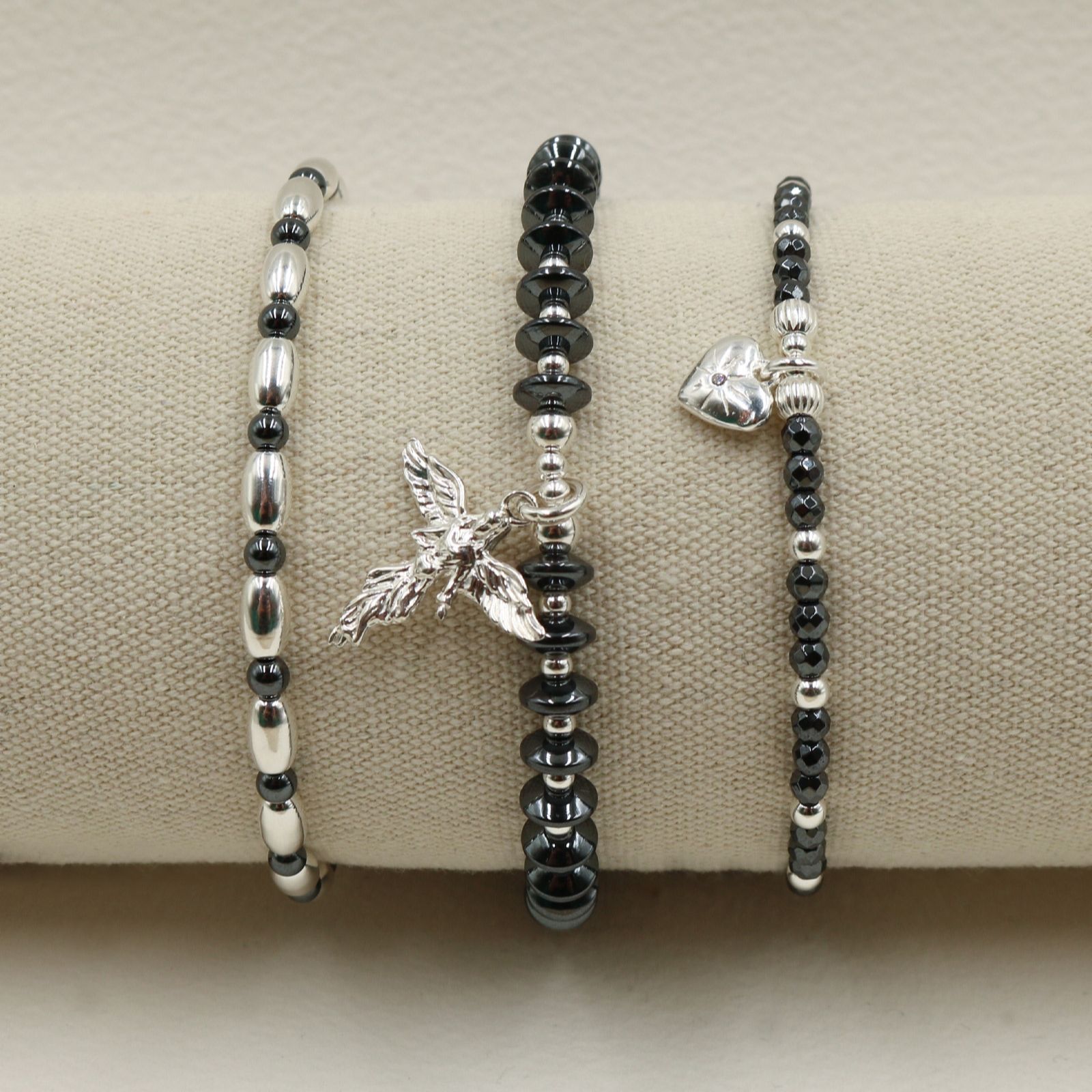 Annie Haak Hematite Disc Silver Charm Bracelet Sterling Silver