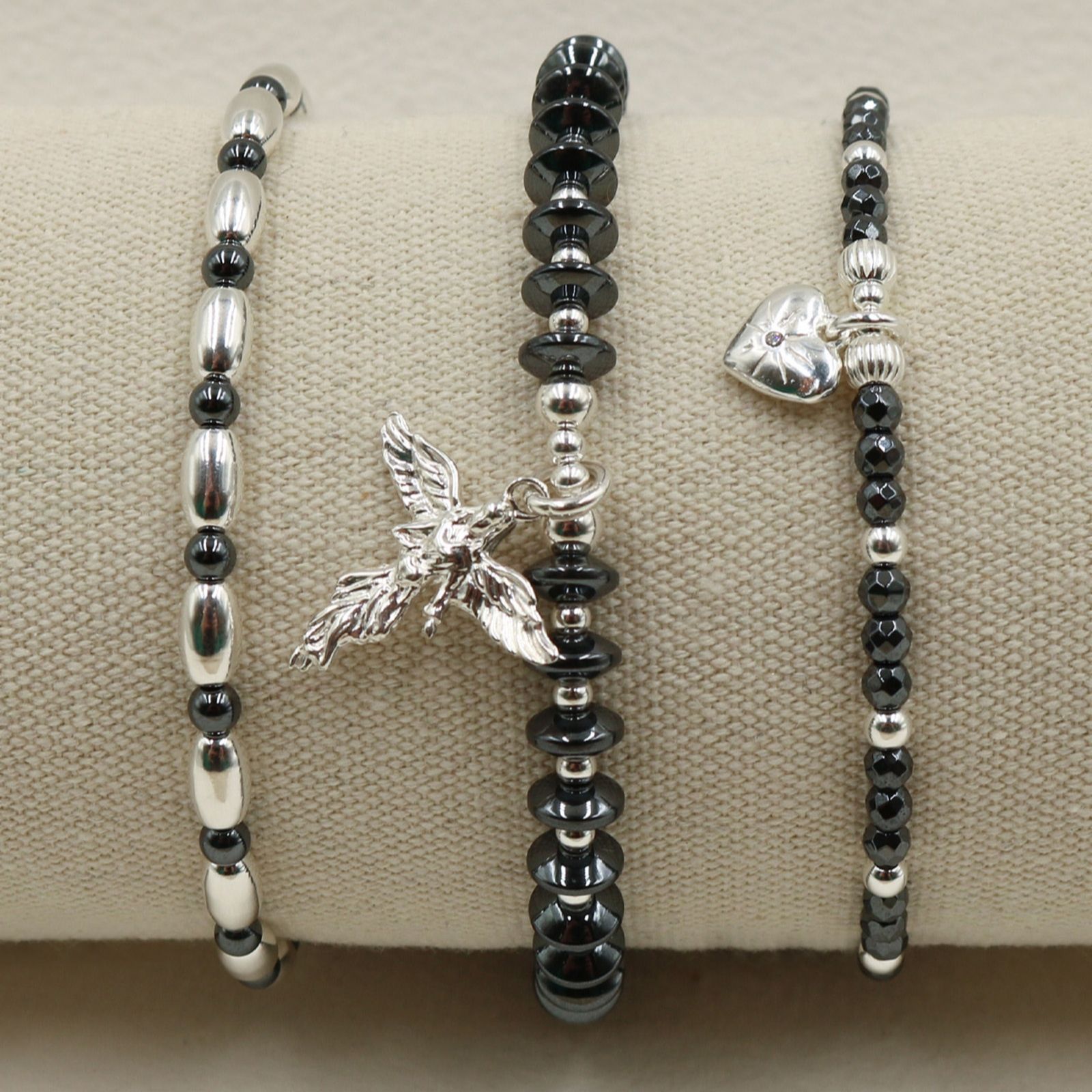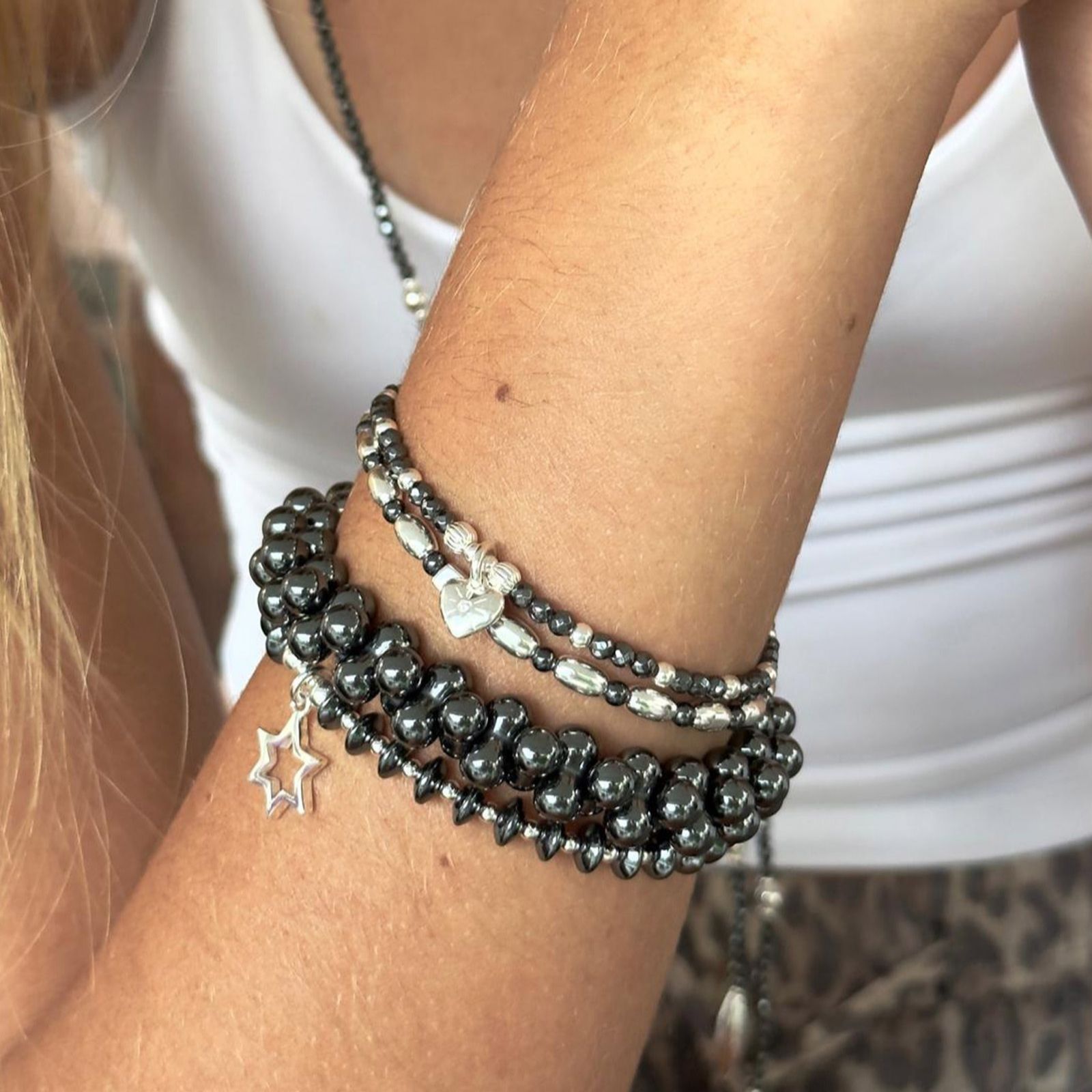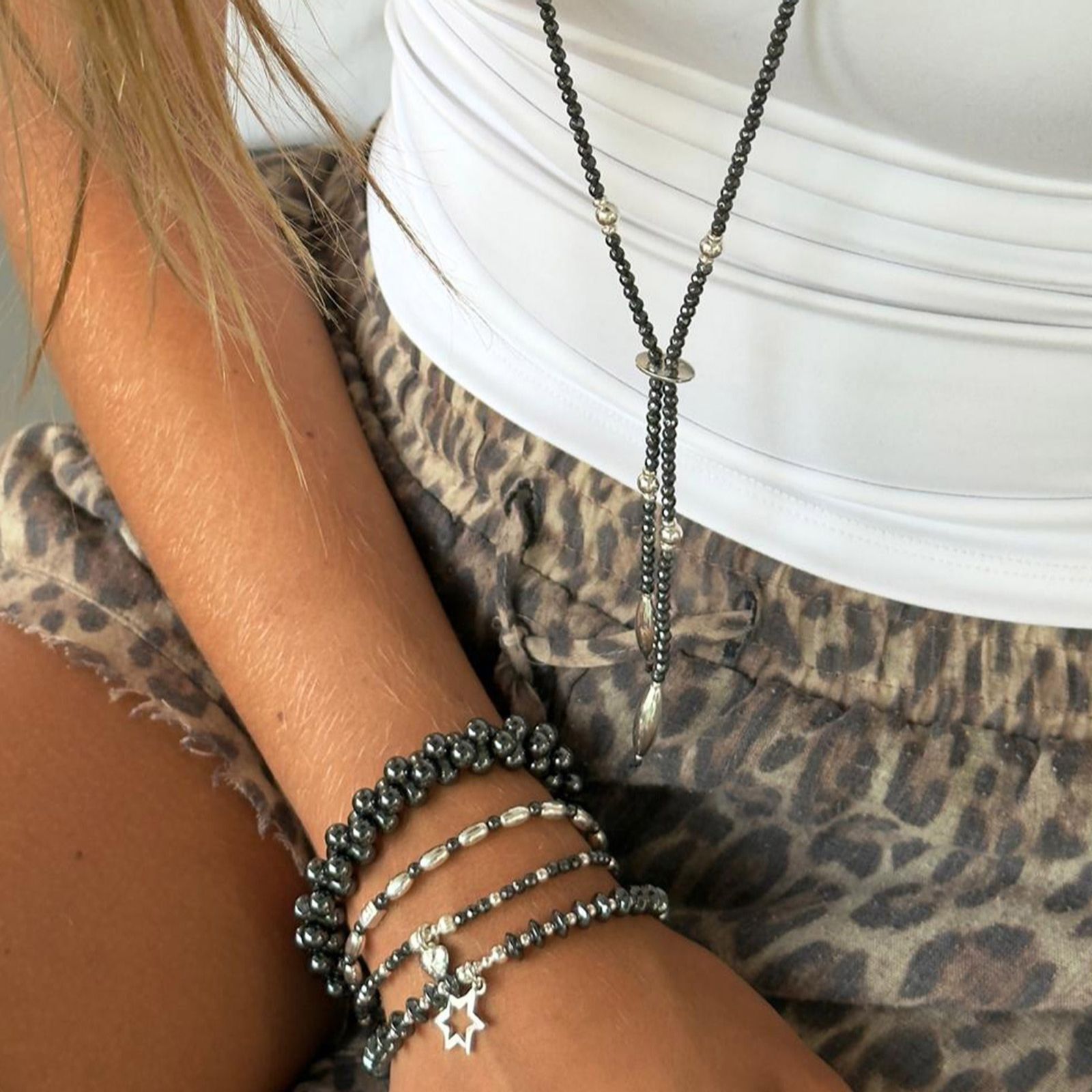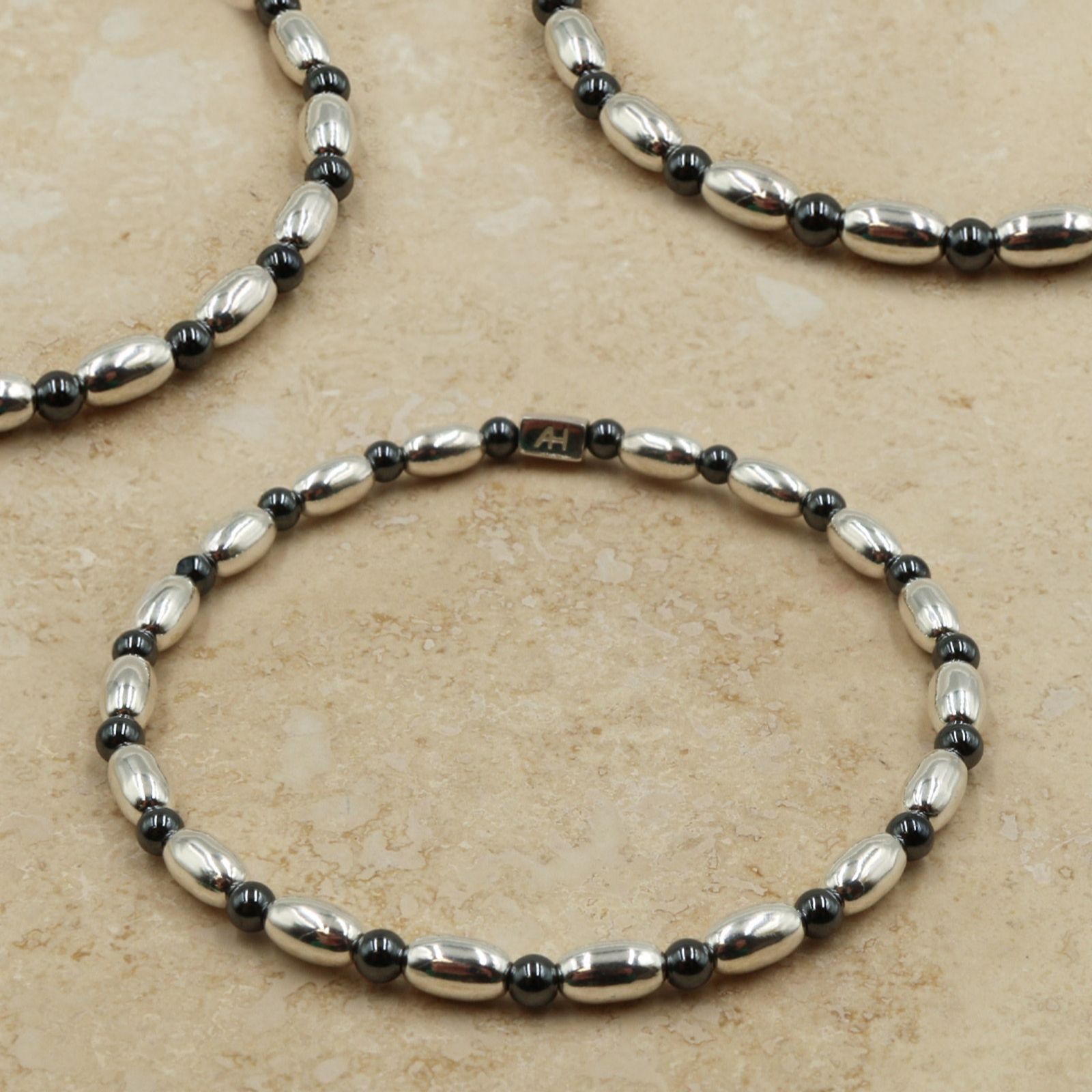 A touch of effortless elegance awaits with the Samoa Hematite Bracelet from Annie Haak, a beautifully handcrafted piece that pairs polished round hematite beads with gleaming 925 sterling silver rice beads. Its minimalist design offers both grounding energy and contemporary sophistication, making it perfect for layering or as a subtle statement for any occasion.