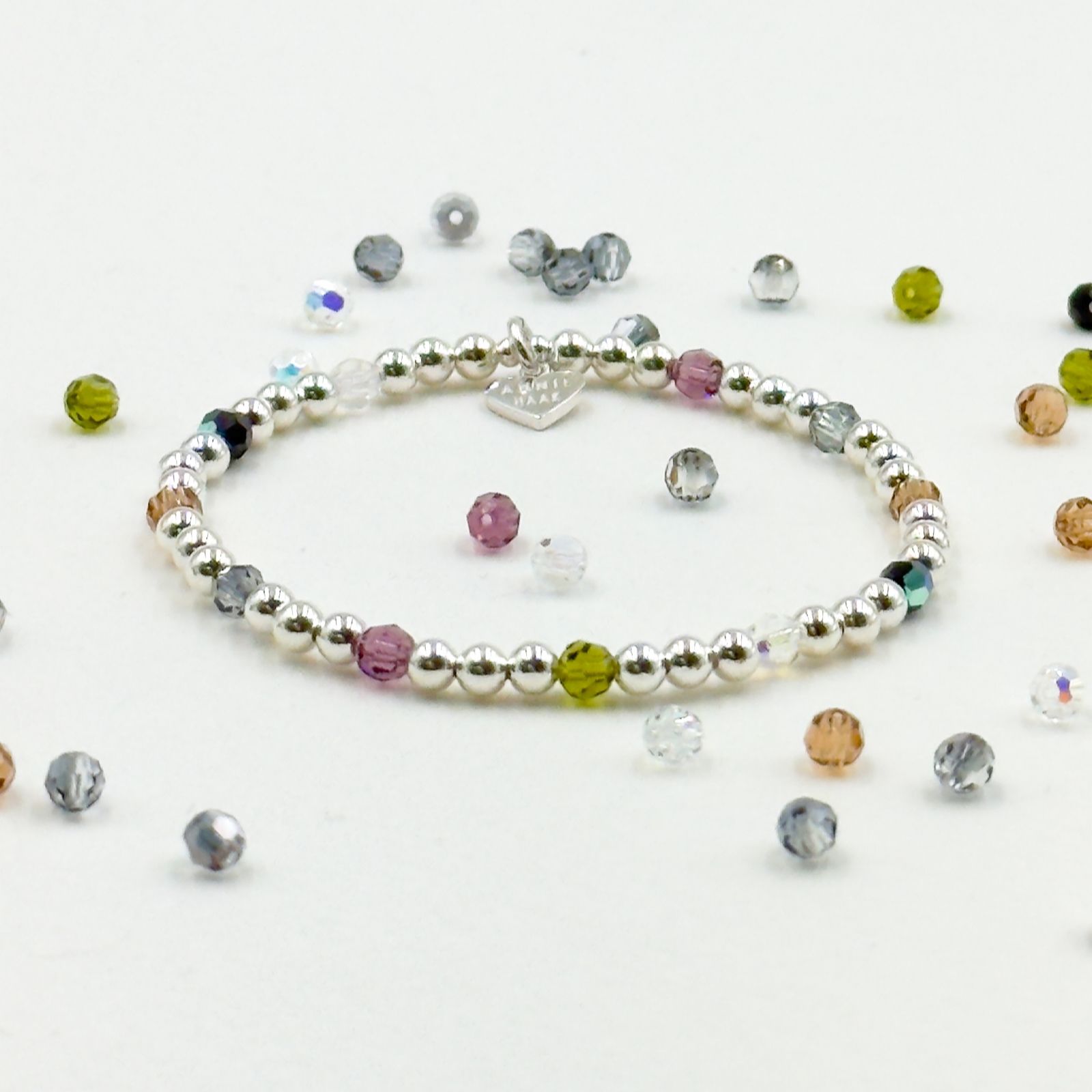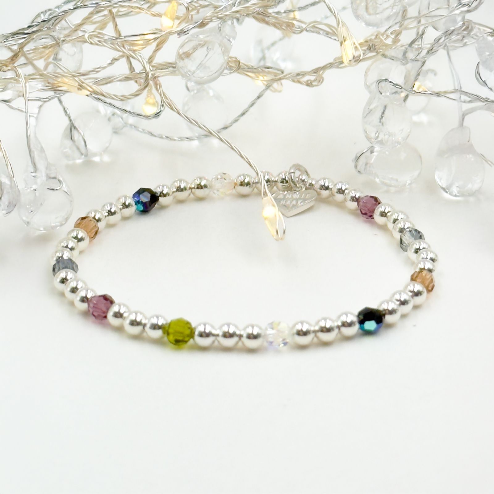 Add a playful pop of colour to your jewellery collection with the Annie Haak Seri Multi Bracelet, a vibrant piece hand-threaded in the UK from sterling silver beads and dazzling Preciosa crystals. Designed with a comfortable stretch fit, its perfect for everyday wear and effortlessly complements any outfit, making it a versatile addition to your accessories.