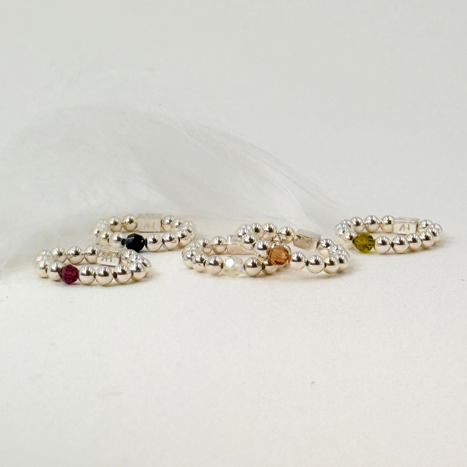 - Hand-threaded on high-quality jewellery elastic for a stretch fit