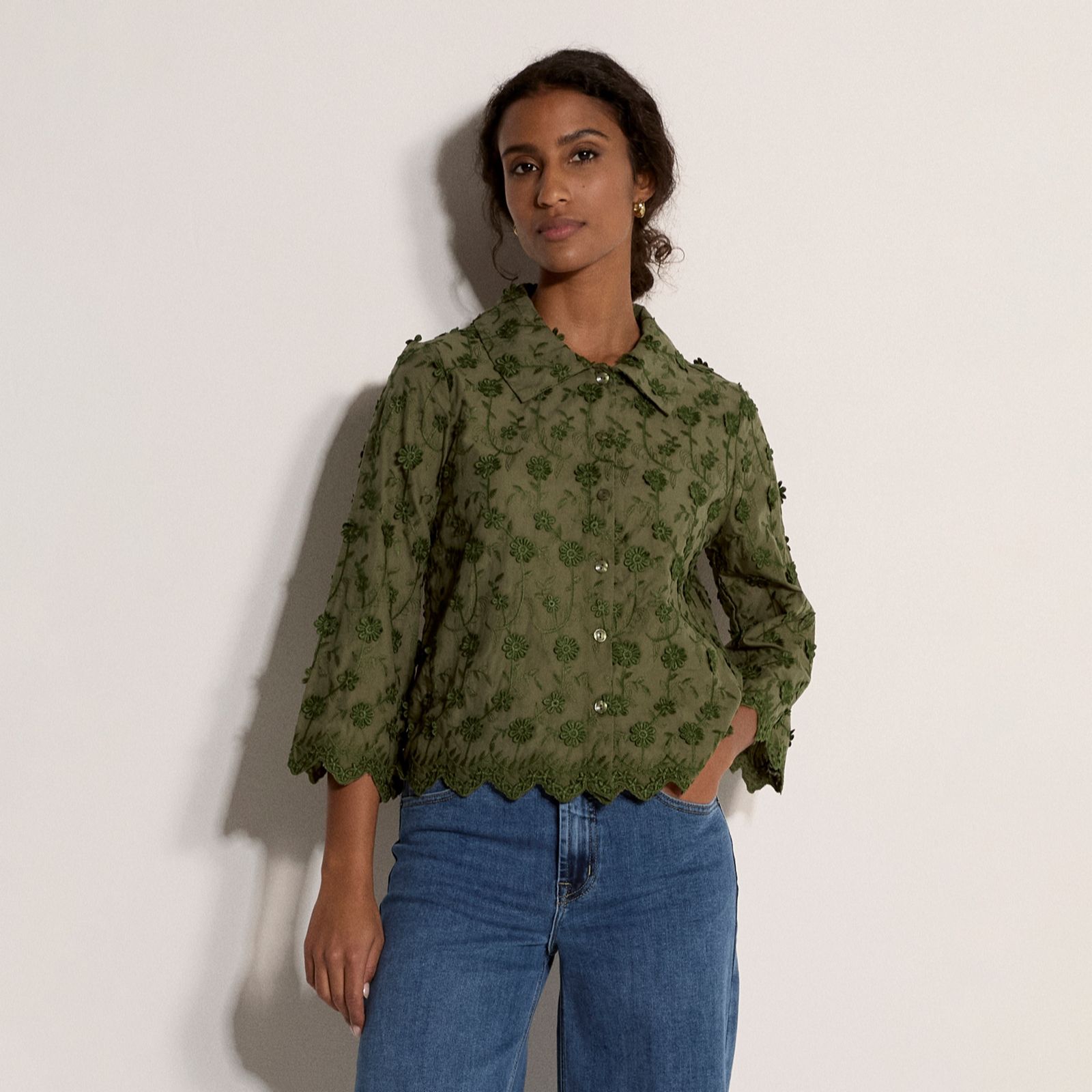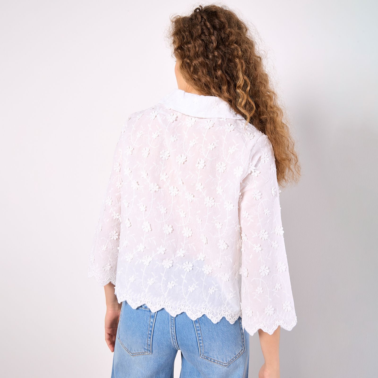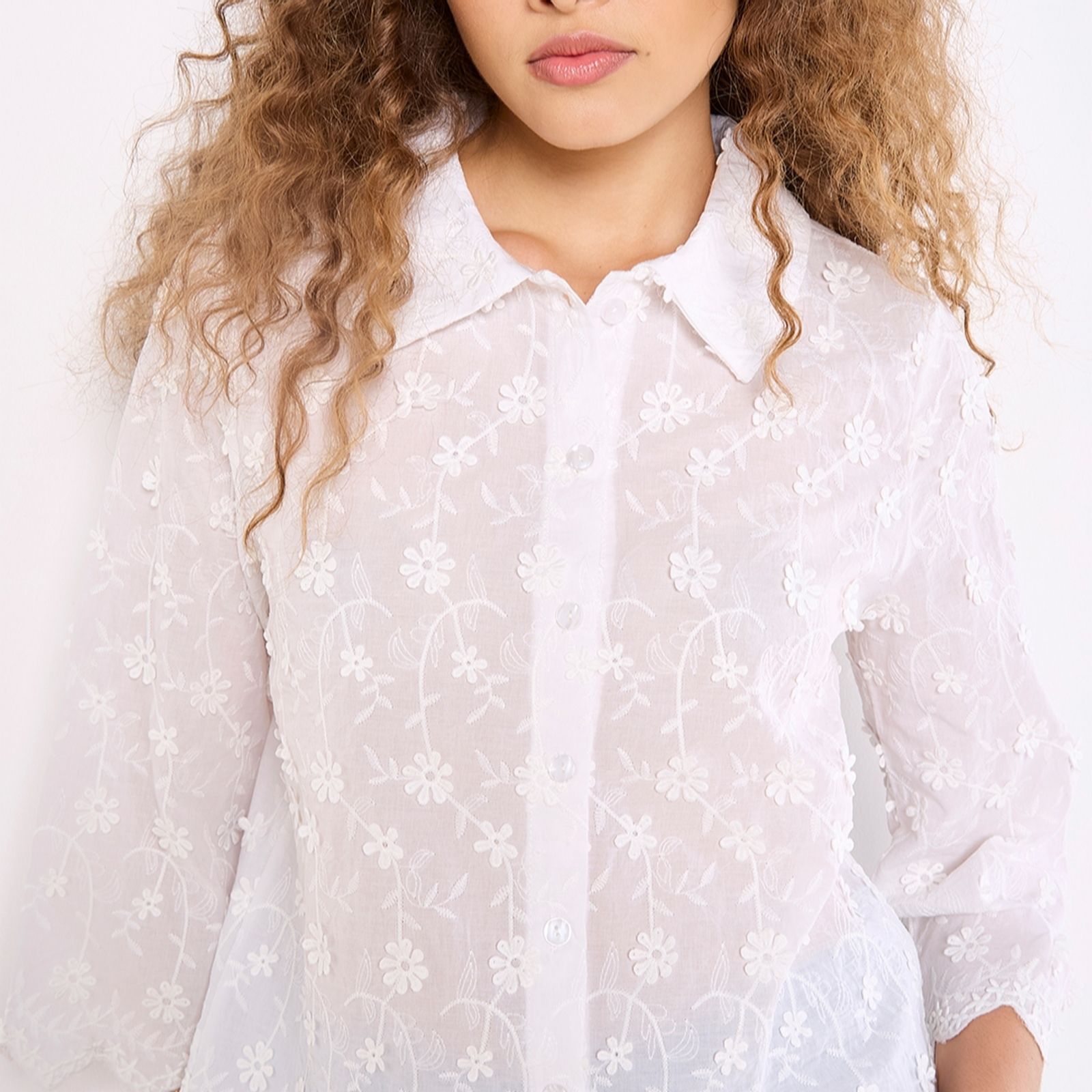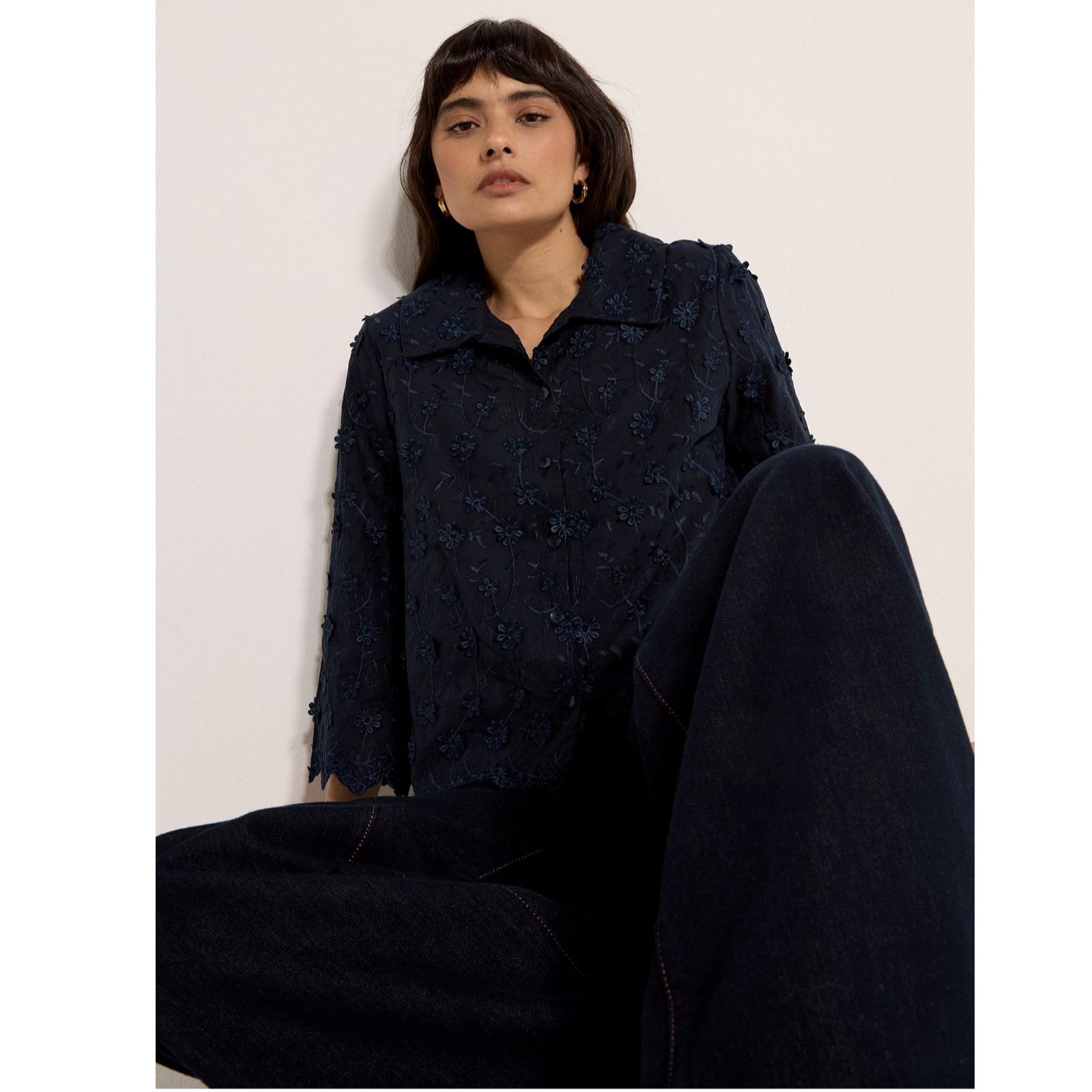 Combine classic elegance with a touch of romantic charm in the 3D floral embroidered crop shirt from Apricot. Showcasing intricate floral embroidery that adds beautiful texture and depth, this cropped design is perfect for pairing with high-waisted jeans or skirts for a chic daytime look or layering over a slip dress for an effortlessly stylish evening ensemble. Dress it up with tailored pieces or keep it casual with relaxed denim for versatile wear.