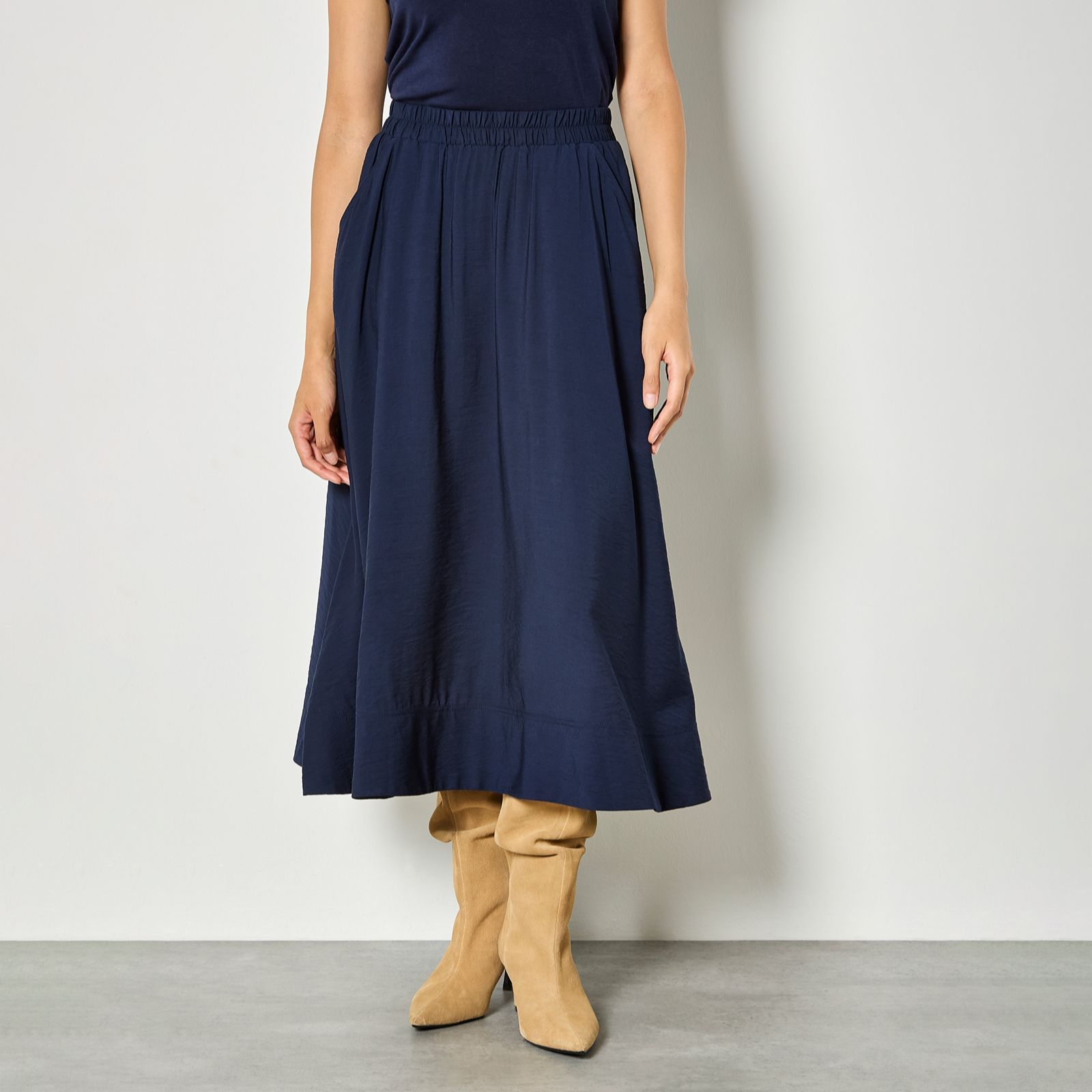 - A-line midaxi design offers a flattering, feminine silhouette