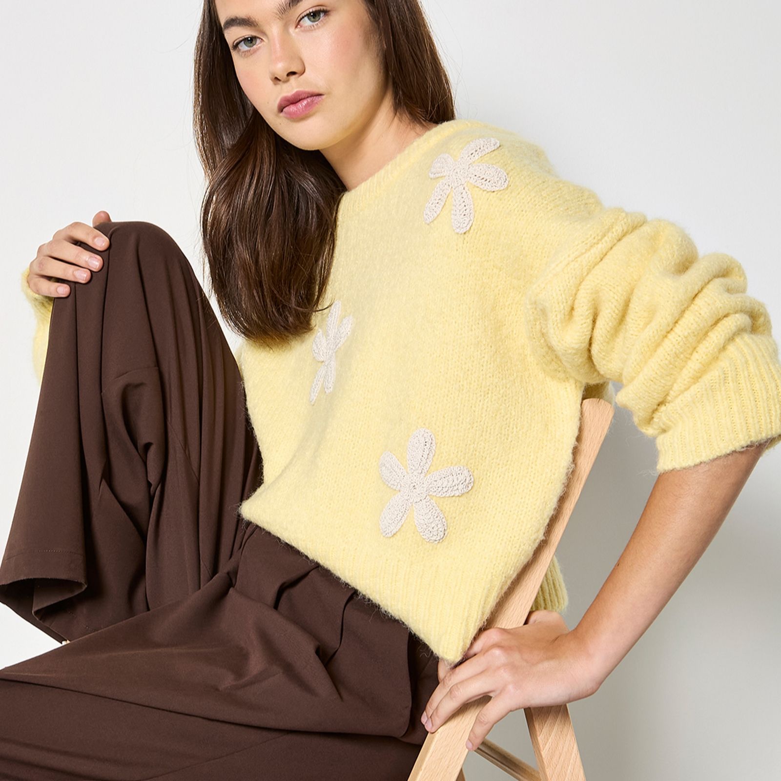 Embody the joy of daisies with the charming boxy jumper from Apricot, adorned with delicate daisy appliques that bring a playful touch to your everyday style. Its relaxed silhouette and cheerful yellow hue make it a versatile piece for everything from weekend brunches to casual days out. Pair it with your favourite jeans and trainers for an effortlessly uplifting look that's both cosy and chic.