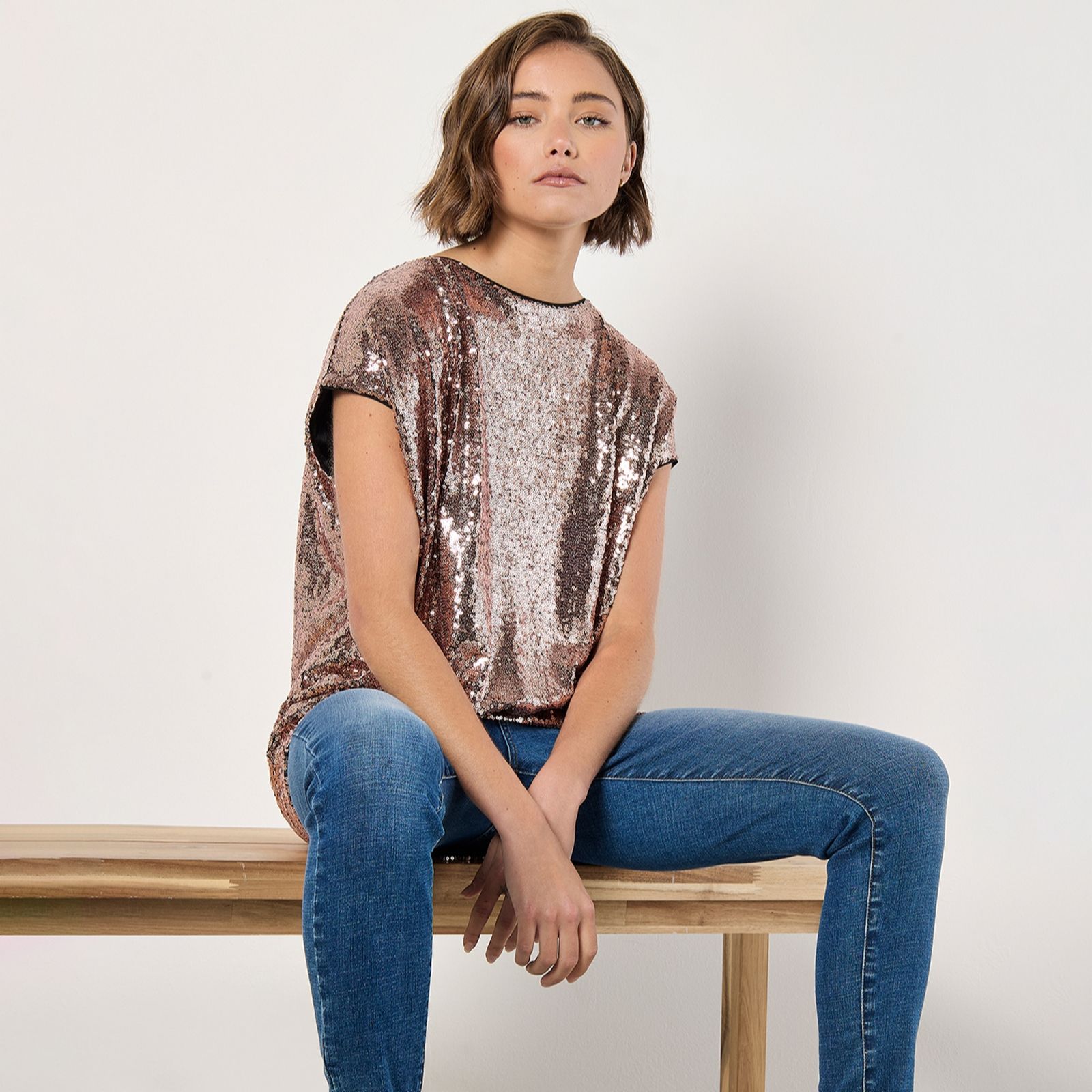 Add a touch of glamour to your wardrobe with the Flat Sequin Cocoon Top from Apricot. This stunning piece effortlessly blends comfort and style, featuring a relaxed cocoon silhouette adorned with shimmering flat sequins that catch the light beautifully. Perfect for both day and evening wear, it offers a chic and versatile option for any occasion. Pair it with your favourite skinny jeans and heels for a night out, or dress it down with casual trousers for a laid-back yet stylish look.