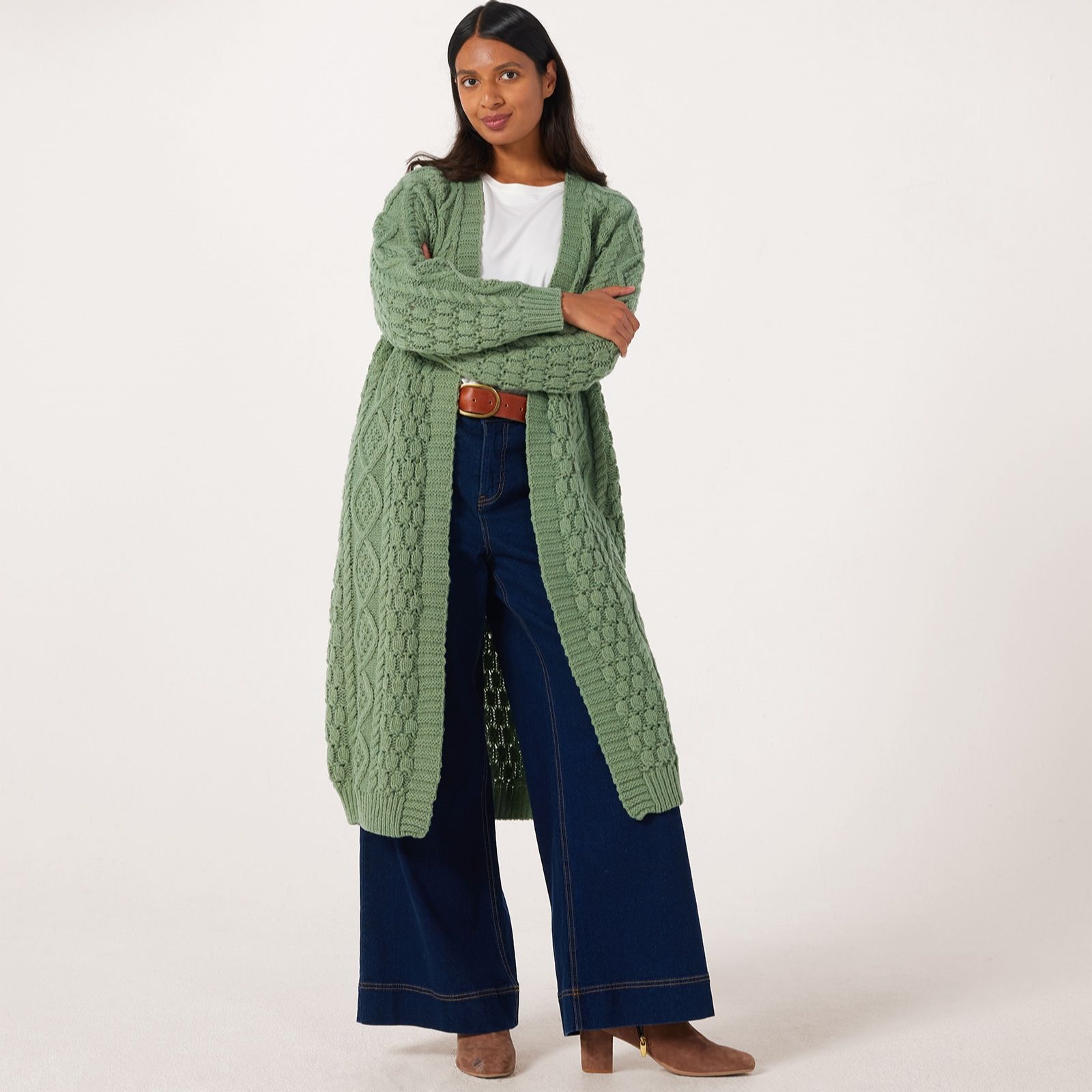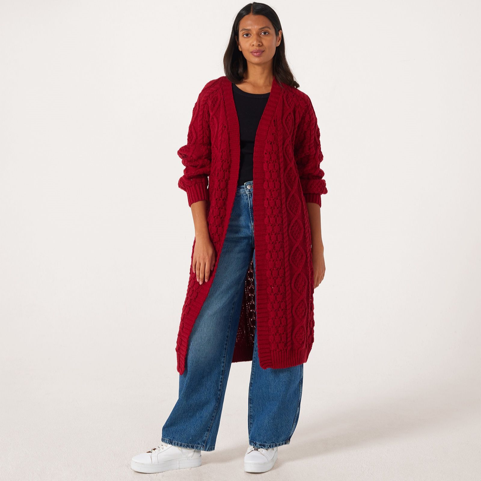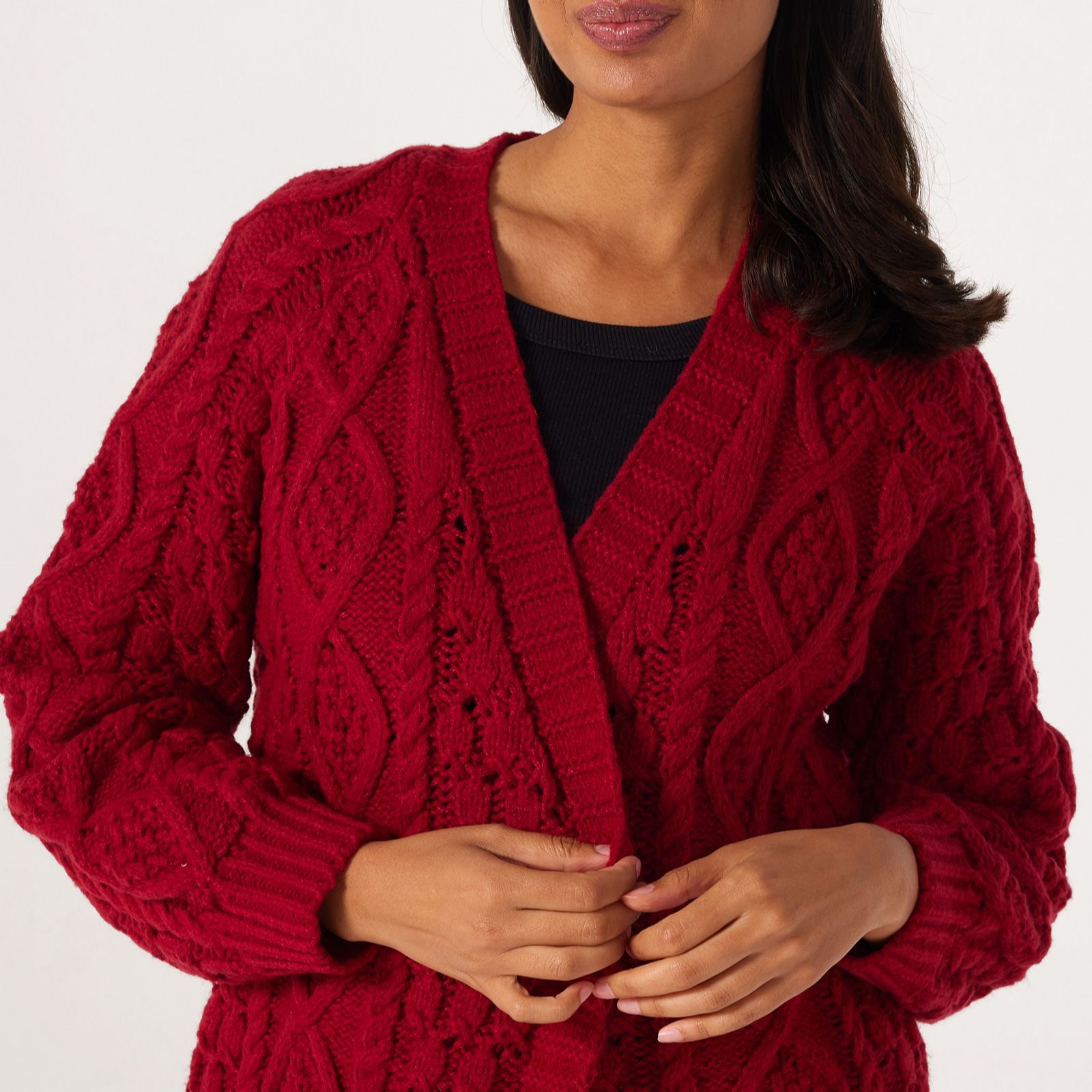 Throw on instant cosy charm with this longline cardigan from Apricot. Featuring a chunky cable knit, this cardigan's longline design and dropped shoulders create a contemporary yet comfy look that's perfect for transitional weather. Whether you're heading to work, out on a coffee date or just chilling at home, layer this versatile piece over your favourite outfits for a snug style upgrade.