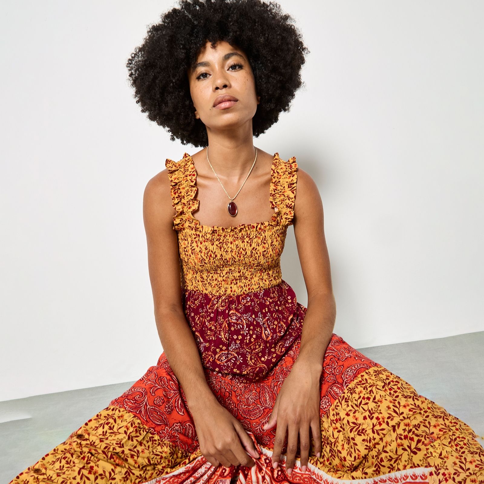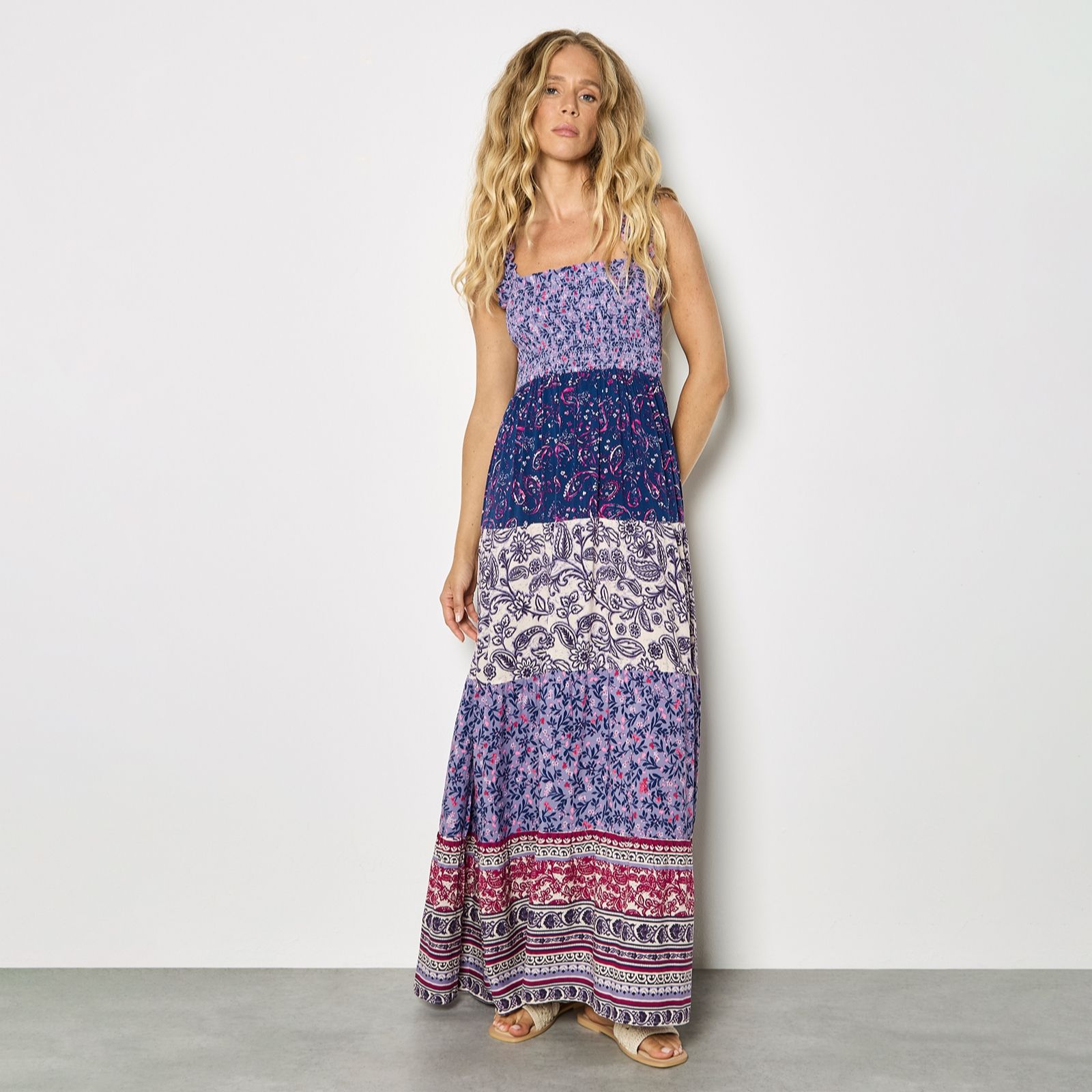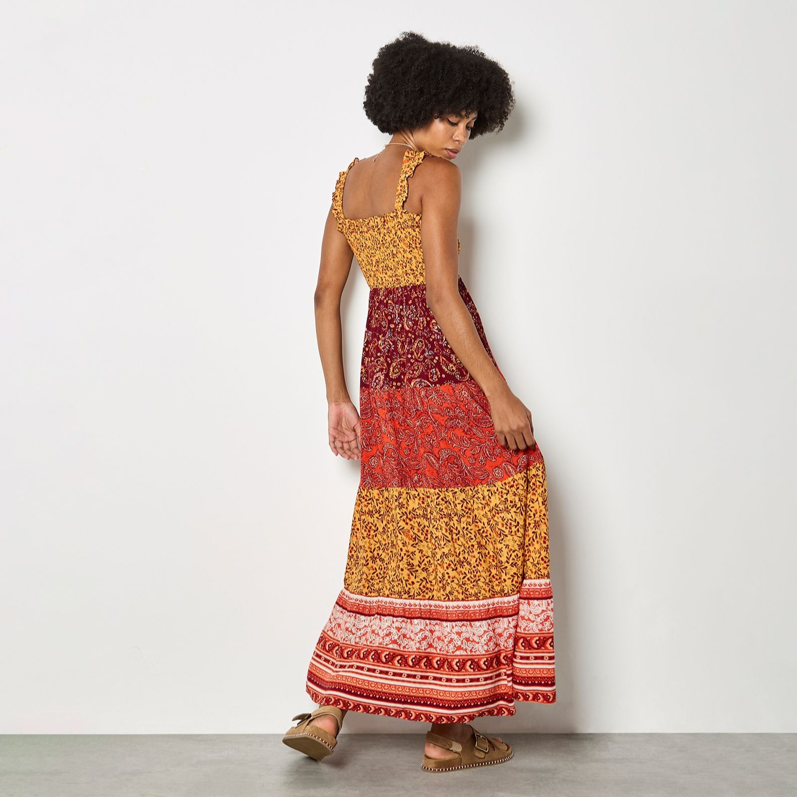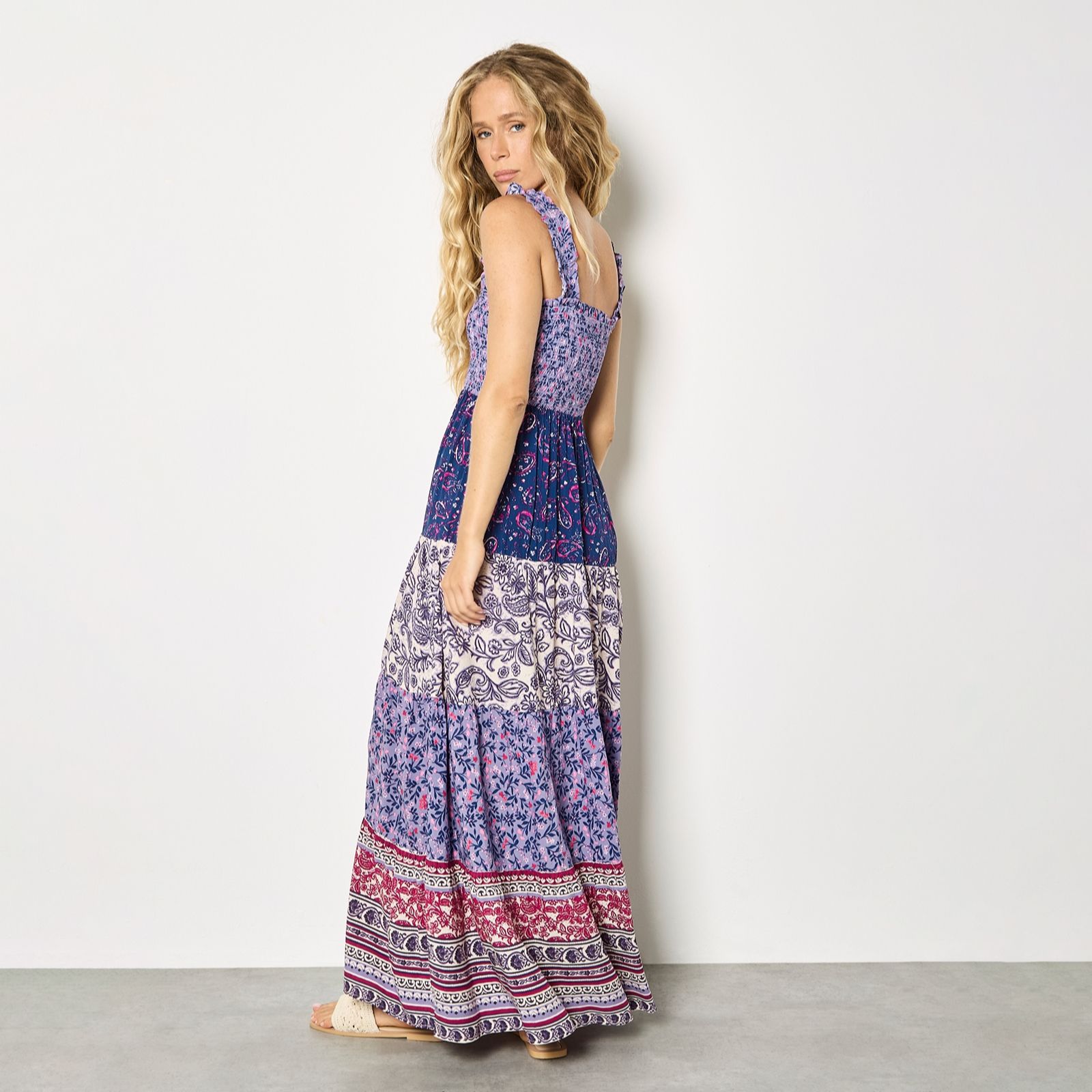 Bring a touch of bohemian charm to your wardrobe with the Apricot patchwork print tiered maxi dress, a flowing silhouette that captures carefree elegance. Its tiered design moves beautifully as you walk, making it perfect for relaxed weekends, summer gatherings or holidays abroad. Pair this dress with woven sandals and a denim jacket for an effortless, laid-back look that's full of personality.