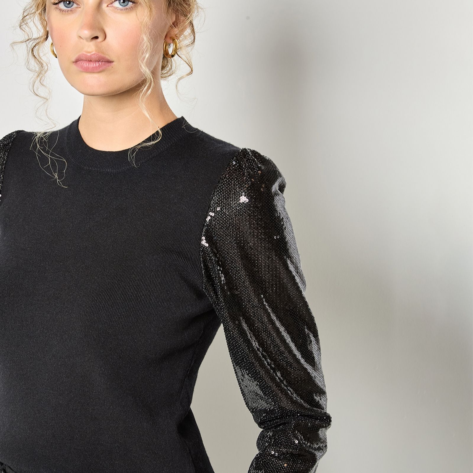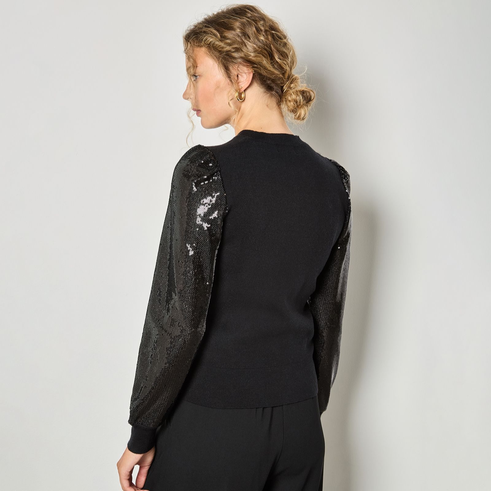 - Long sleeves with sequin embellishments
