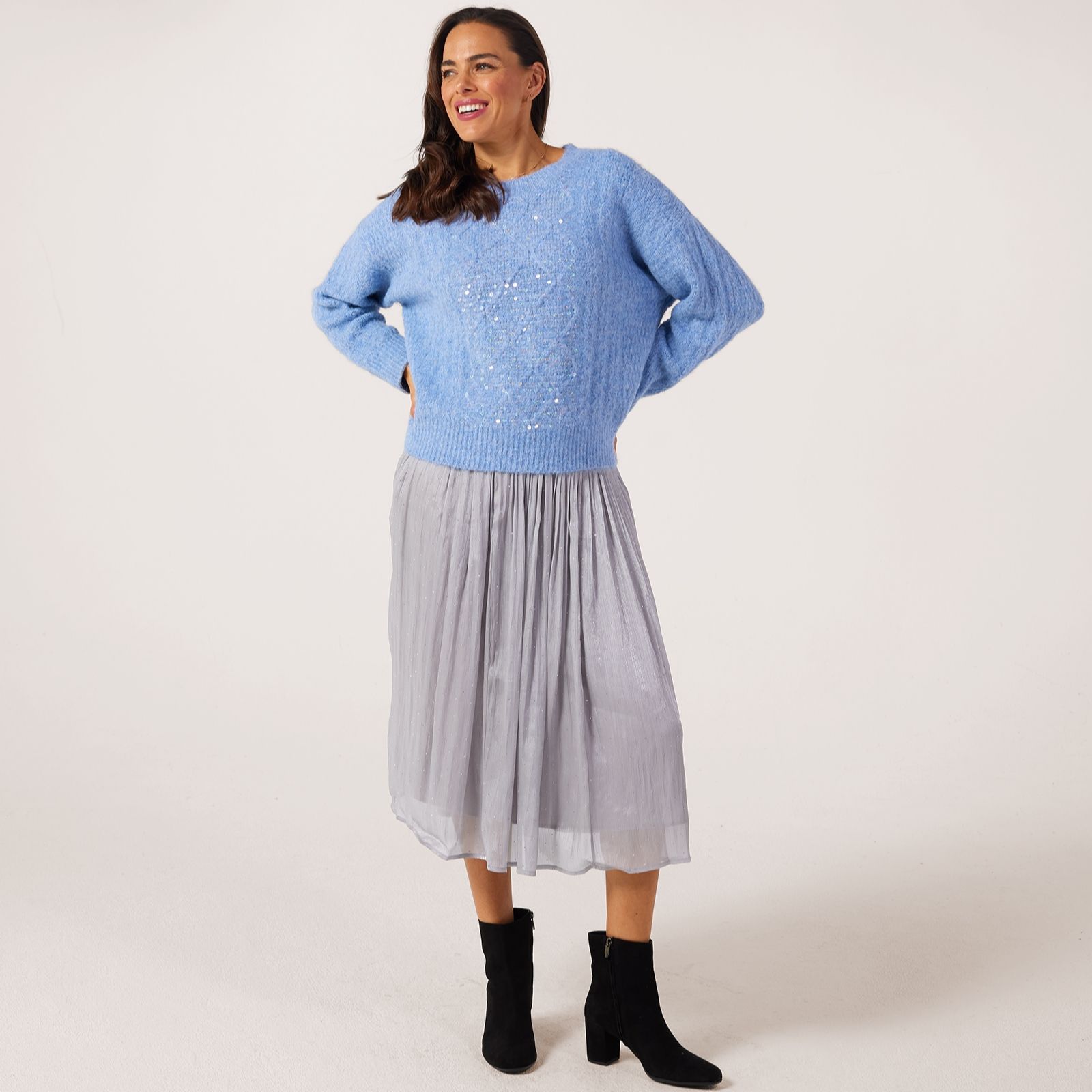 don't save the sparkle for special occasions, this gorgeous jumper can be slipped on over your everyday ensembles to elevate them with a fabulous finishing touch.