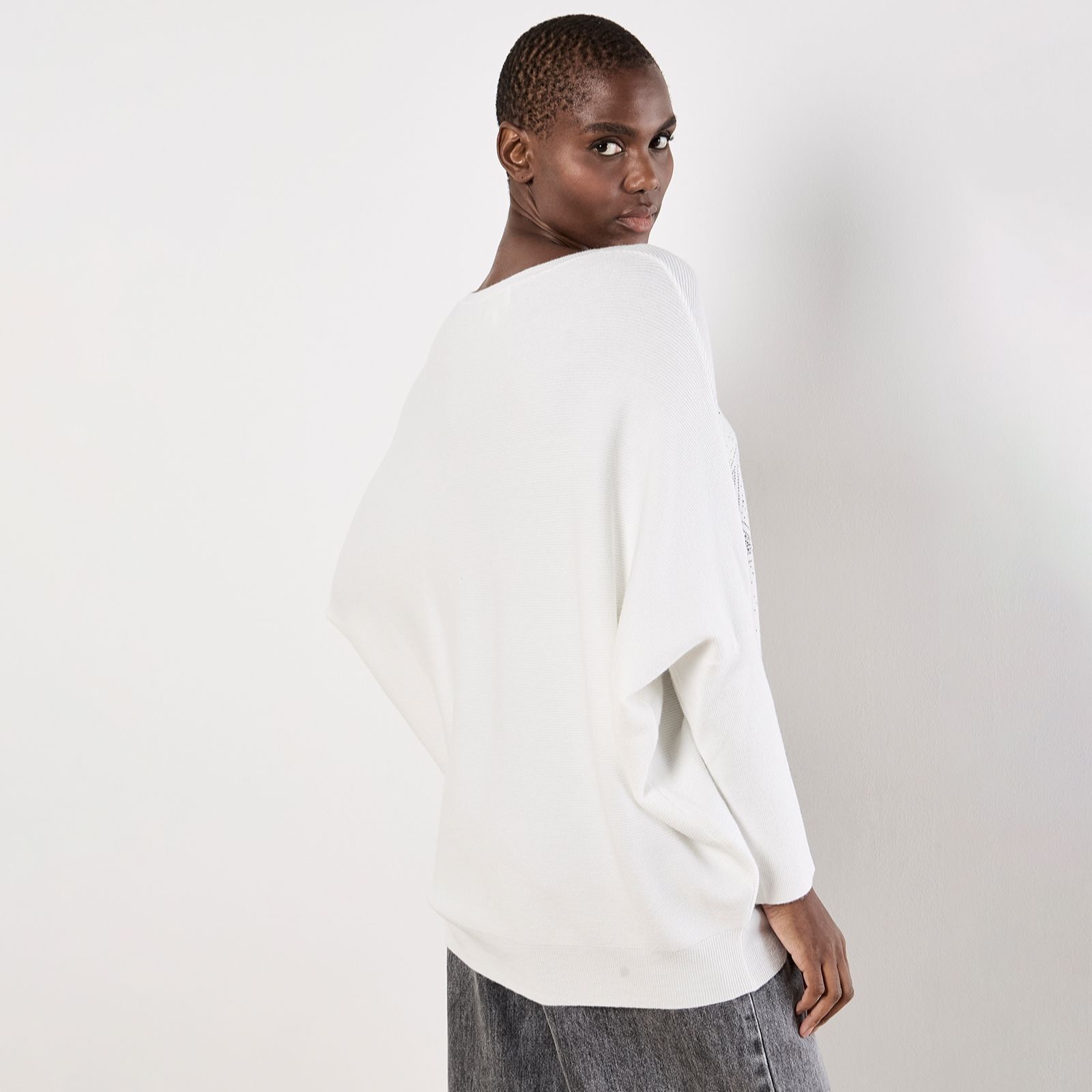 Add a touch of sparkle to your everyday style with this oversized batwing tunic jumper from Apricot. Adorned with studded star detailing across the front, it offers a relaxed, draped fit thats effortlessly chic and comfortable. Perfect for casual days, coffee catch-ups, or layering for an evening out, this jumper brings versatile flair to your wardrobe. Pair it with skinny jeans and ankle boots for a polished yet laid-back look.