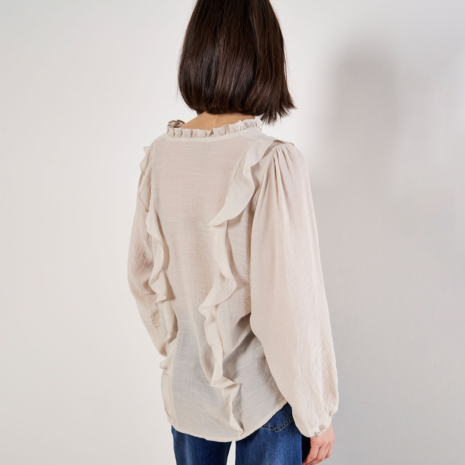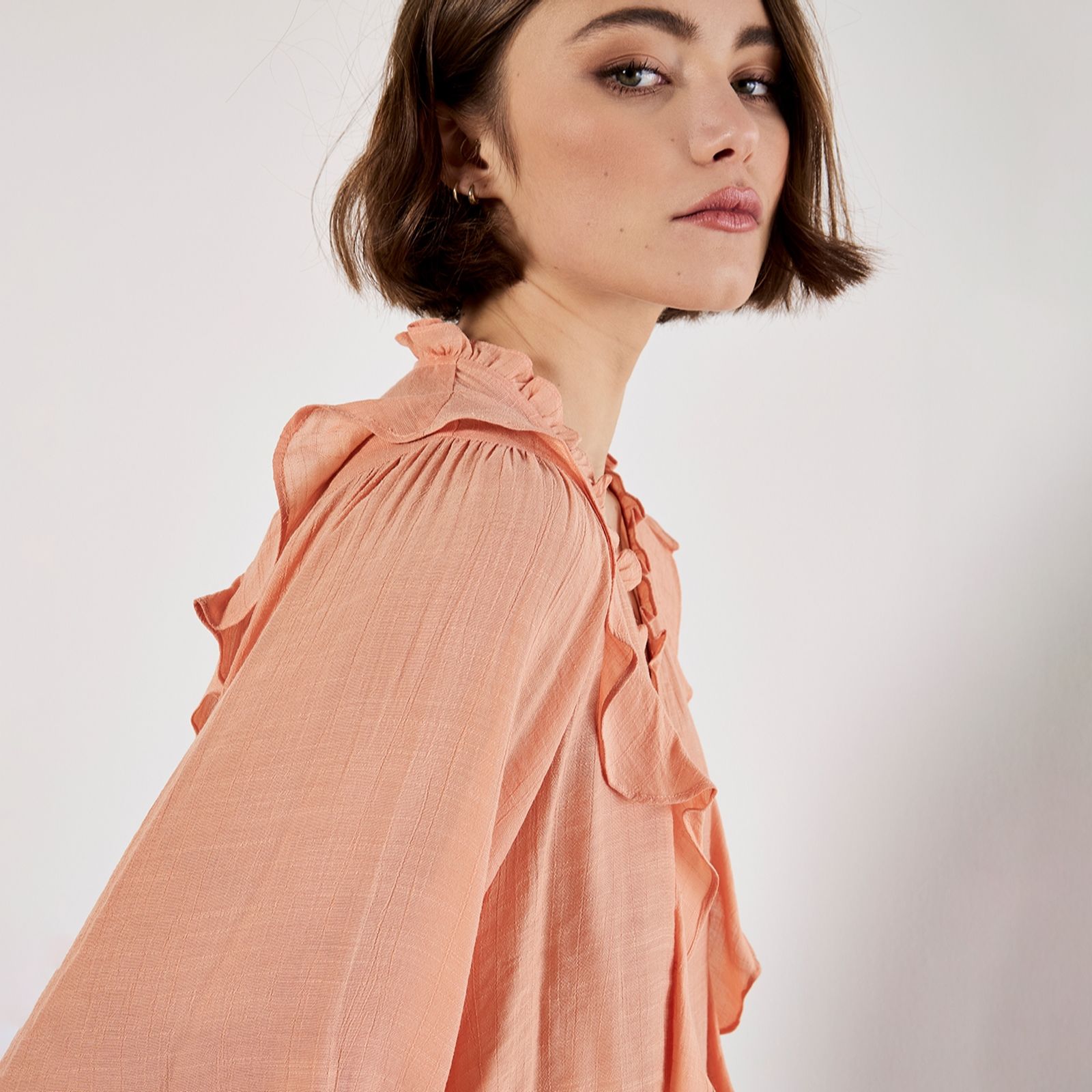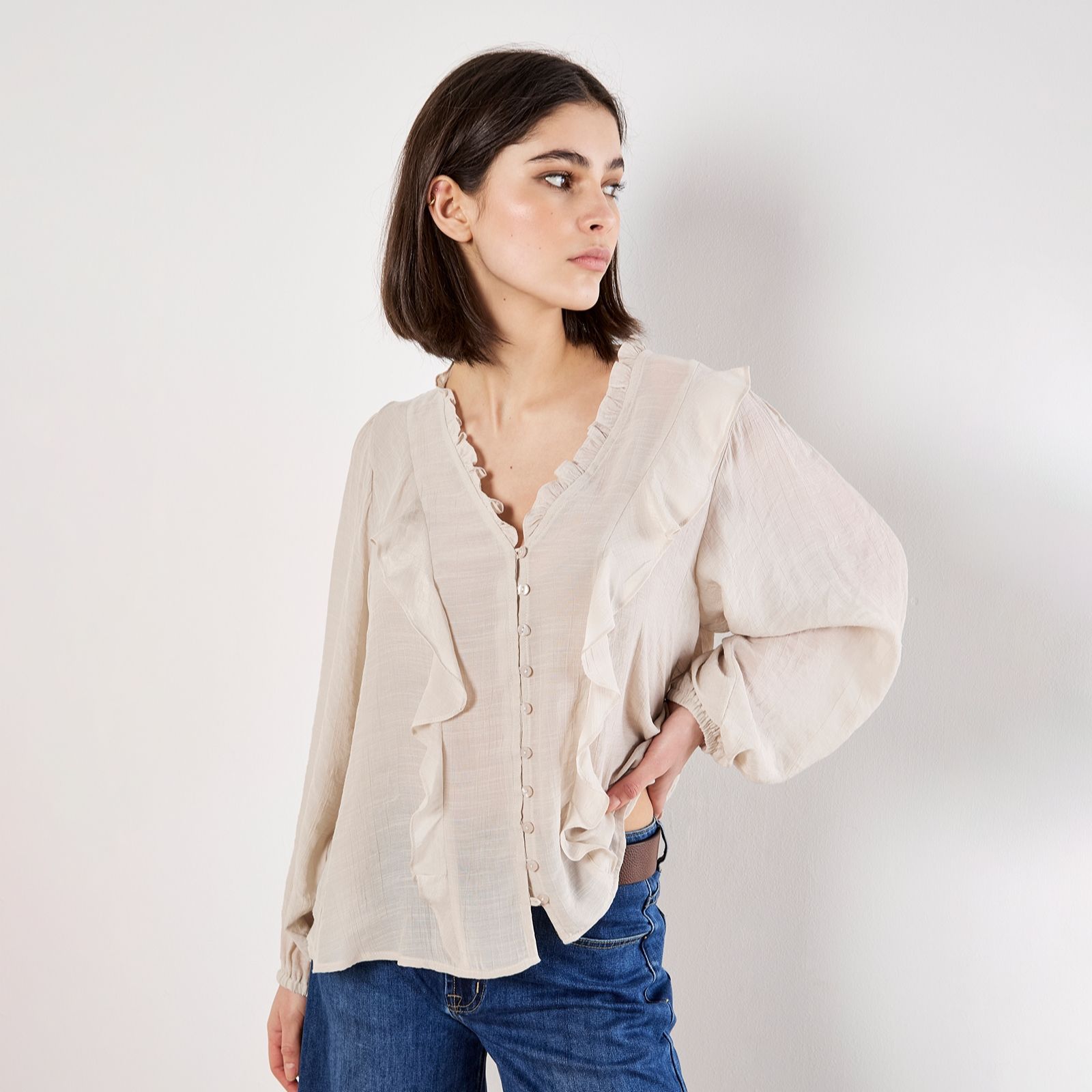 Shimmer with subtle elegance in the vertical ruffle slub shimmer shirt from Apricot. This piece brings a touch of sophistication to any wardrobe with its delicate ruffled accents and gentle sheen. Ideal for both office meetings and evening get-togethers, it transitions seamlessly from day to night. For a polished look, tuck it into tailored trousers and finish with statement earrings.