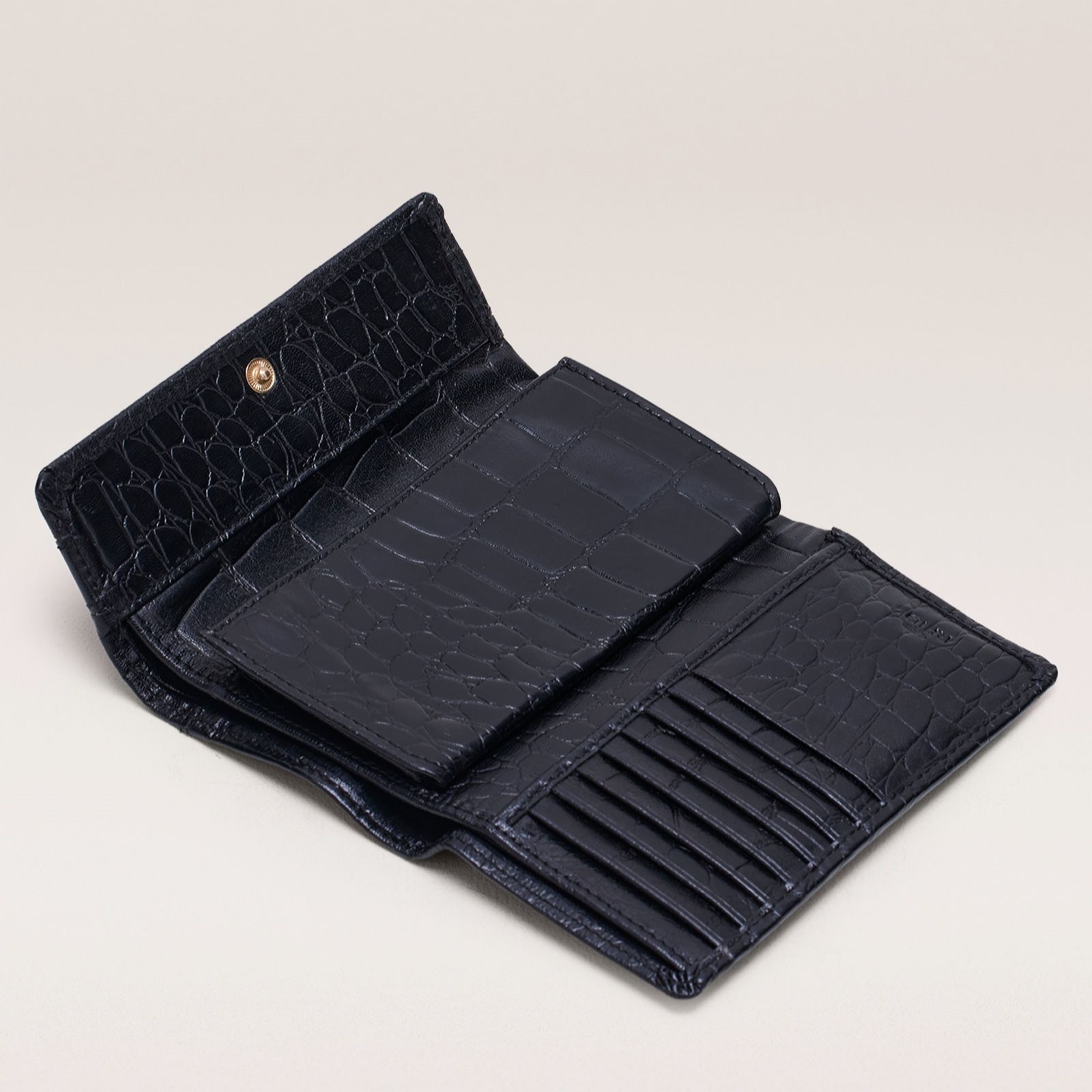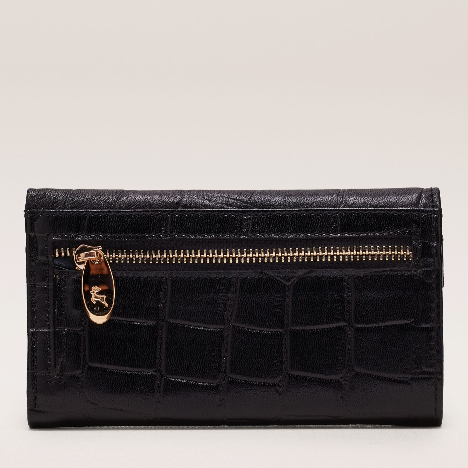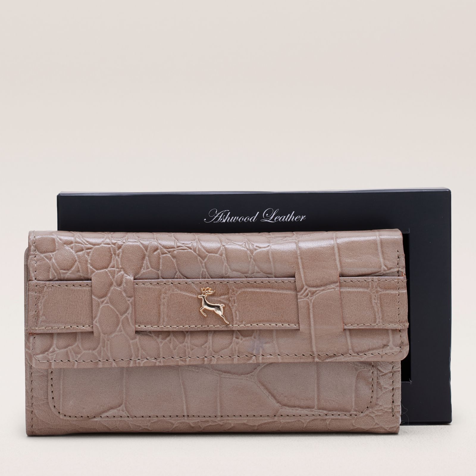 Step out in sophistication with the Ashwood Leather croc leather boxed purse, where timeless design meets everyday practicality. The elegant flap-over style is enhanced by a subtle strap logo detail, while thoughtfully arranged compartments and RFID protection ensure your cards are kept secure and organised, whether you're heading to brunch or a busy day in the city.