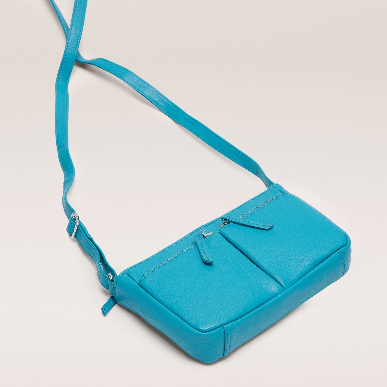 • Adjustable cross-body leather strap