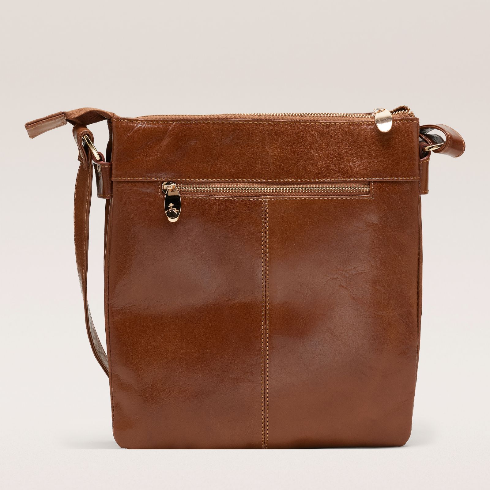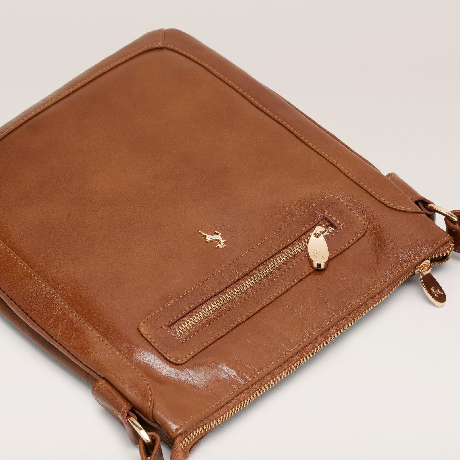Effortlessly combining timeless style and everyday practicality, Ashwoods large crossbody bag is beautifully crafted in genuine leather with a sleek silhouette and front zip pocket for easy access to your essentials. With its thoughtfully designed twin inner sections and elegant gold paisley jacquard lining, this bag is perfect for busy days, city strolls or simply elevating your daily routine.