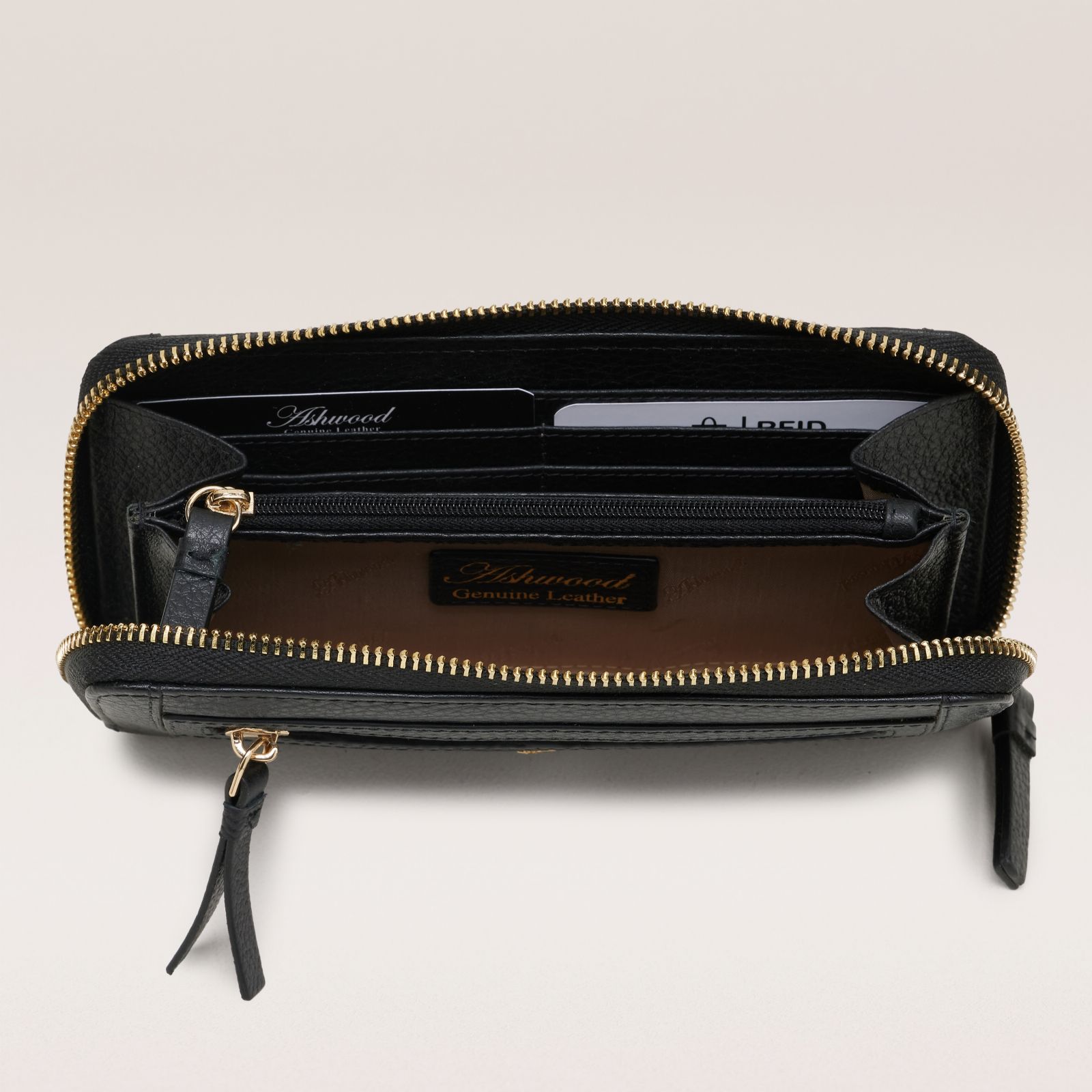Chic yet practical, the Ashwood large purse with zip pocket brings timeless style to your everyday essentials. Crafted from genuine leather and finished with a handy zip-around closure, it boasts twin gusseted compartments, a central zip pocket and RFID protection to keep your valuables secure, whether youre popping to the shops or heading out for the evening.