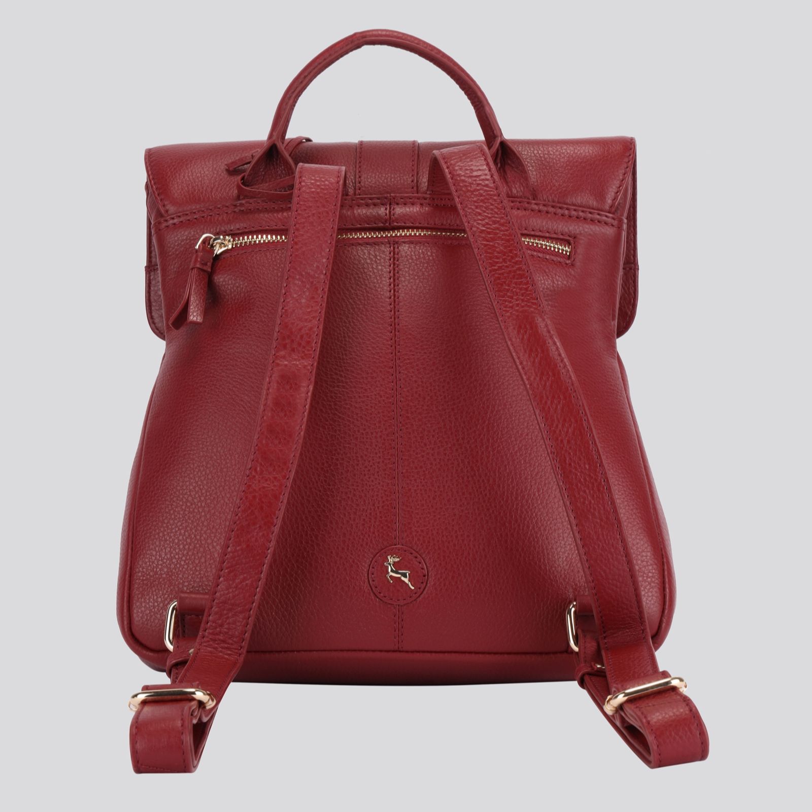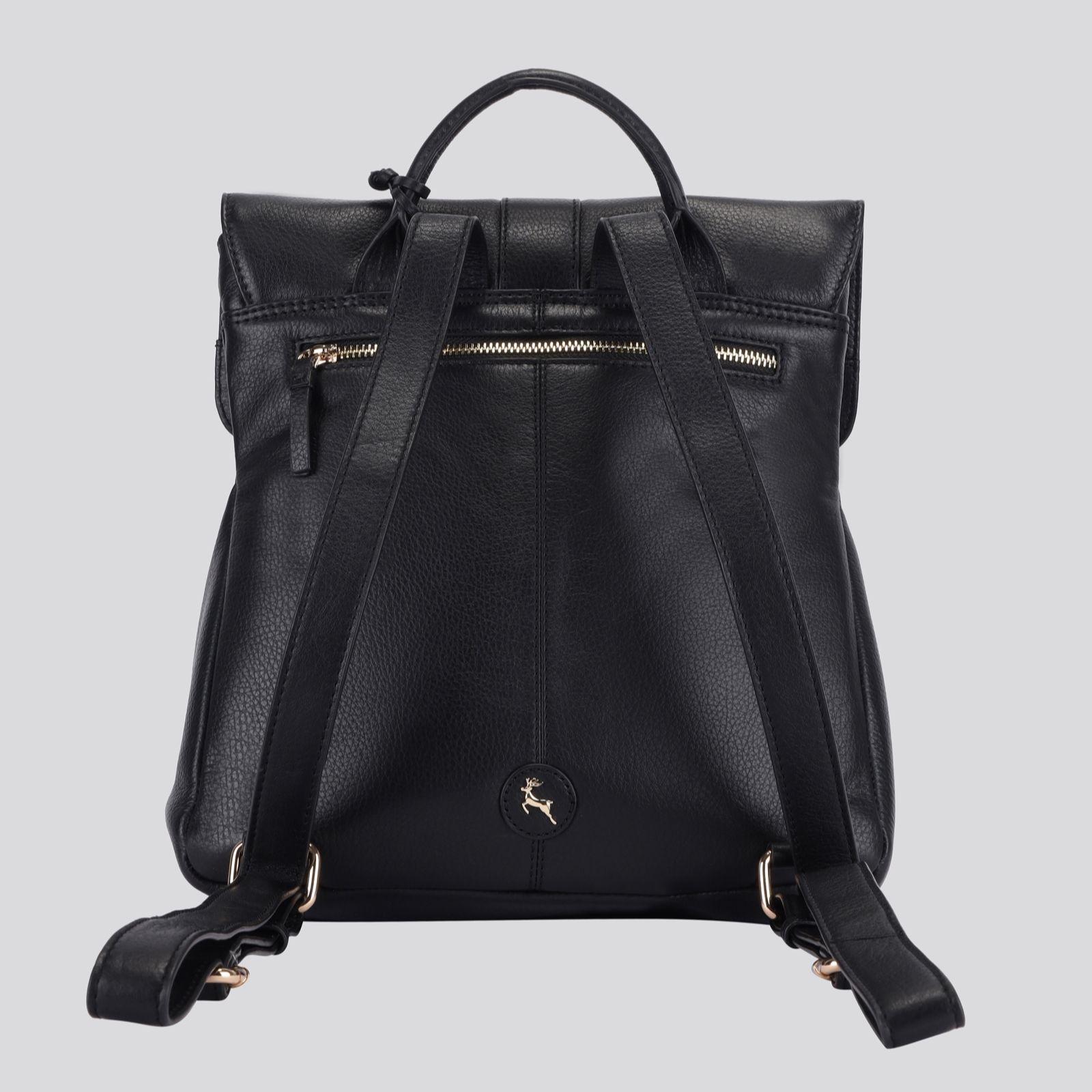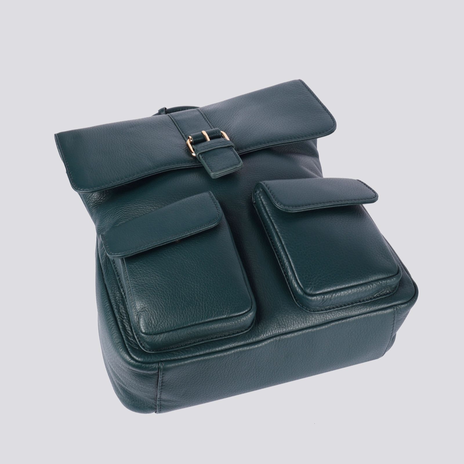 - Buckle-detailed flap-over with magnetic stud closure and top zip closure