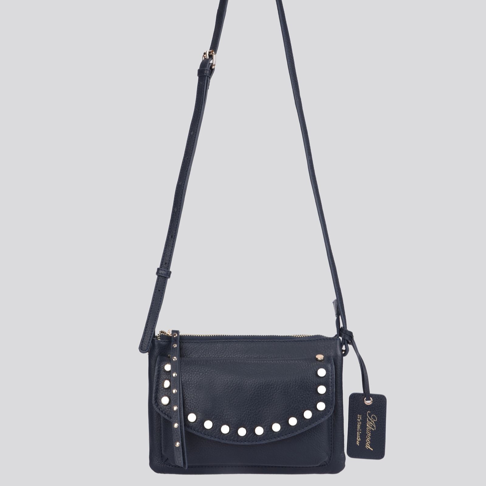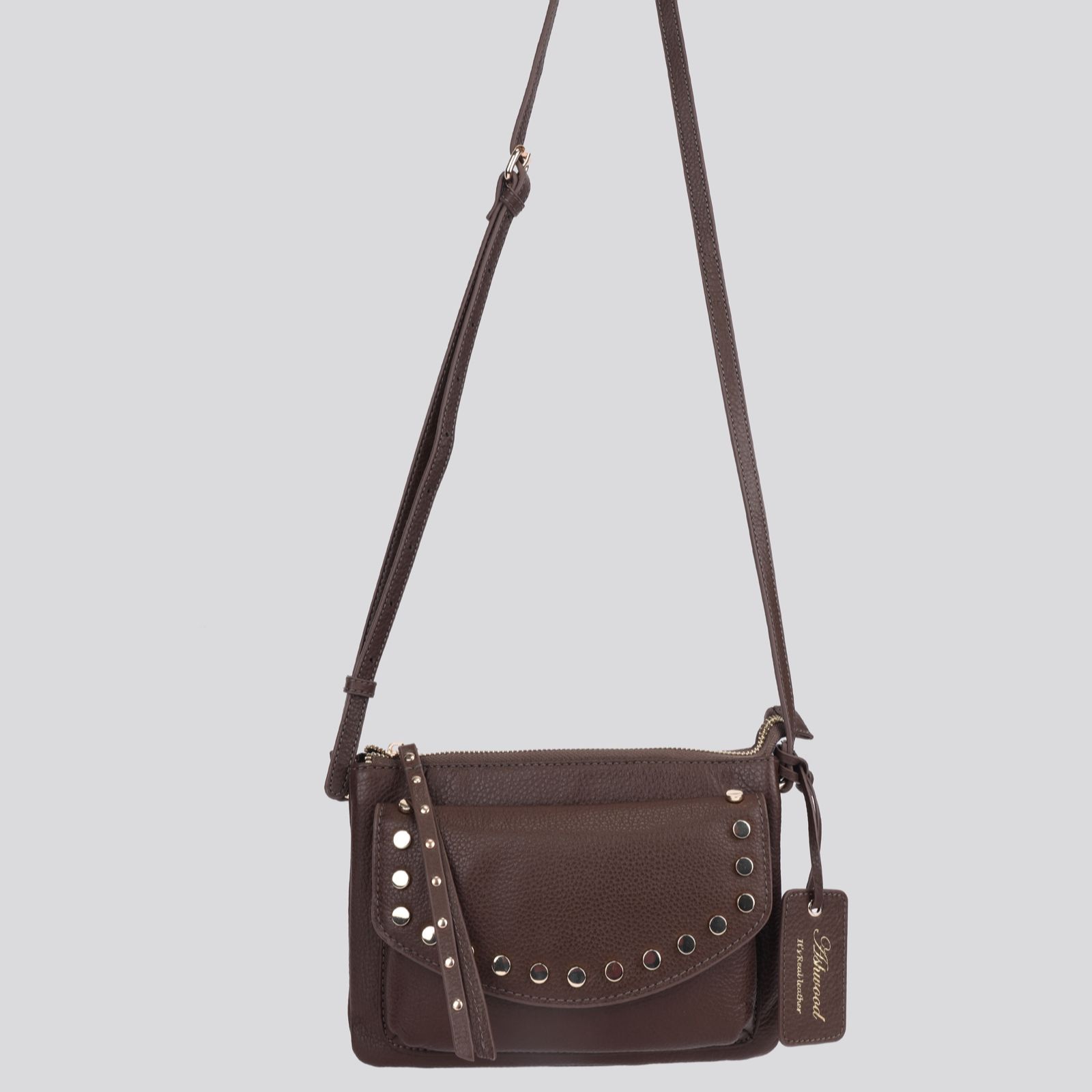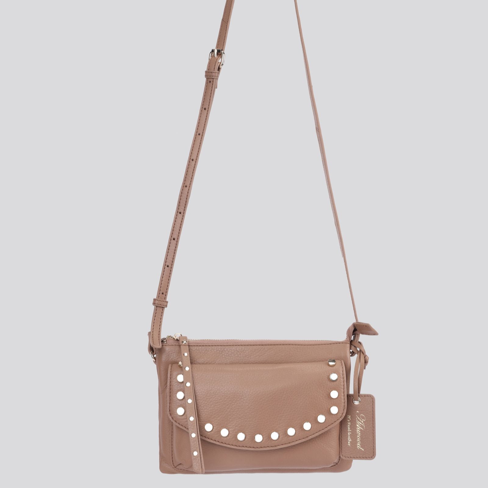 With its chic stud detail and luxurious genuine leather, this Ashwood crossbody bag brings a touch of elegance to everyday style. The floral jacquard lining adds a charming surprise, while twin compartments and practical pockets keep your essentials organised. Whether you're heading to brunch, running errands or enjoying an evening out, its adjustable strap ensures comfort and versatility wherever you go.