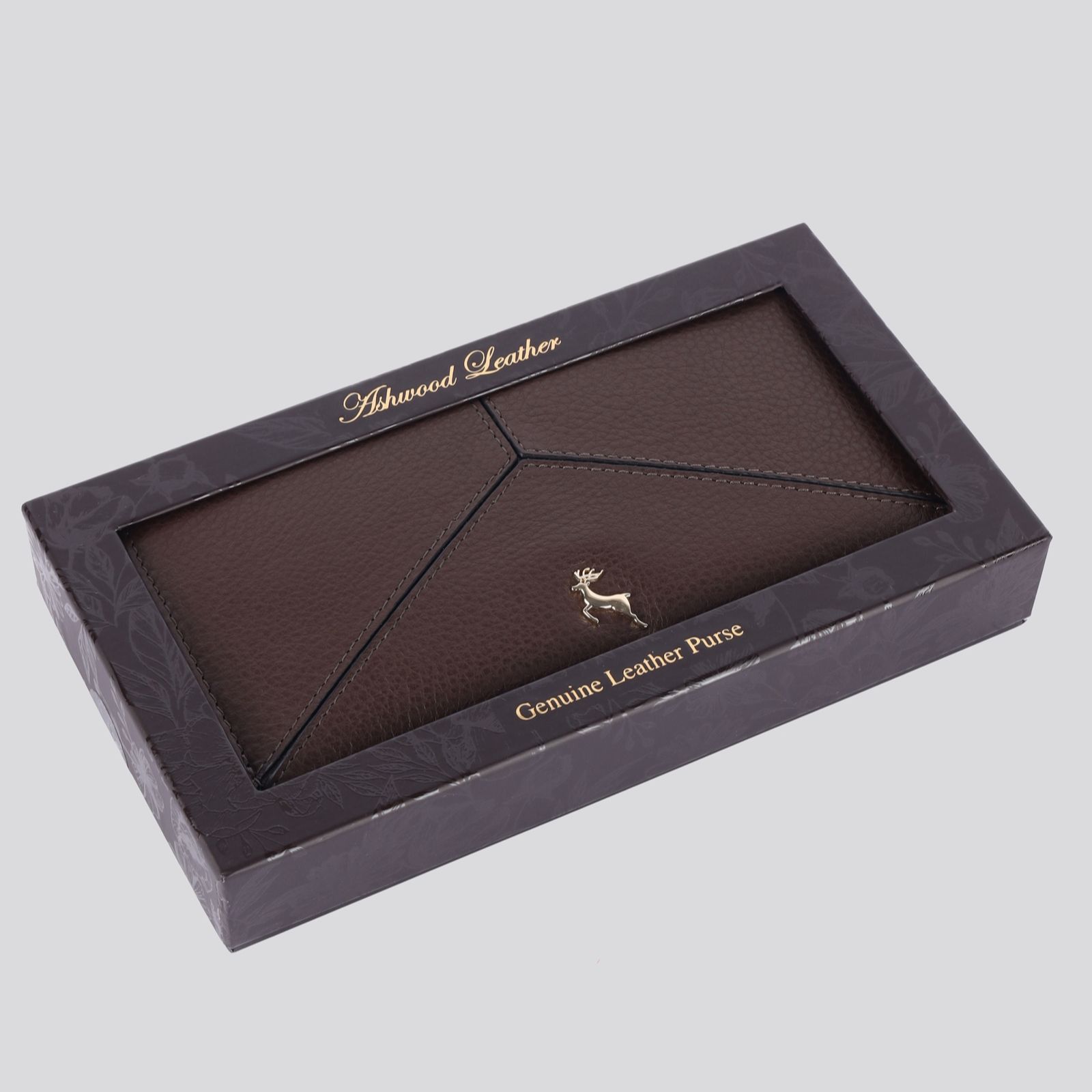 Enjoy everyday elegance with the Ashwood Leather boxed purse, where classic style meets modern utility in a beautifully finished design. A zip-around closure opens to reveal twin gusseted compartments, card slots and a central zip divider, all lined with Ashwood's floral jacquard. Whether for work, travel or gifting, this purse offers effortless organisation and a touch of luxury to your routine.