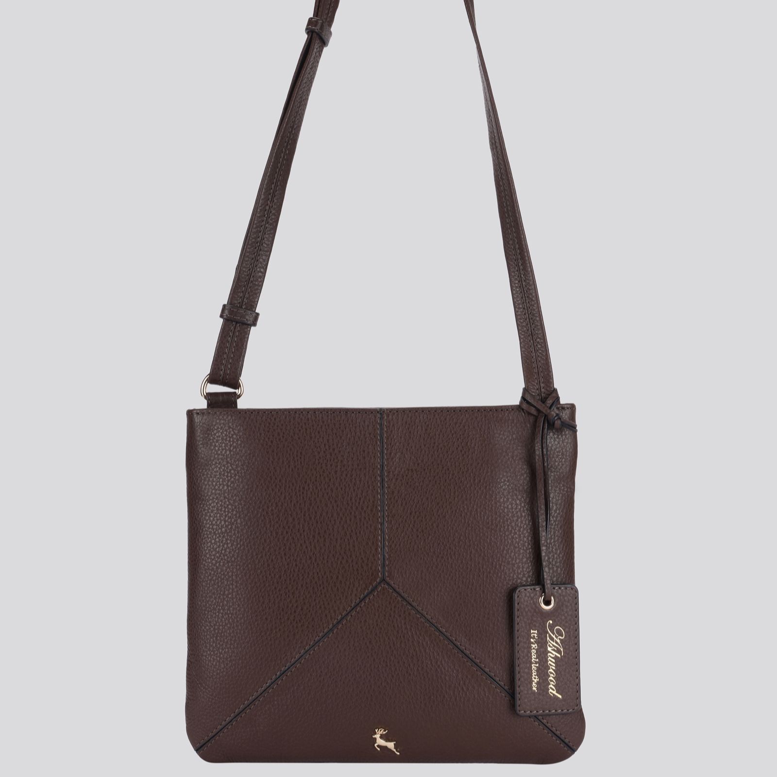 - Adjustable cross-body leather strap