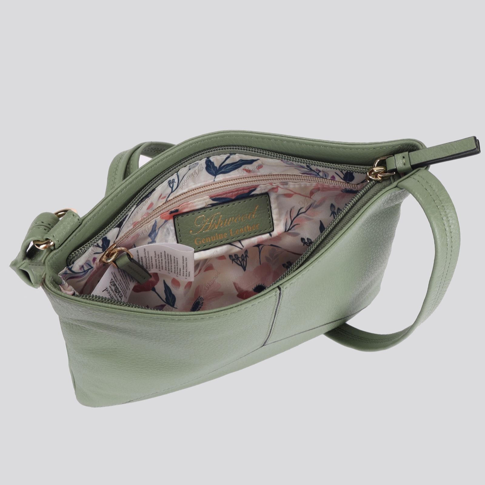 Let your essentials sit securely in the Ashwood Leather cross-body bag, where genuine leather meets clever organisation for your daily trips. With a sleek silhouette, top zip closure and adjustable strap, it's perfect for everything from morning commutes to weekend strolls. Inside, you'll find thoughtfully placed pockets and a beautiful floral jacquard lining that adds a touch of charm to your everyday.
