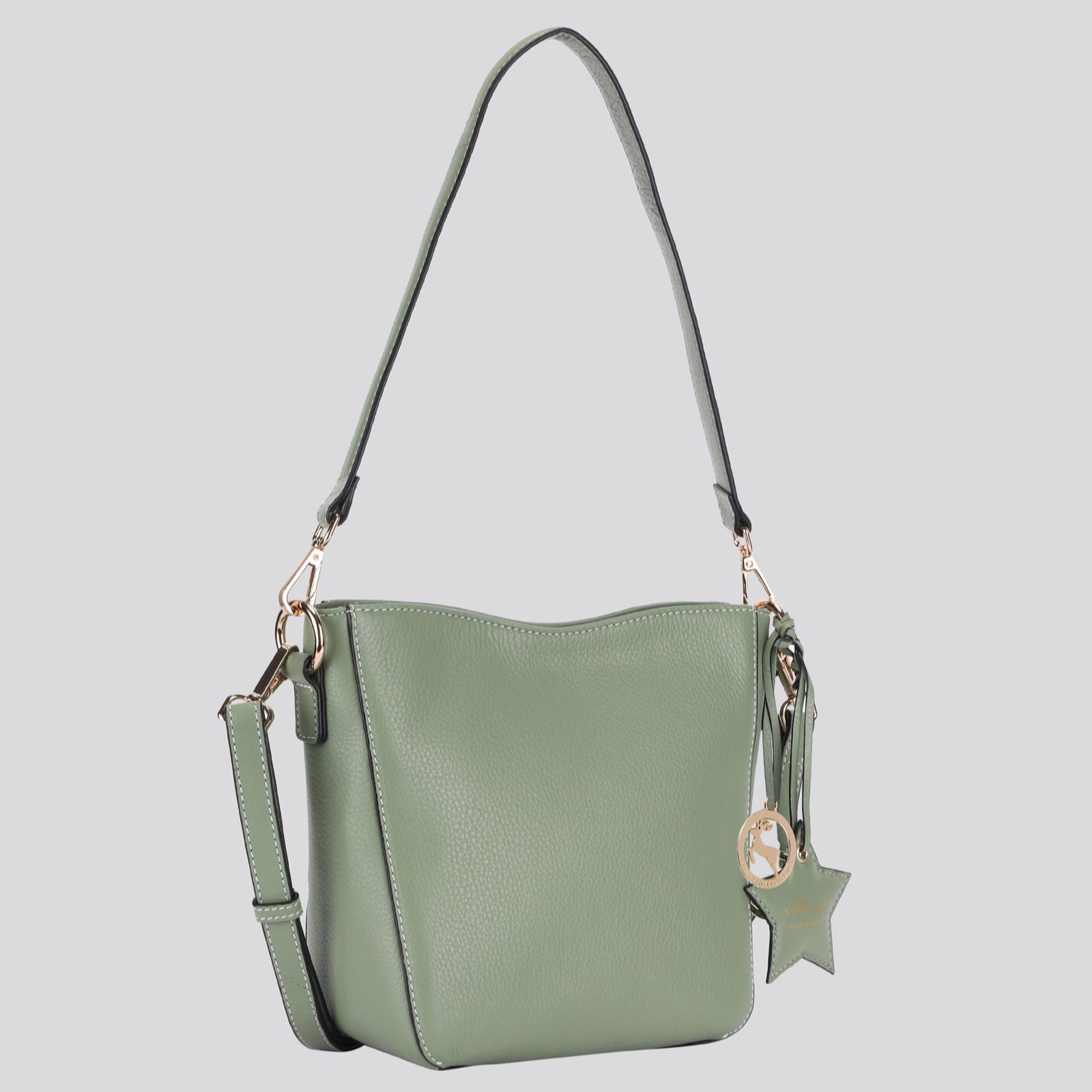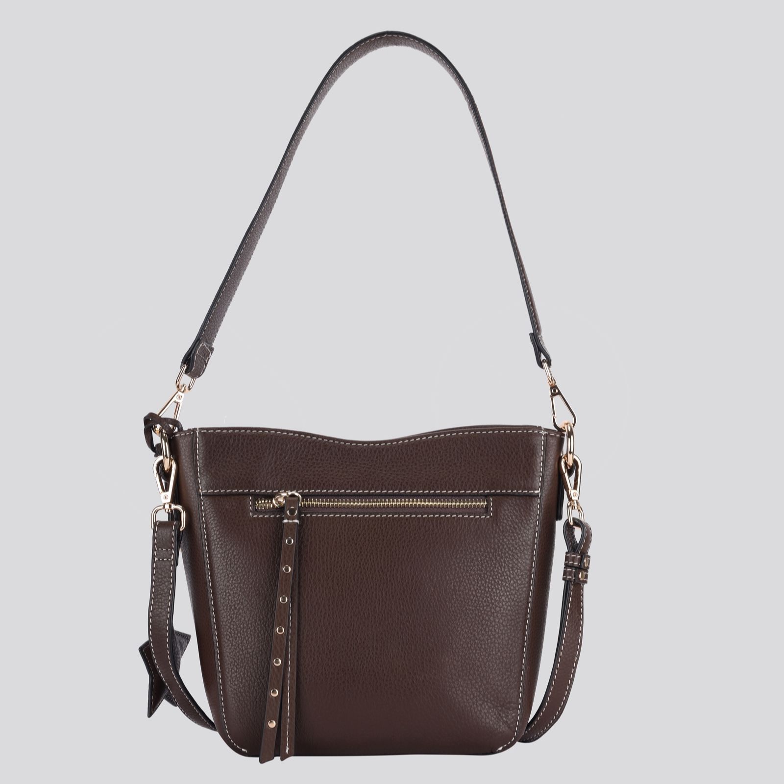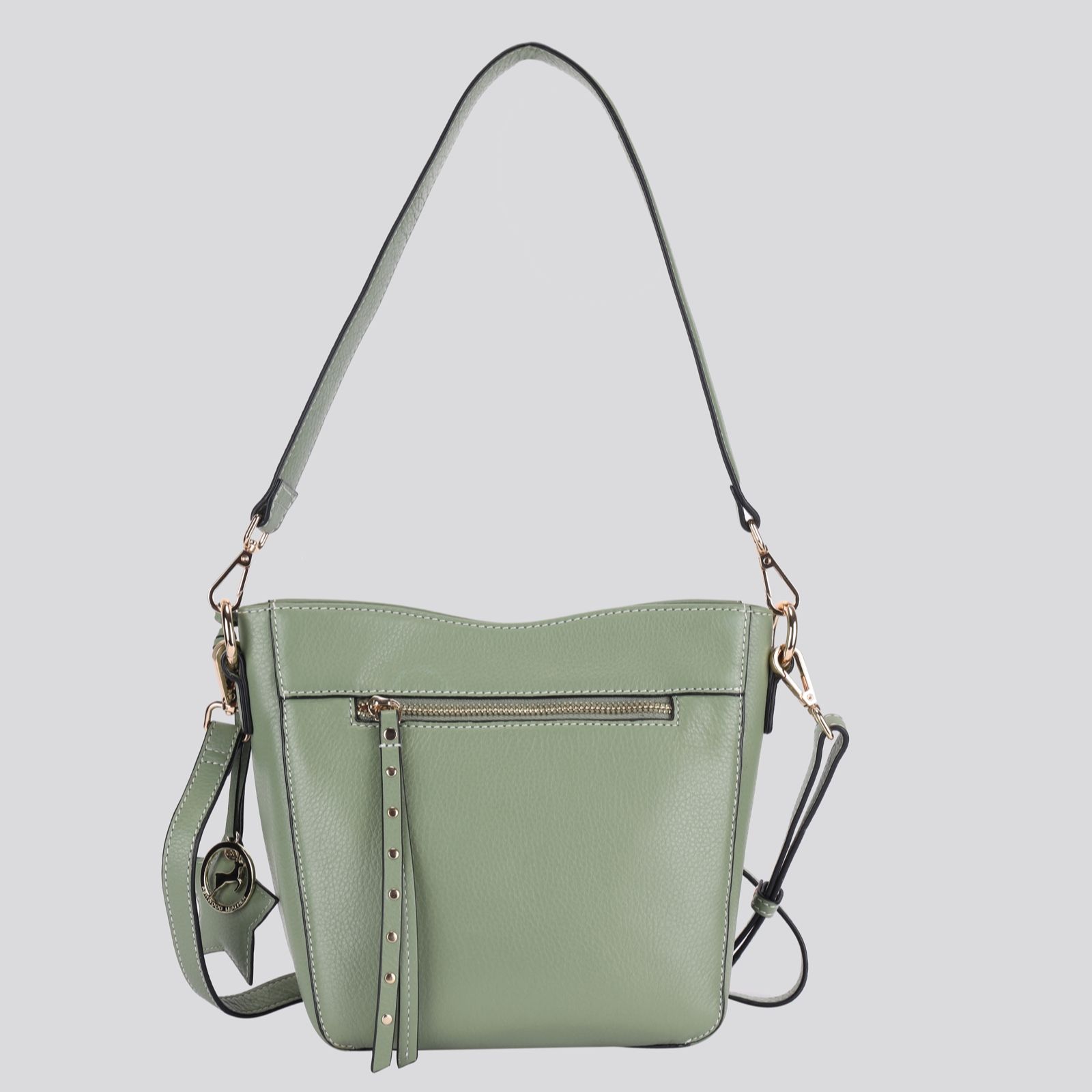 - Detachable and adjustable cross-body leather strap