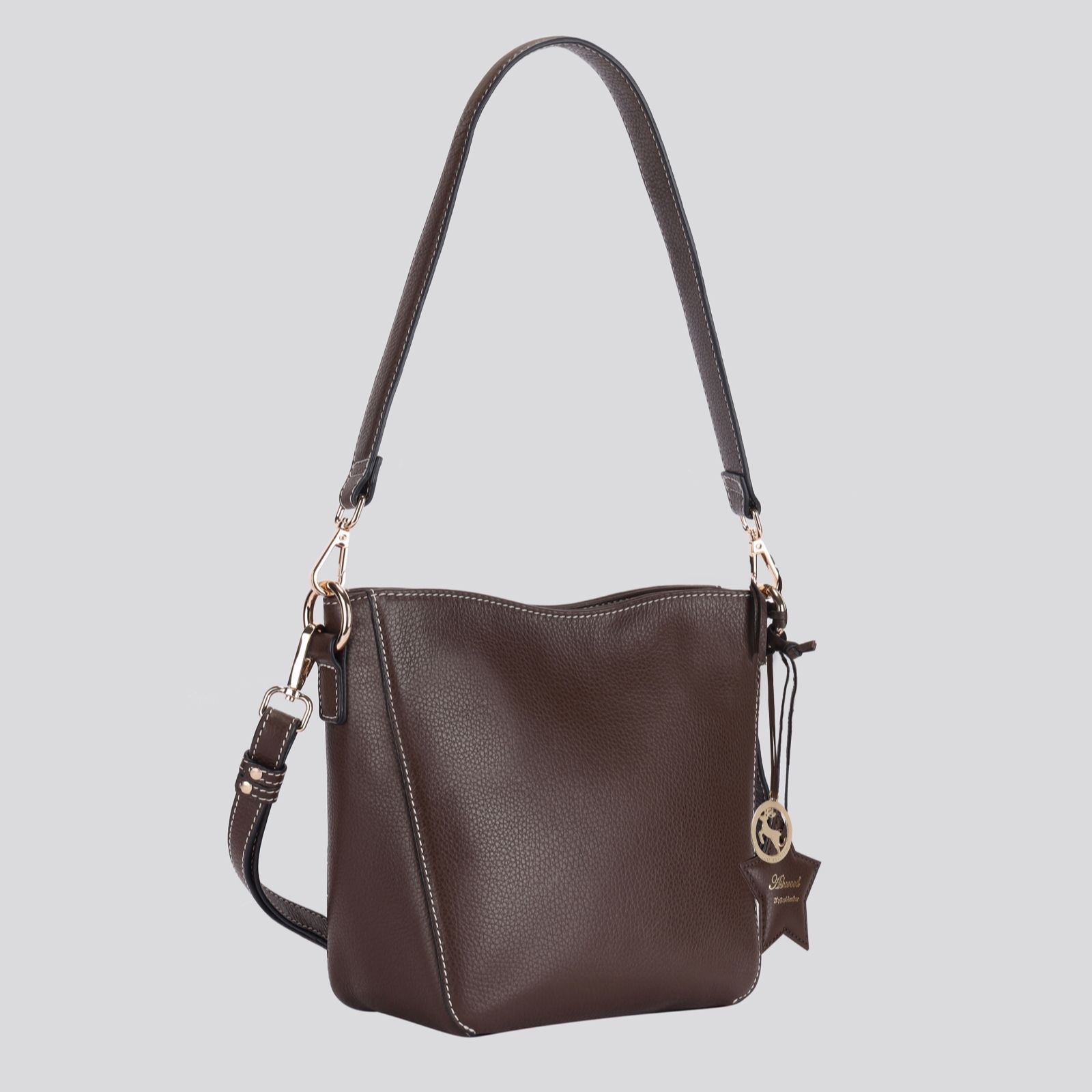 Allude to the night's sky with the Ashwood leather cross-body bucket bag, where a sweet star charm and refined leather bucket shape come together for a look that's both dreamy and modern. The adjustable cross-body strap and detachable handle offer endless ways to wear, while clever pockets and a magnetic stud closure make this bag a practical choice for workdays, weekends or evenings out under a starry sky.