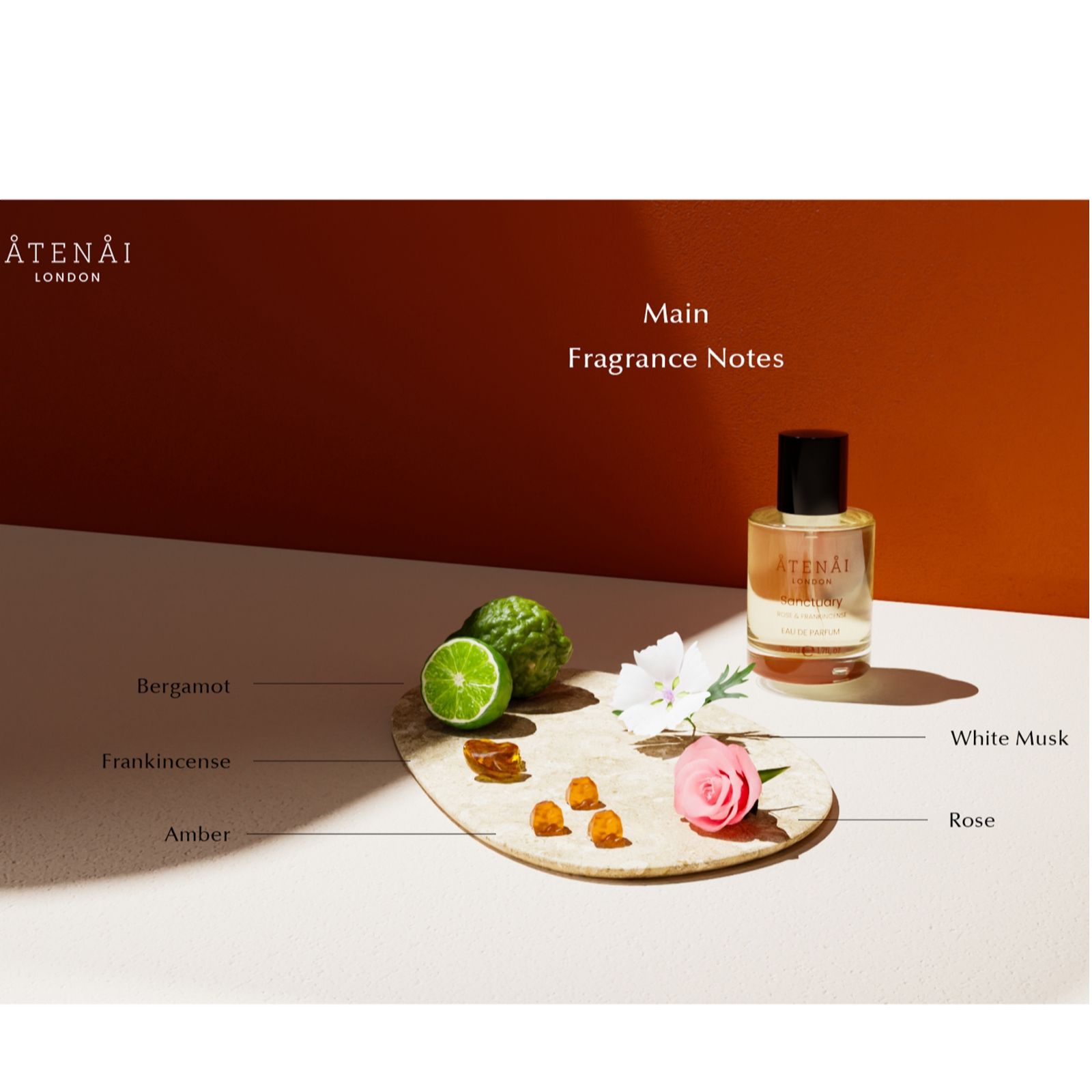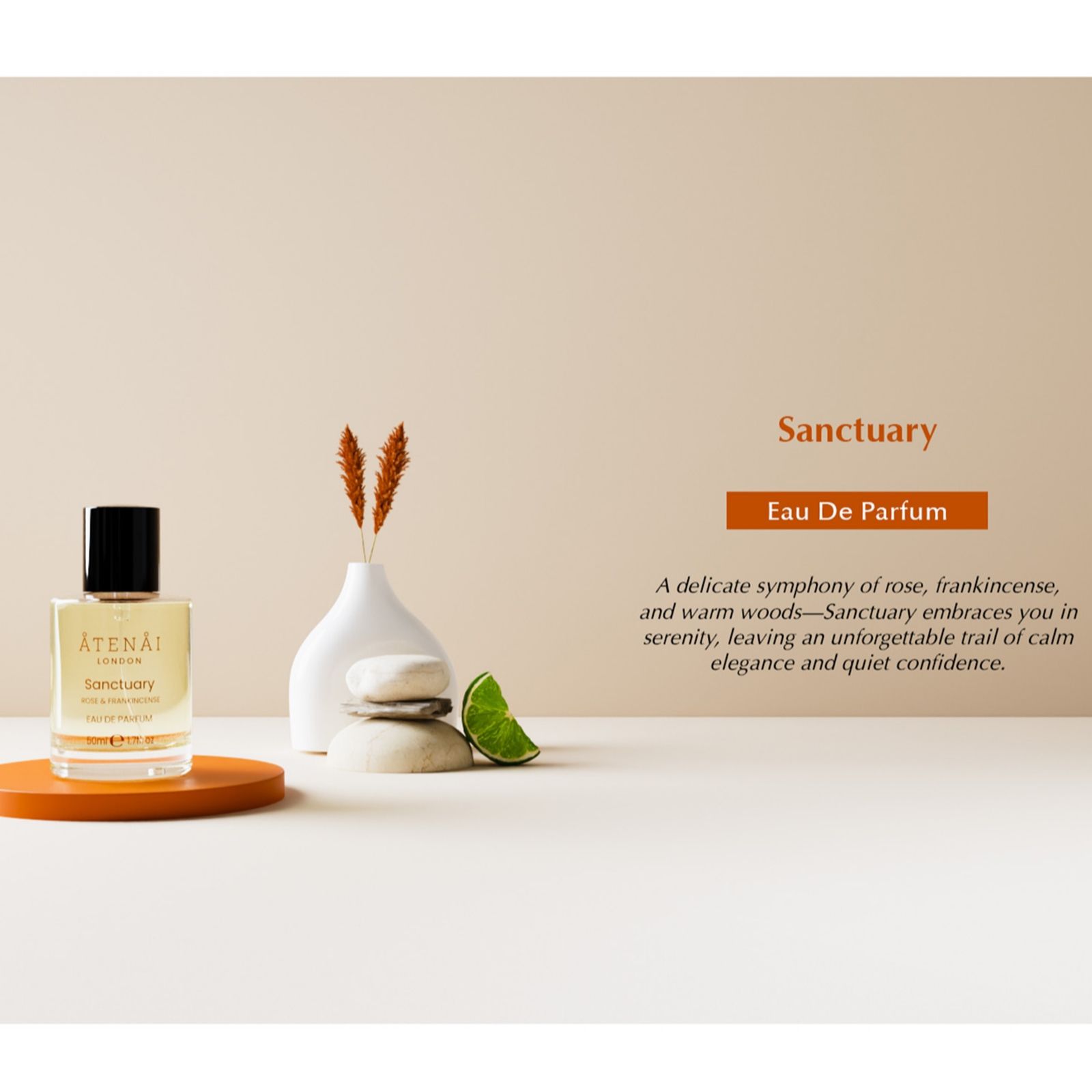 Discover the captivating world of Atenai London with their Eau de Parfum. Whether you're drawn to the exotic warmth of Sanctuary, the vibrant freshness of Oasis or the delicate charm of Blossom, each fragrance offers a beautiful way to enhance your everyday moments, from casual outings to special occasions. Perfect for adding a touch of elegance to your fragrance collection.