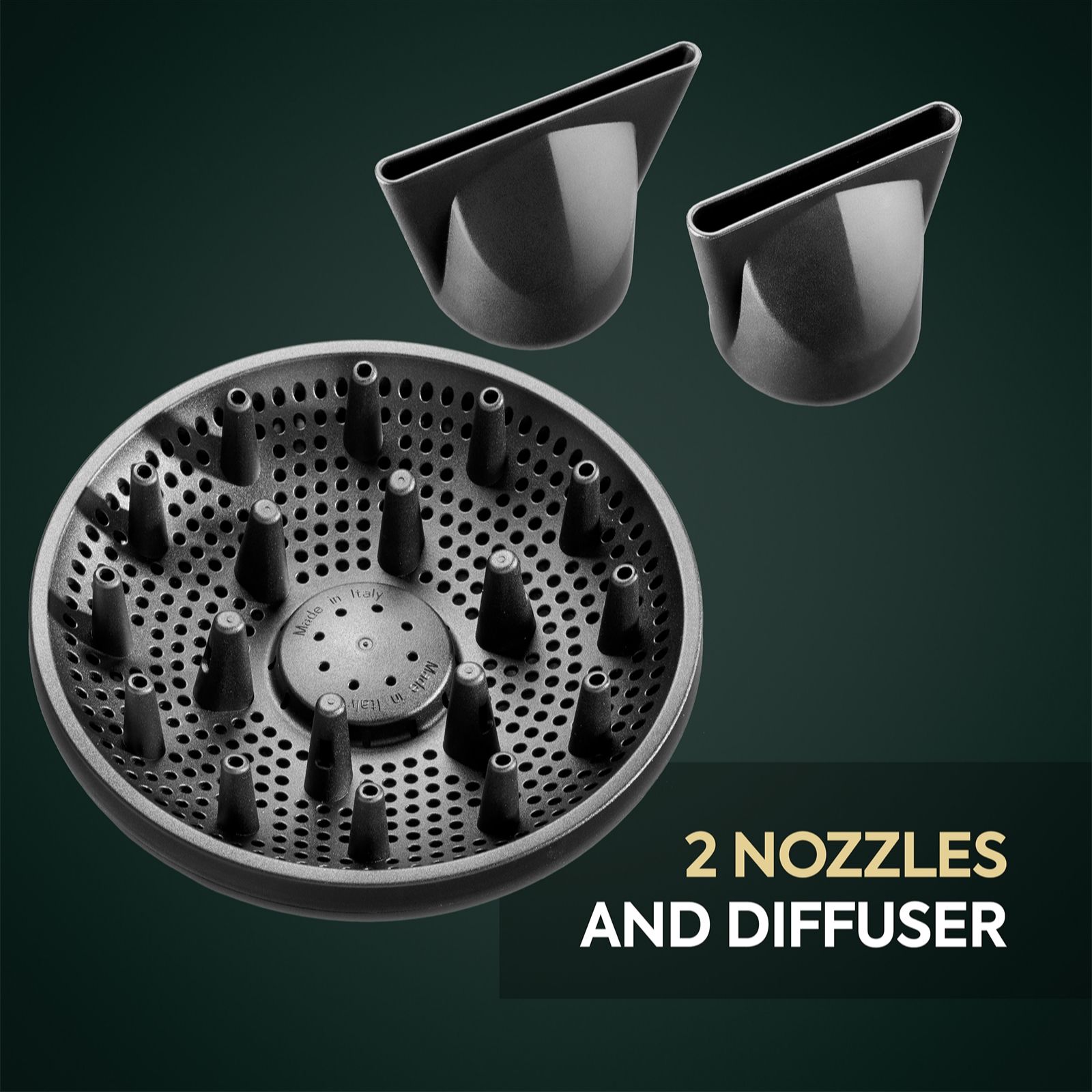- 1 x curl diffuser - a large diffuser with secure fit lock-in system, gives fast, frizz-free drying of wavy, curly and coily hair