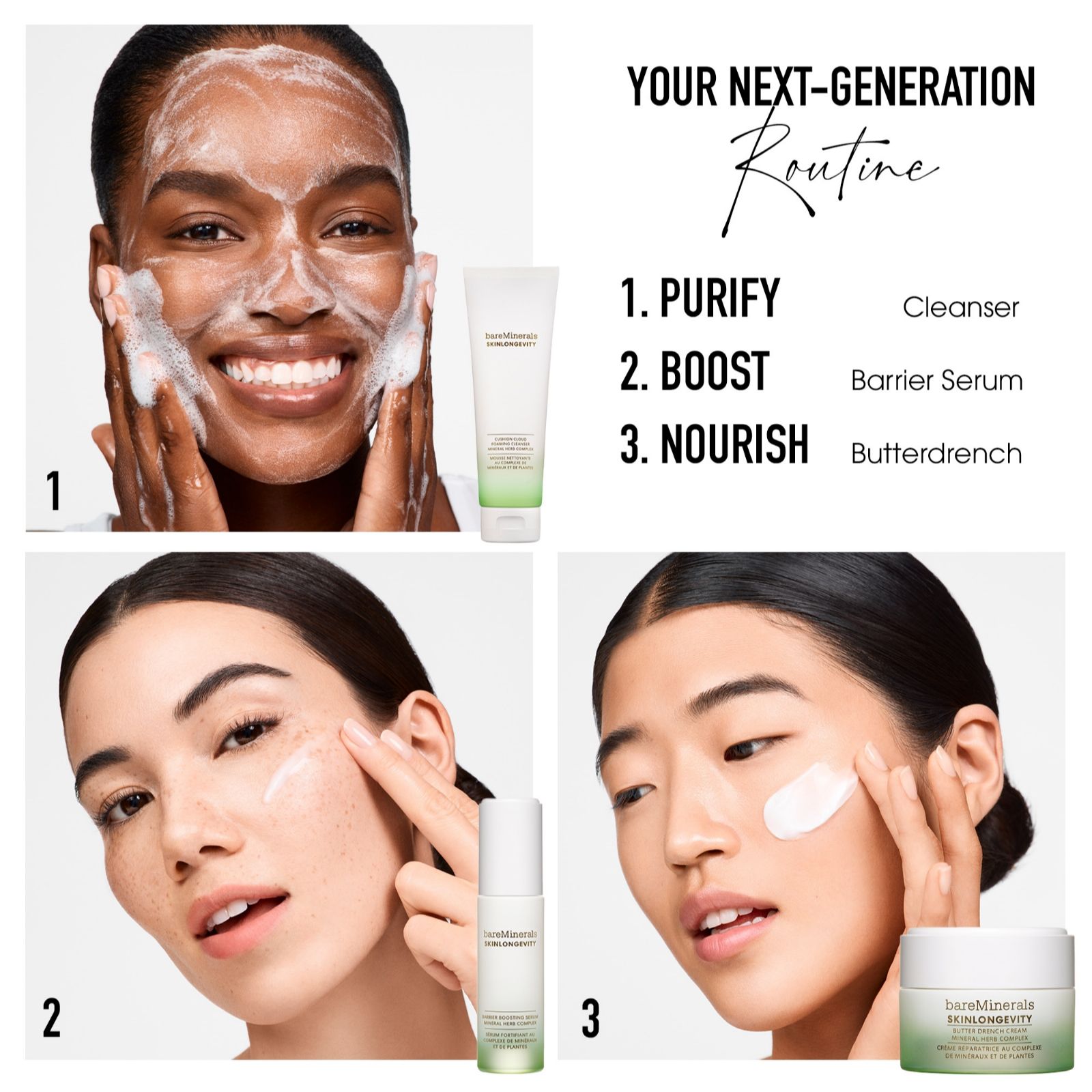 Experience the next generation of skincare with the bareMinerals Skinlongevity Barrier Boosting Serum, a lightweight formula designed to help support your skin's barrier and leave your complexion looking smooth and hydrated. Perfect for morning and evening use, this serum fits effortlessly into your daily routine to help your skin feel soothed and appear plumped.