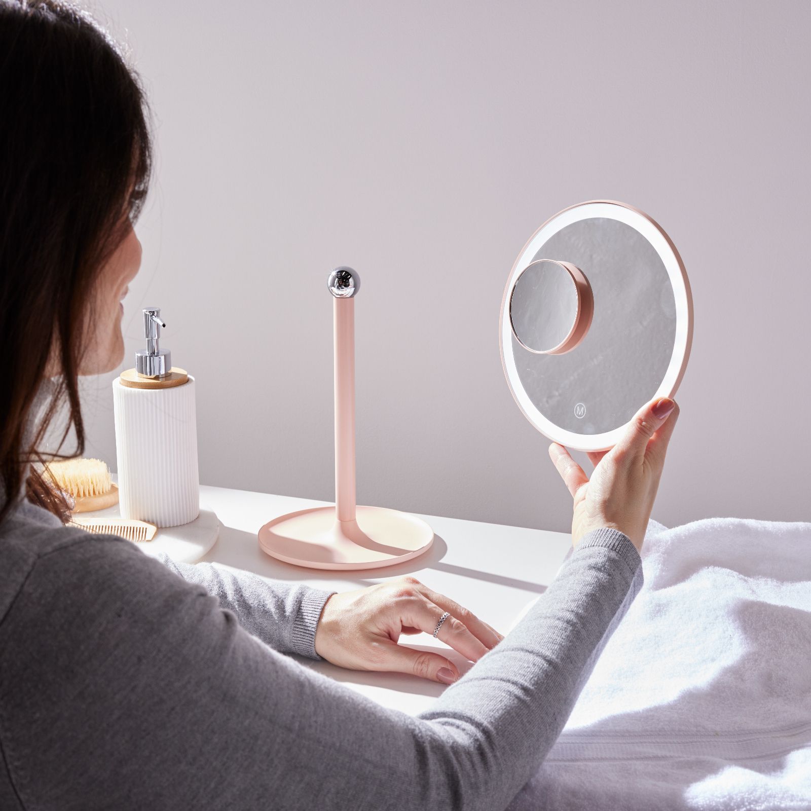 Meet your vanity's missing piece, the LED illuminated vanity mirror from Bellalicious. This beauty accessory will take your daily routine to new heights, boasting a 360-degree swivel, three lighting modes and a stand that doubles as a jewellery dish, so every aspect of your look will be flawless. The included 10x magnification mirror ensures you'll never miss a detail, so from skincare to make-up and hairstyling, this mirror is your new best friend.