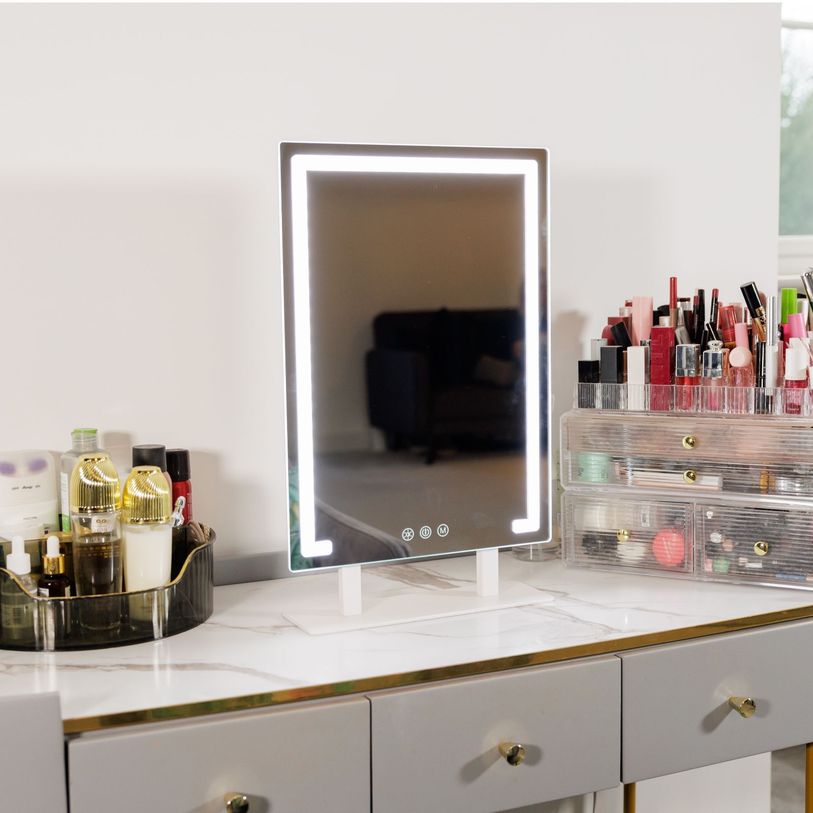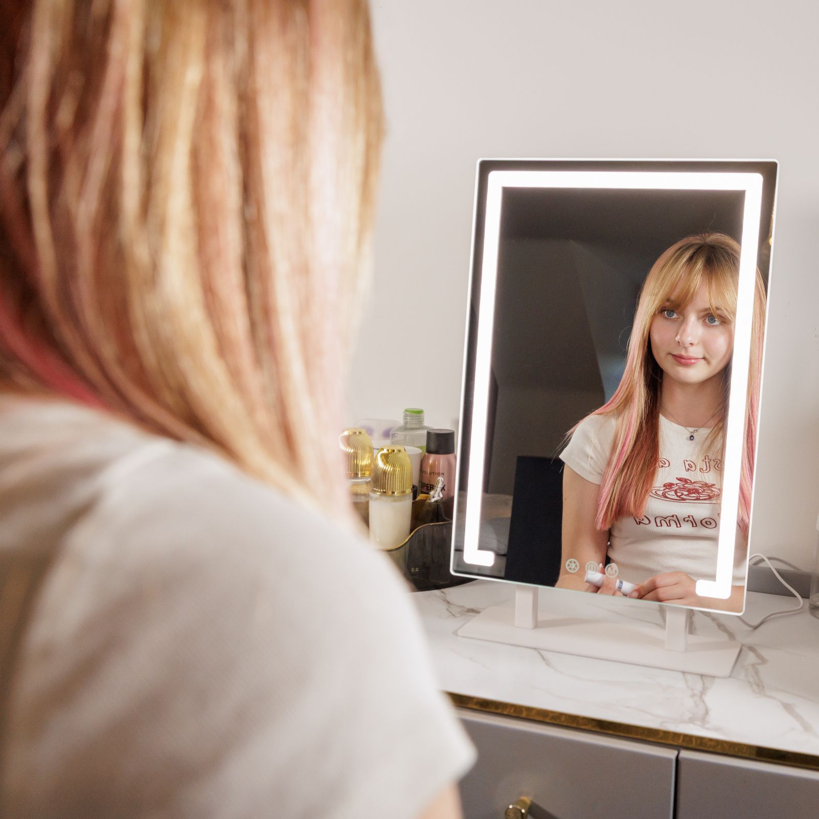 Elevate your beauty routine with the Bellalicious XL LED Vanity Mirror, designed to help you achieve flawless looks with ease. Its adjustable brightness and three lighting options - white, warm and natural - make it perfect for everything from precise makeup application to skincare rituals, whether you're at your dressing table or in your bathroom.