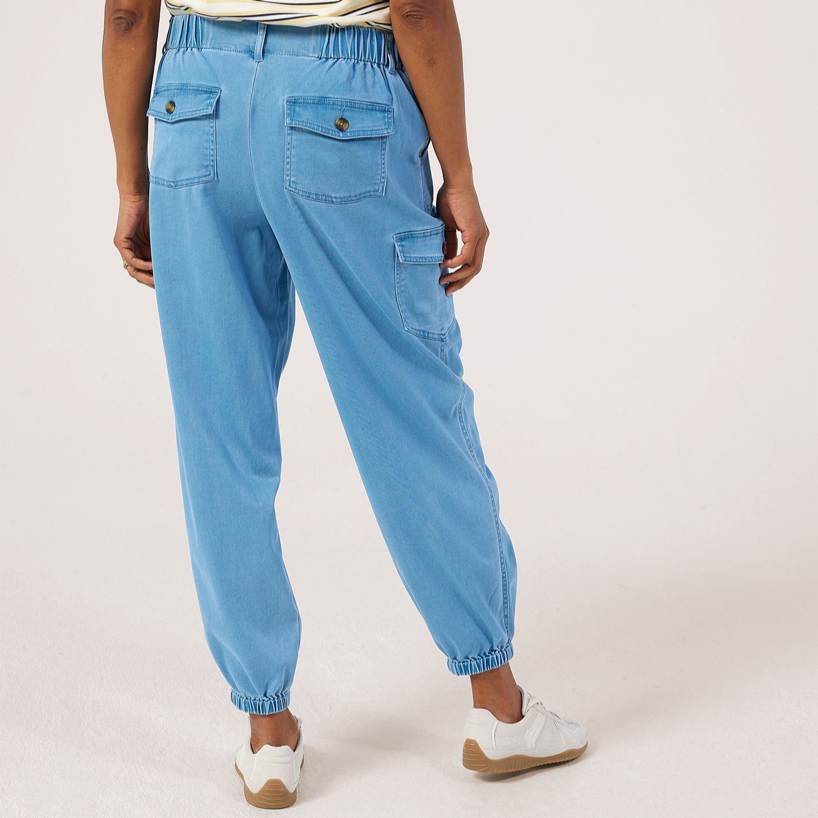Enhance your wardrobe with the effortlessly cool style of the light wash denim cargo trousers standard from Ben de Lisi. Designed with a relaxed fit and practical cargo pockets, they bring a laid-back yet polished vibe that works for both casual days and smart-casual outings. Pair them with a striped T-shirt and trainers for a fresh daytime look or switch to heeled boots and a blazer for evening chic.