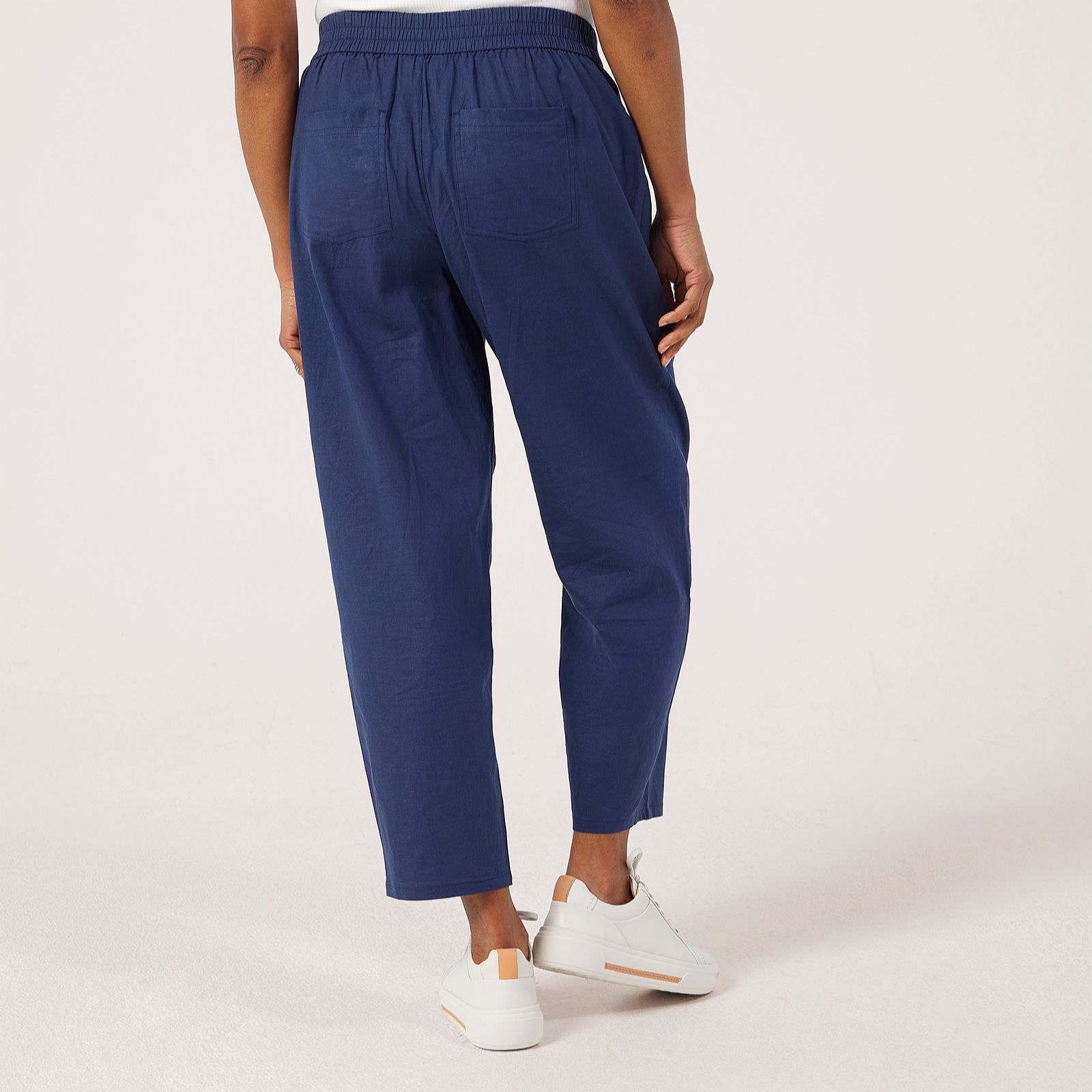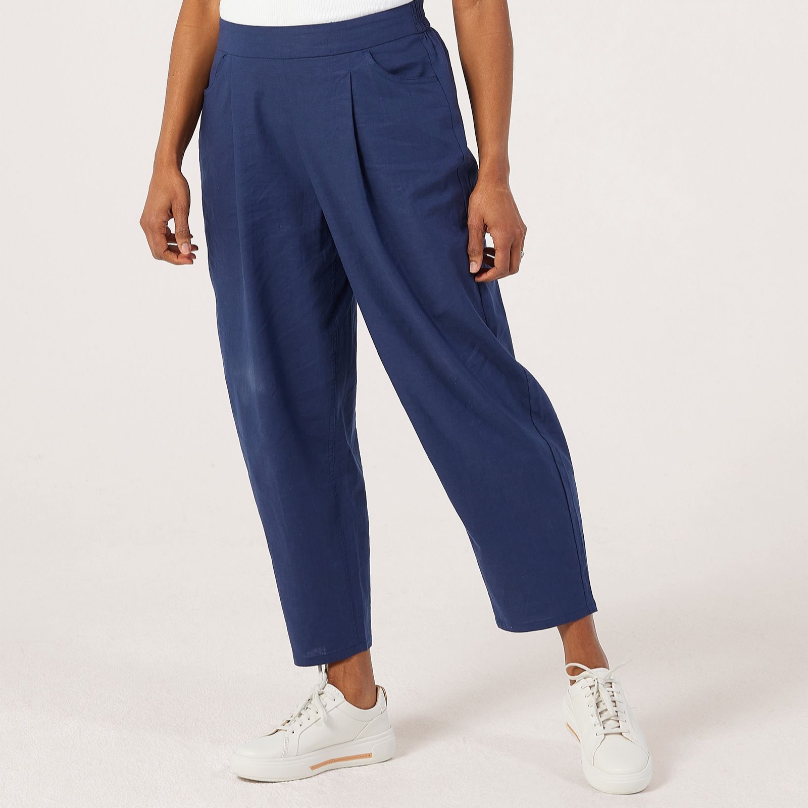 Refresh your wardrobe with the Ben De Lisi linen barrel trouser in petite, offering a contemporary silhouette that blends comfort and style. Perfect for everything from casual afternoons to smart-casual evenings, these trousers bring a chic touch to any look. Try pairing them with a crisp white shirt and trainers for effortless daytime elegance, or dress them up with a tailored blazer.