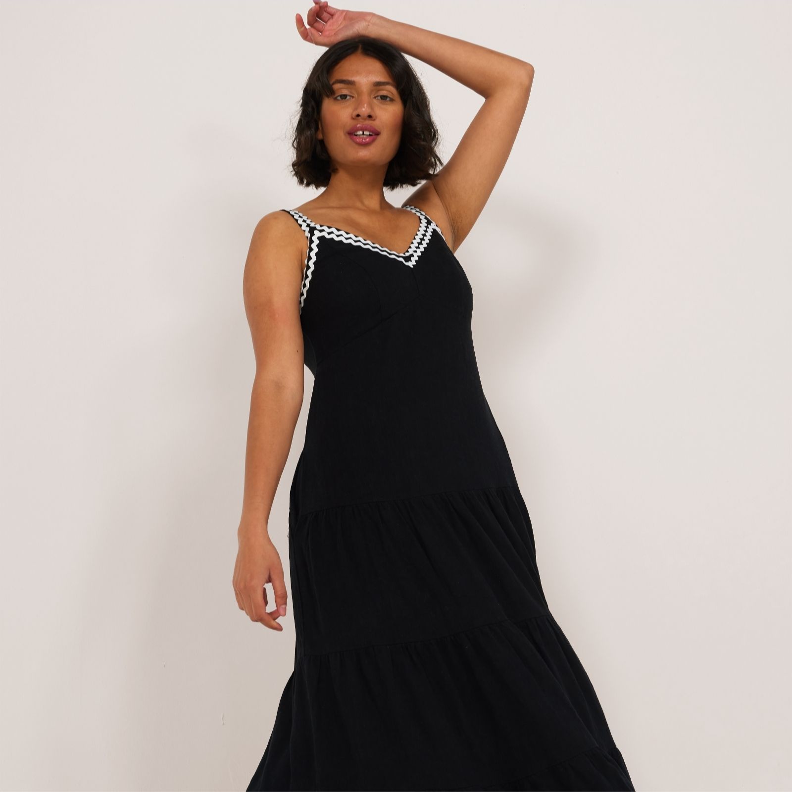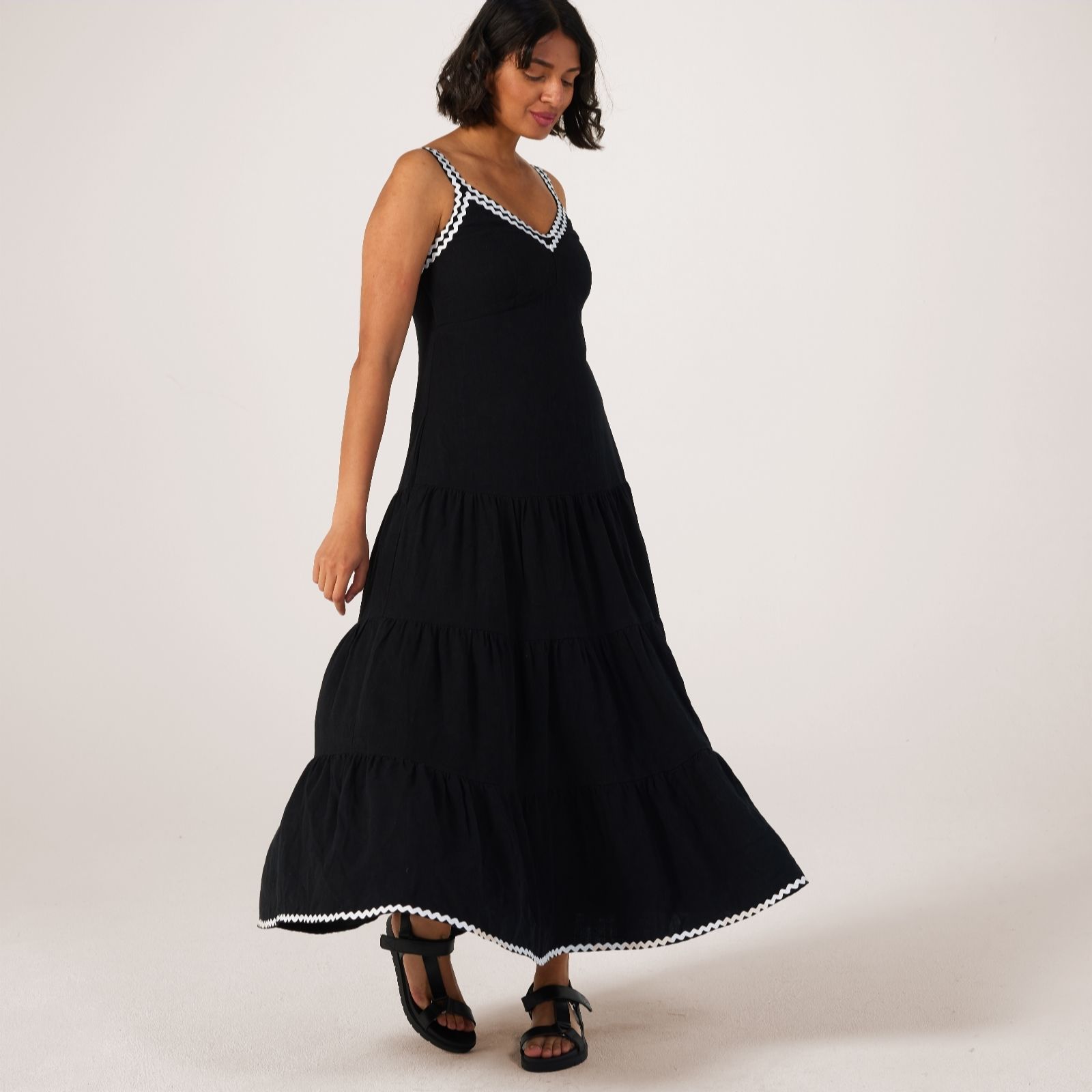 Ben de Lisi Linen Blend Rik Rak Trim Maxi Dress Standard