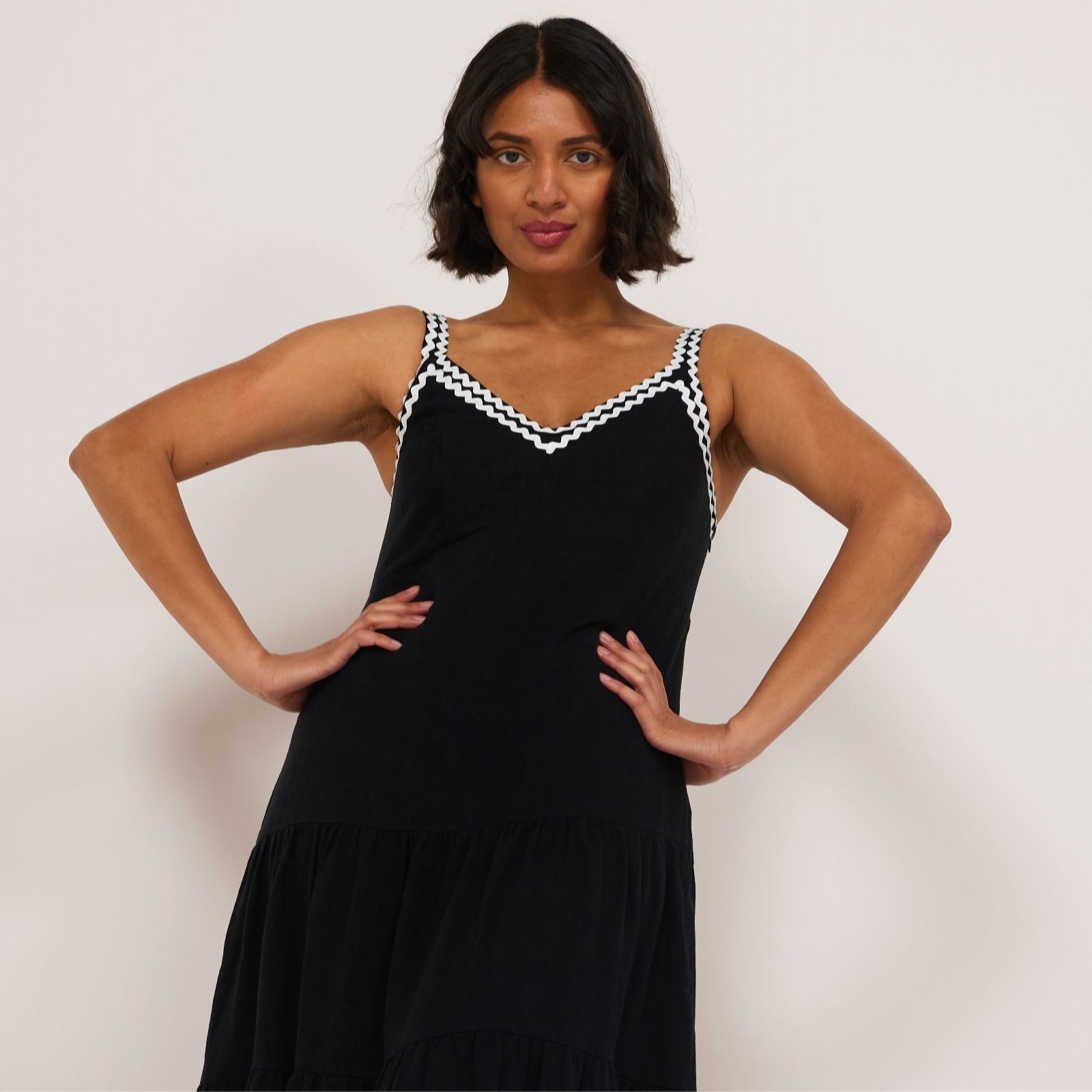 Wrap yourself in the effortless charm of summer with the Ben De Lisi Linen Blend Rik Rak Trim Maxi Dress. This enchanting piece, perfect for sunny days and balmy evenings, marries the cool, casual comfort of linen with playful rik rak trims, making it a delightful choice for any occasion. Whether you're attending a garden party, enjoying a leisurely brunch, or strolling along the beach, this dress promises versatility and style. Pair it with sandals and a wide-brimmed hat for a quintessentially summer look that's both relaxed and refined.