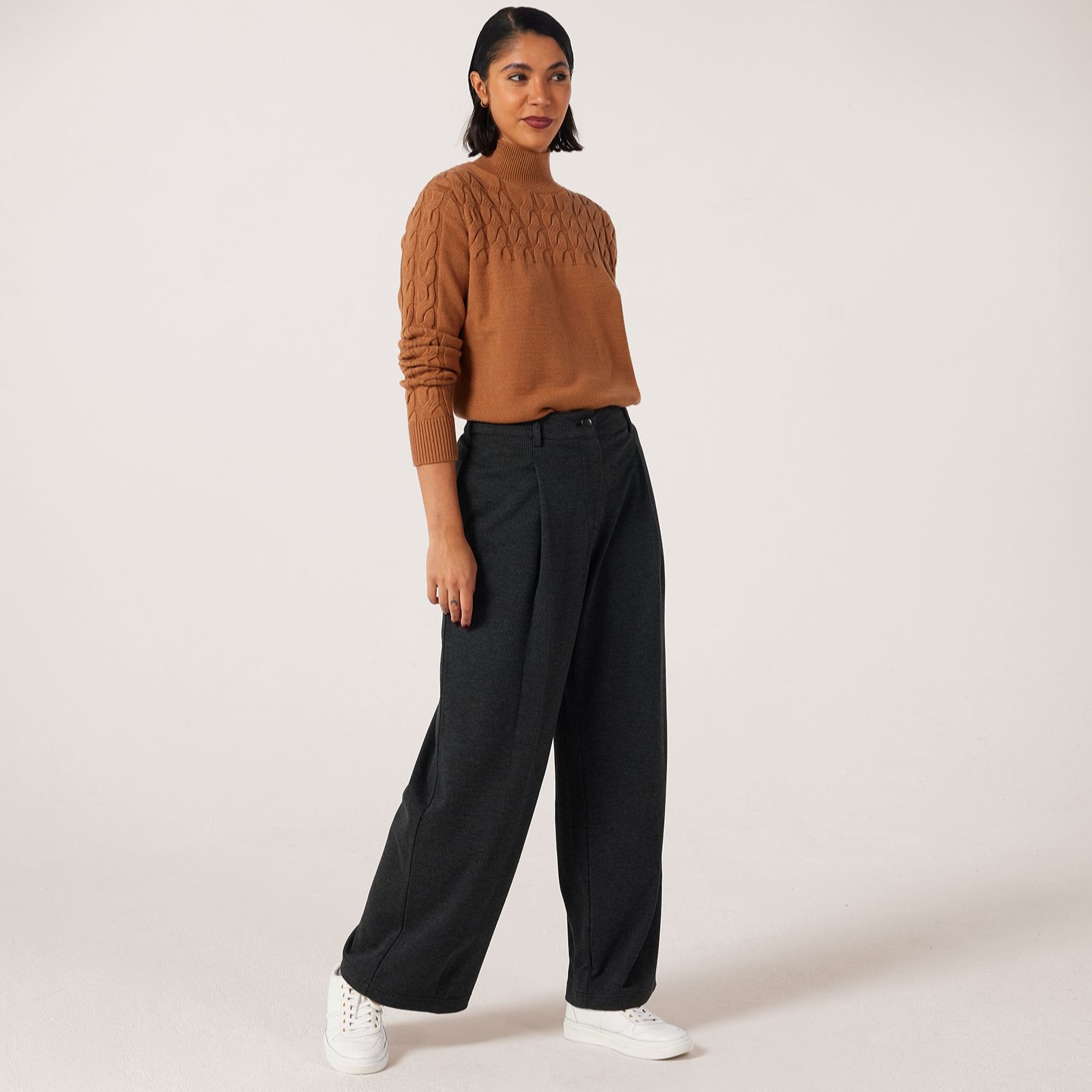 - Wide-leg fit
