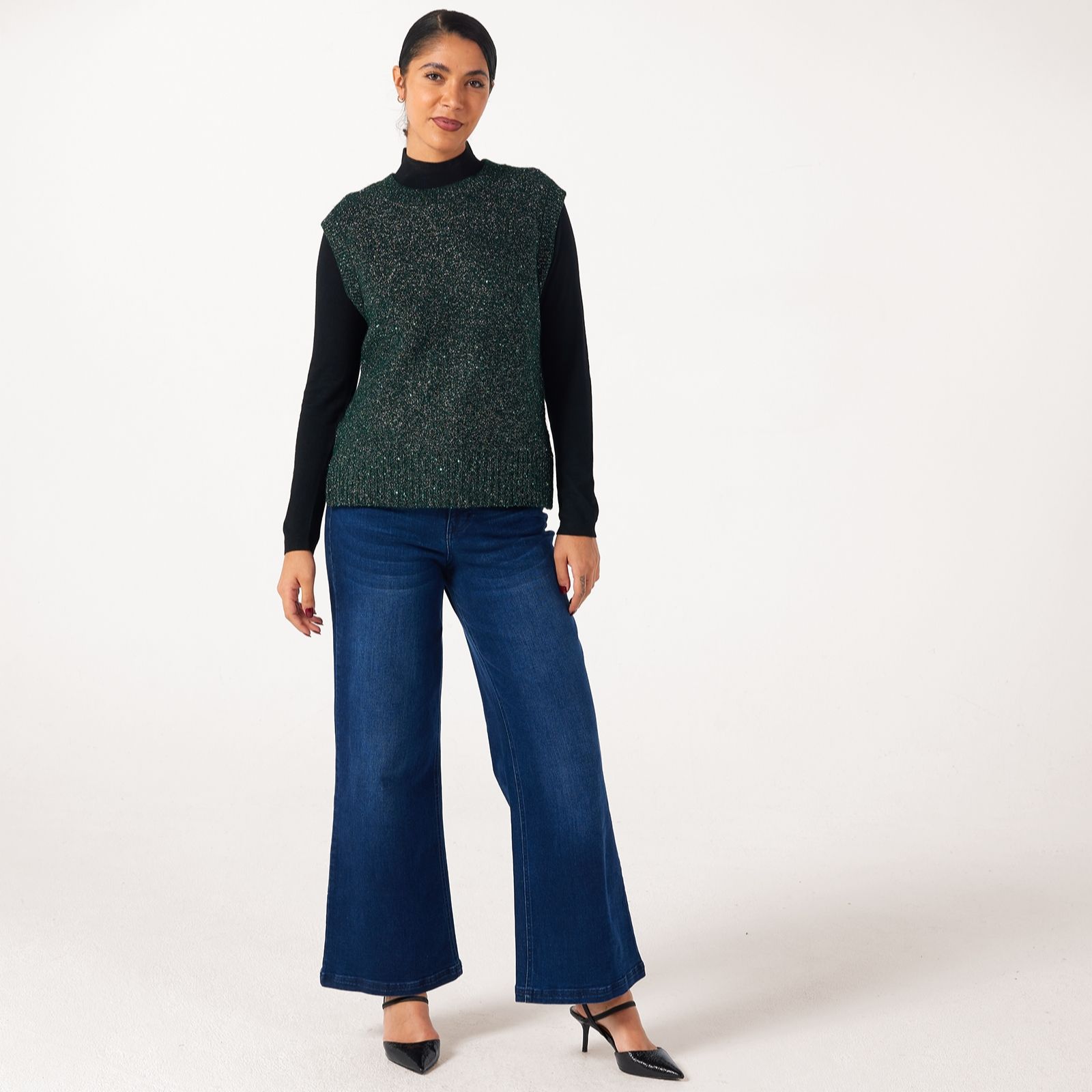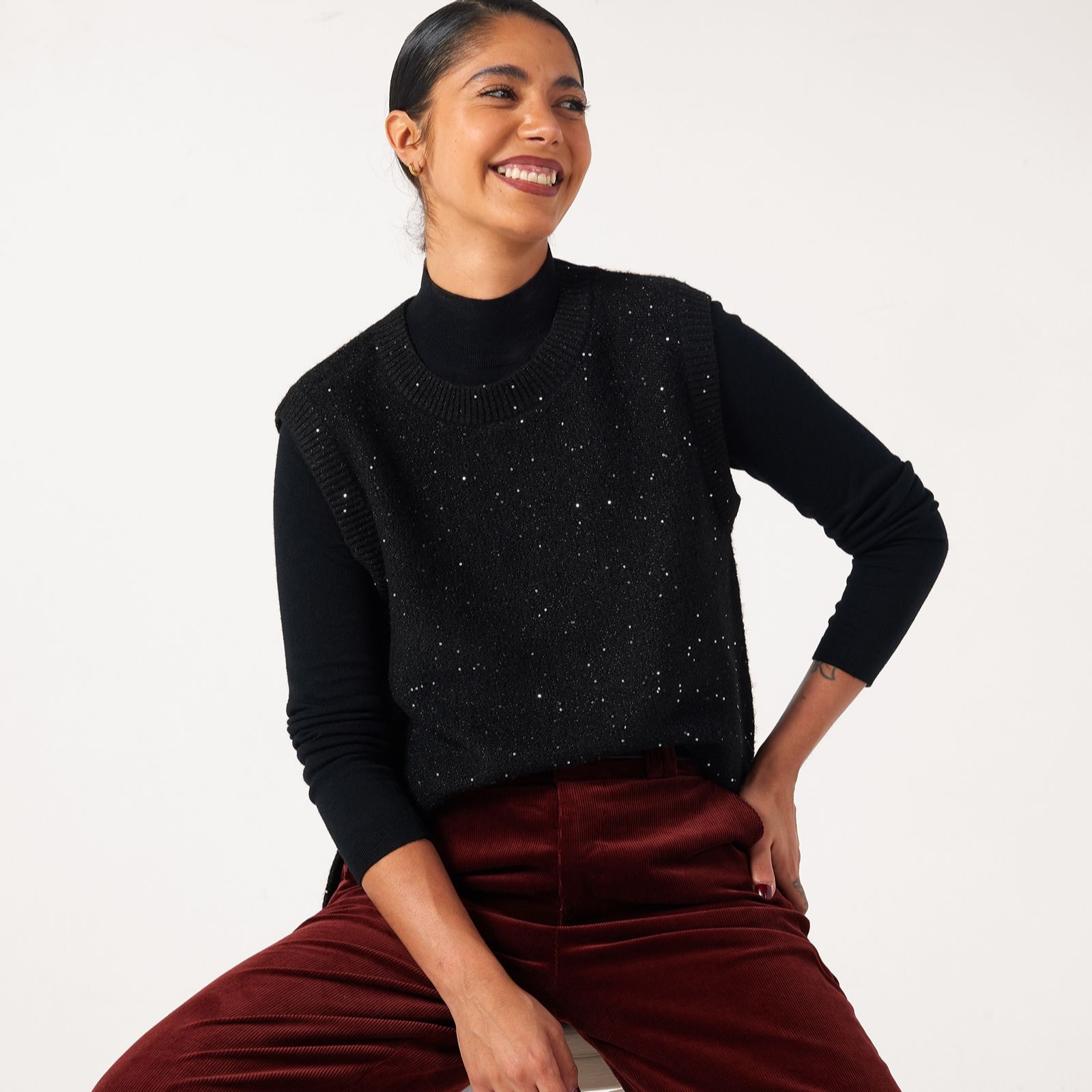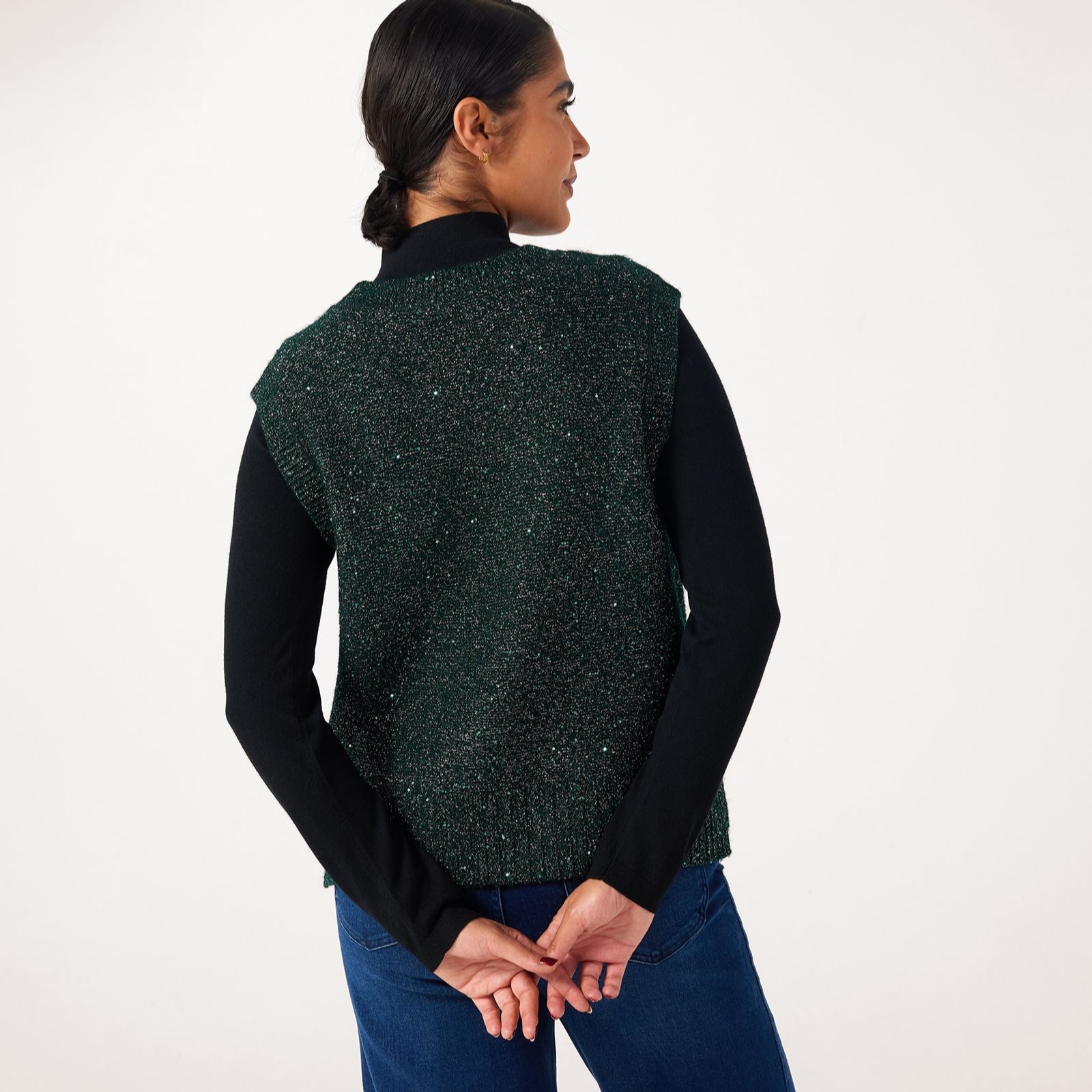 Bring a glamorous sparkle to your wardrobe with this sequin knitted vest from Ben De Lisi, designed to add sophistication to both casual and dressy outfits. The subtle shimmer woven into the soft knit makes it an eye-catching piece for layering, whether you're heading out for a coffee with friends or dressing up for a special evening. For a modern twist, place it over a crisp shirt or style it with your favourite jeans.