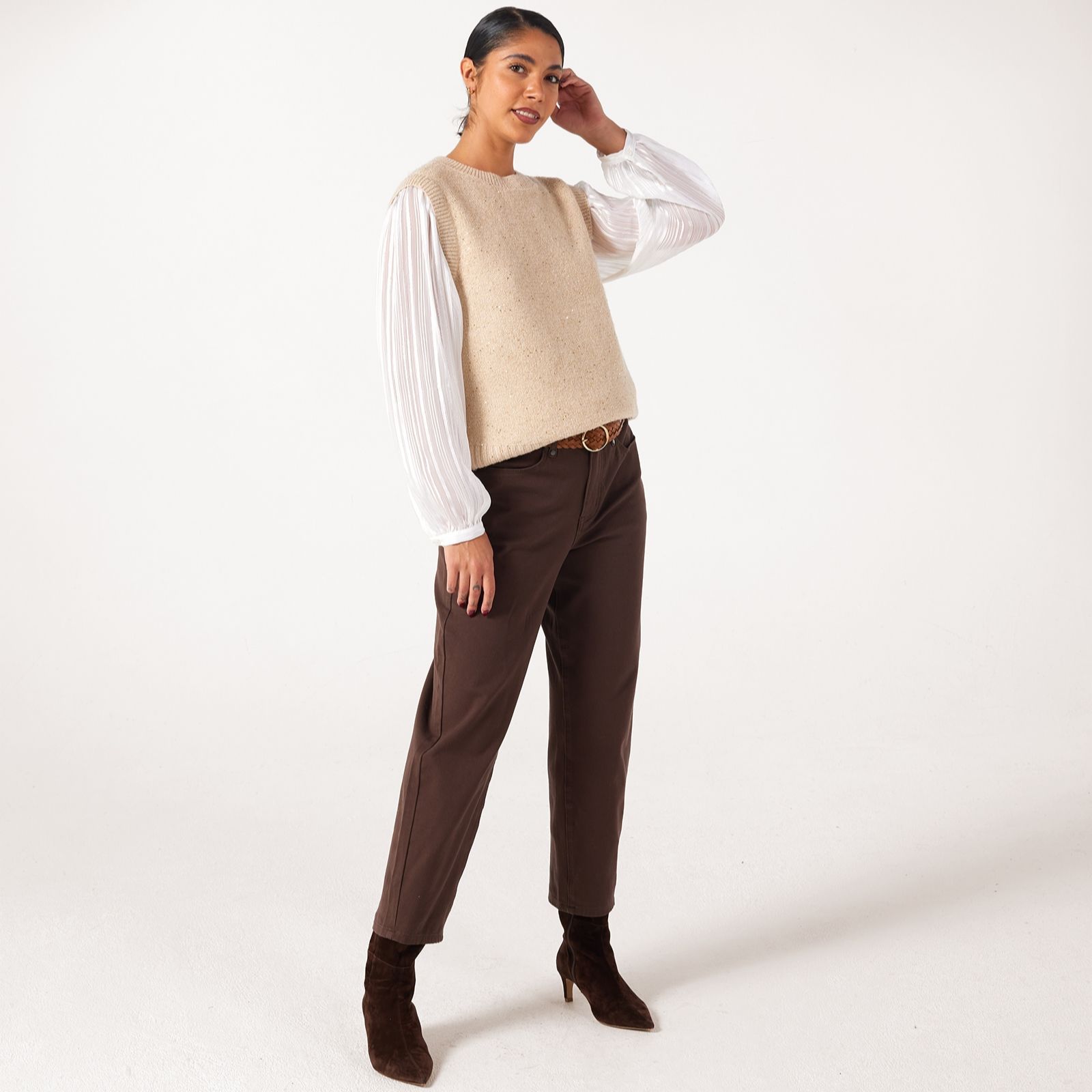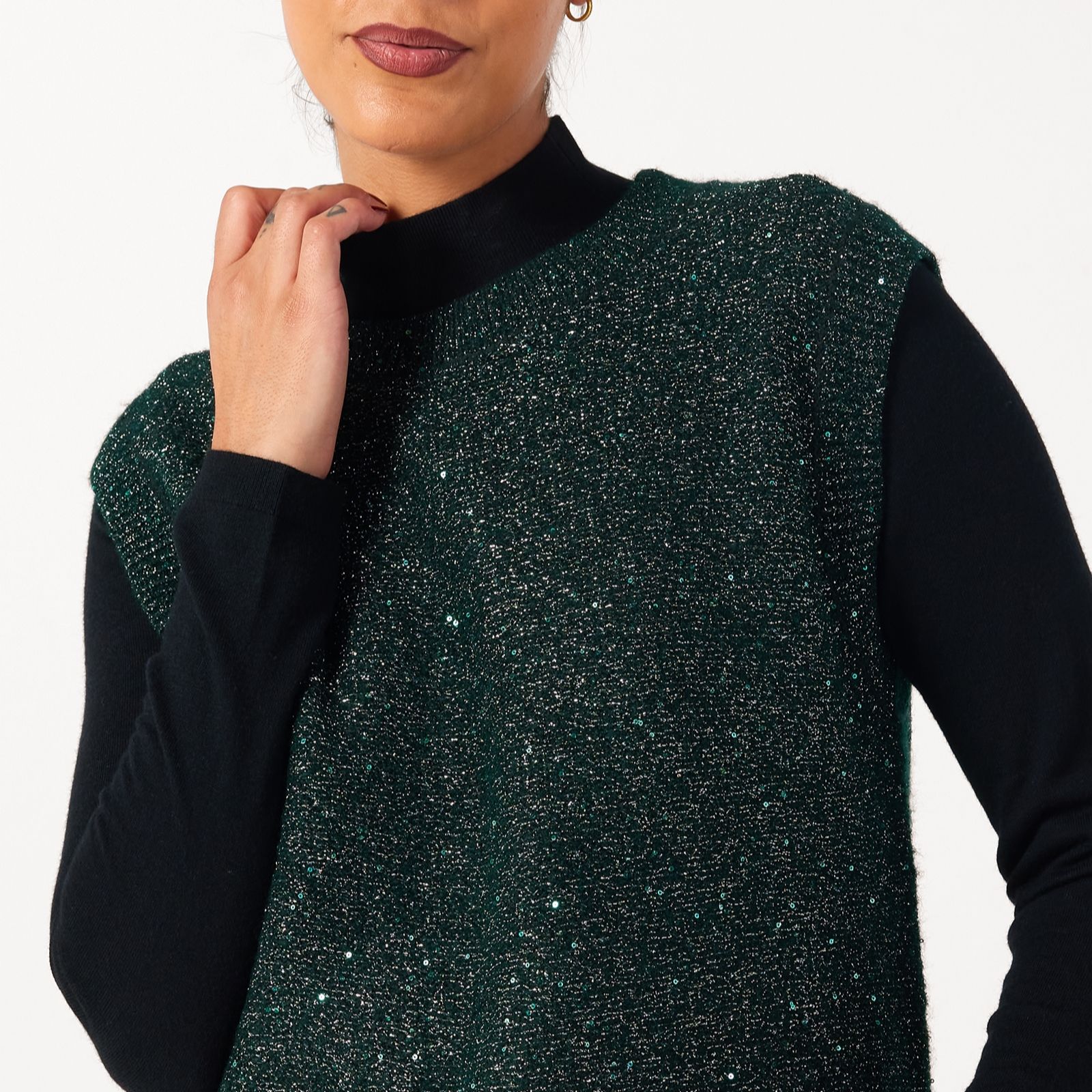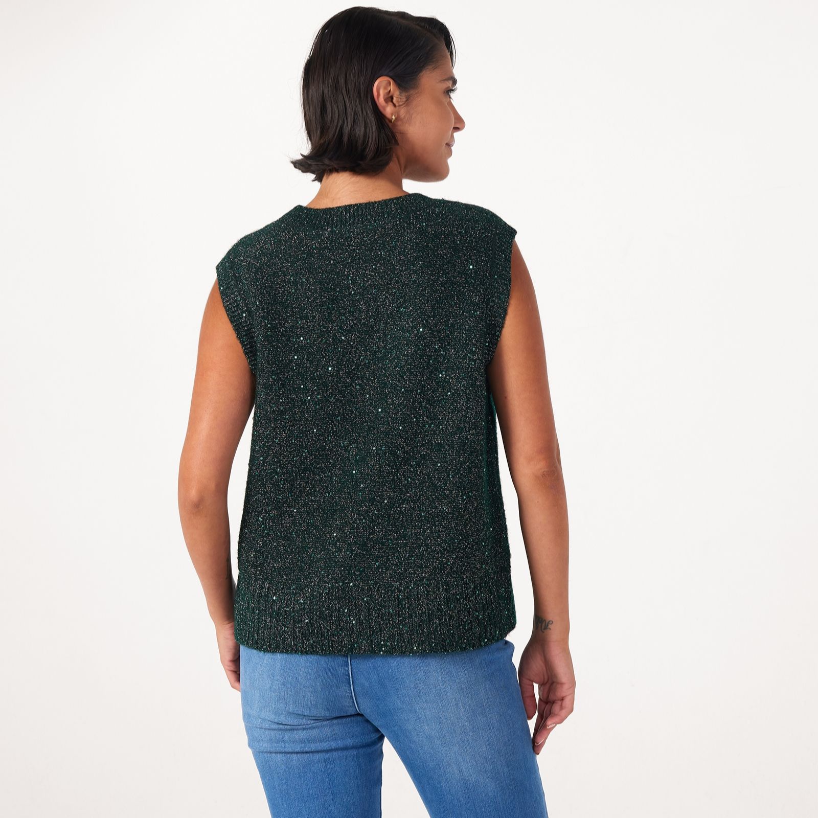 Bring a glamorous sparkle to your wardrobe with this sequin knitted vest from Ben De Lisi, designed to add sophistication to both casual and dressy outfits. The subtle shimmer woven into the soft knit makes it an eye-catching piece for layering, whether you're heading out for a coffee with friends or dressing up for a special evening. For a modern twist, place it over a crisp shirt or style it with your favourite jeans.