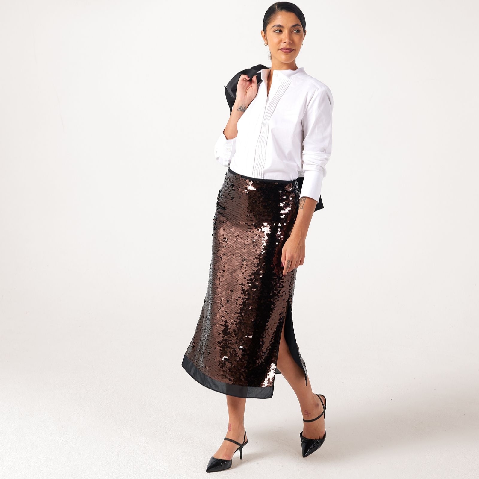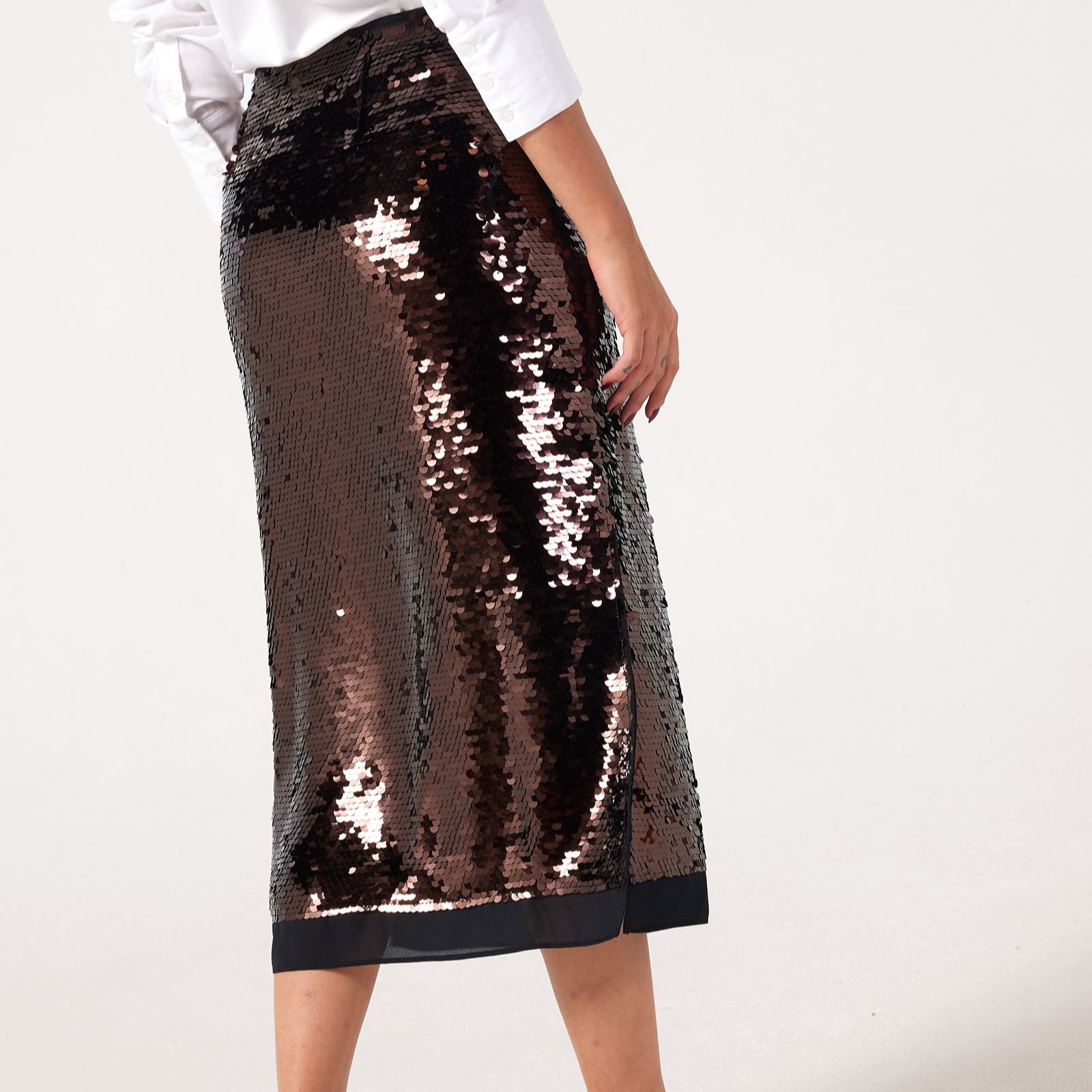 Make an entrance with the sequin midi skirt regular from Ben de Lisi, shimmering in a rich chocolate hue that brings instant glamour to your look. Perfect for evening events, festive gatherings or a chic dinner date, its sparkling design captures the light beautifully while offering timeless appeal. Pair it with a sleek blouse and heels for a sophisticated ensemble, or style with a cosy knit for a modern twist on party dressing.