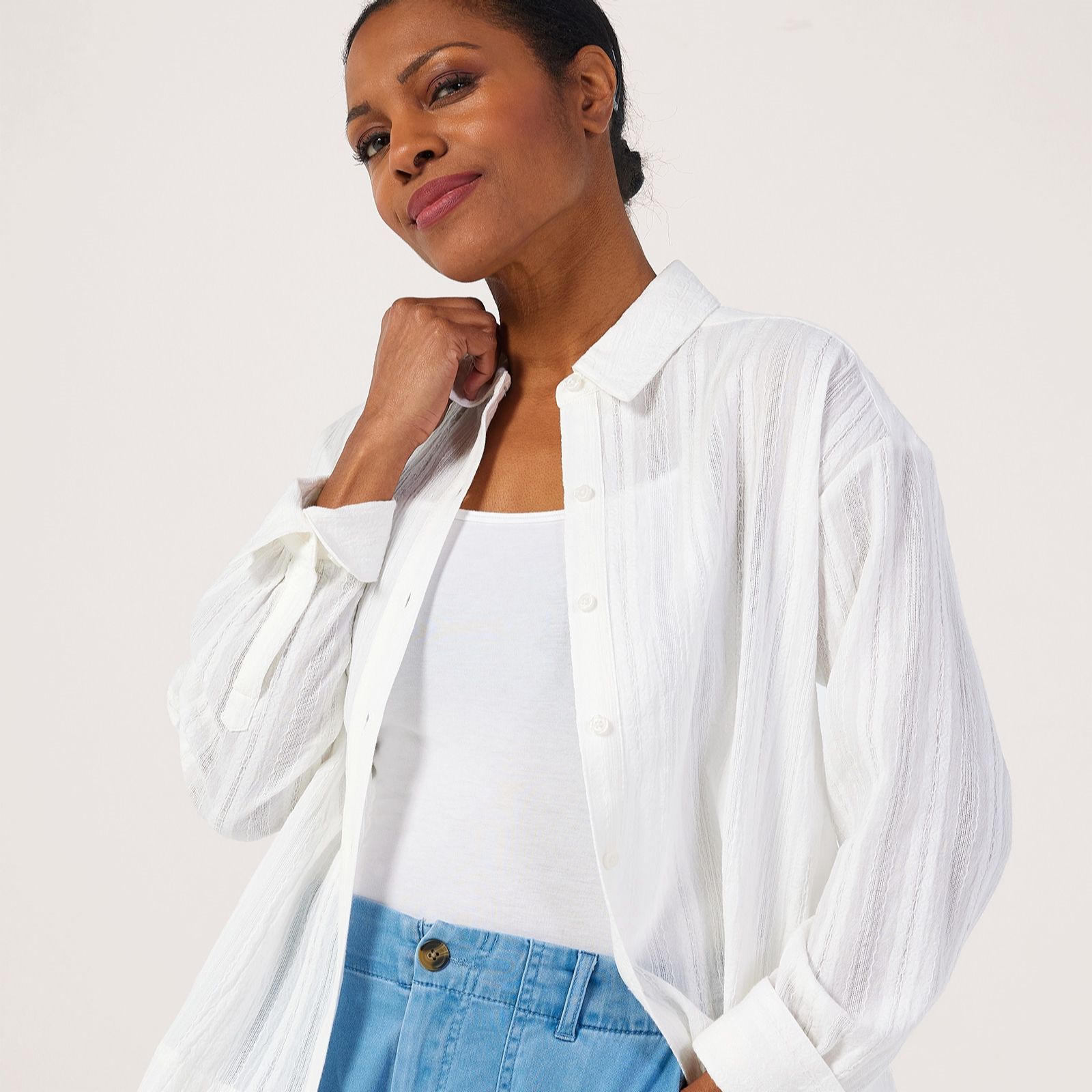 Smarten or relax your look with the effortlessly chic textured shirt from Ben de Lisi, designed with dropped shoulders and an exaggerated box pleat for a contemporary twist. Perfect for everything from casual weekend wear to a polished office outfit, this versatile piece transitions seamlessly between occasions. Try pairing it with tailored trousers for a refined ensemble or with jeans for a laid-back yet stylish vibe.