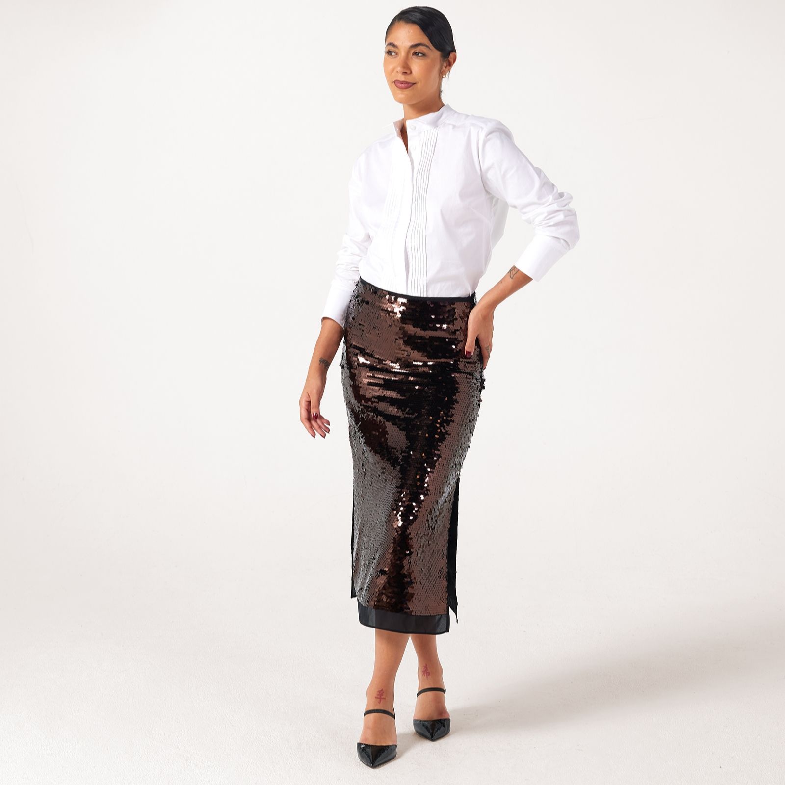Refine your wardrobe with the Ben de Lisi tuxedo shirt, a contemporary take on a timeless classic. Showcasing a structured wing tip collar and sharp tuxedo-inspired detailing, this shirt brings a touch of tailored elegance to both smart and casual looks. Ideal for everything from office meetings to evening events, it pairs beautifully with tailored trousers or layered under a chic blazer for added polish.