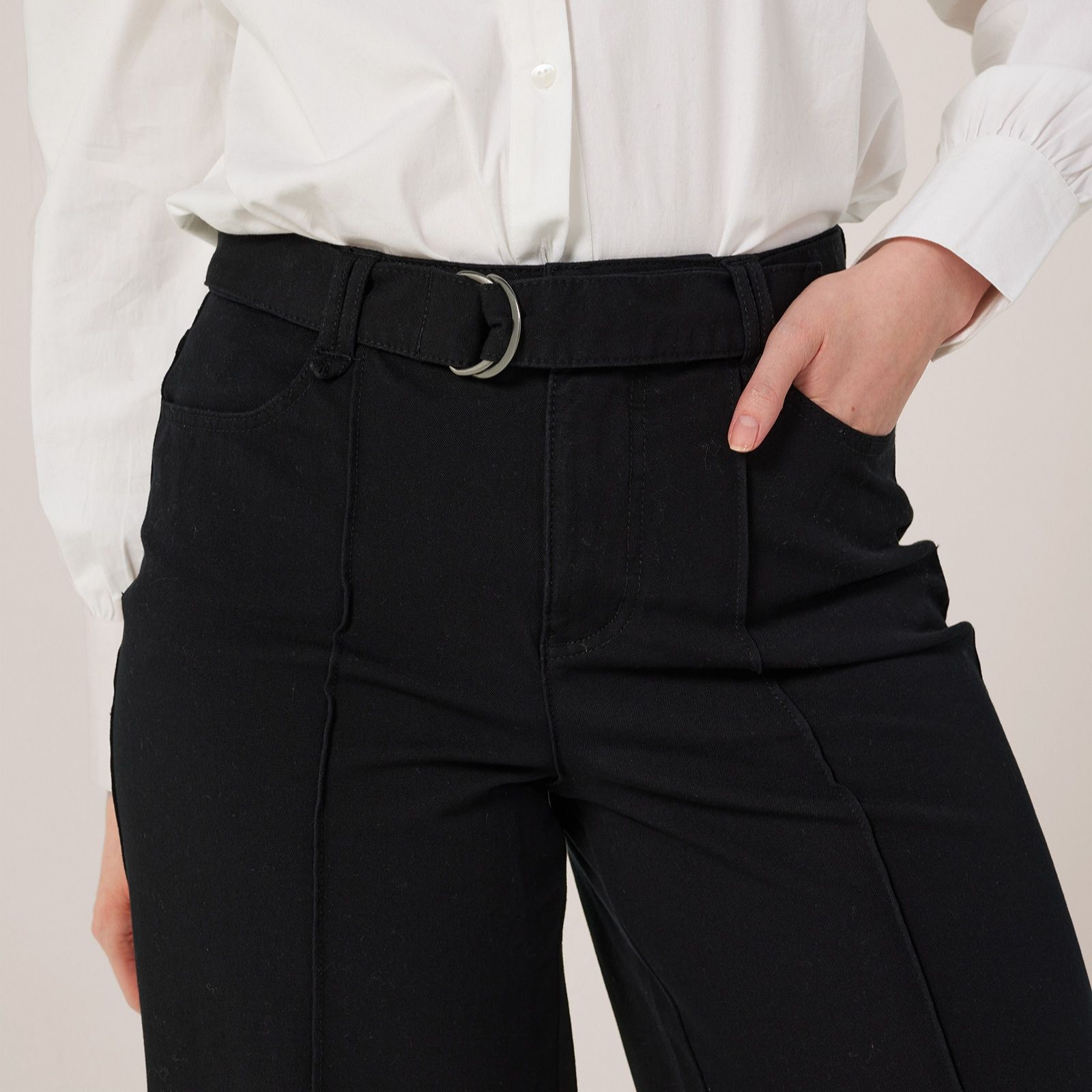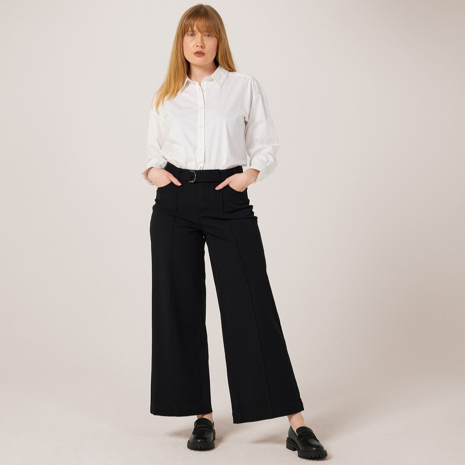 - Wide-leg fit