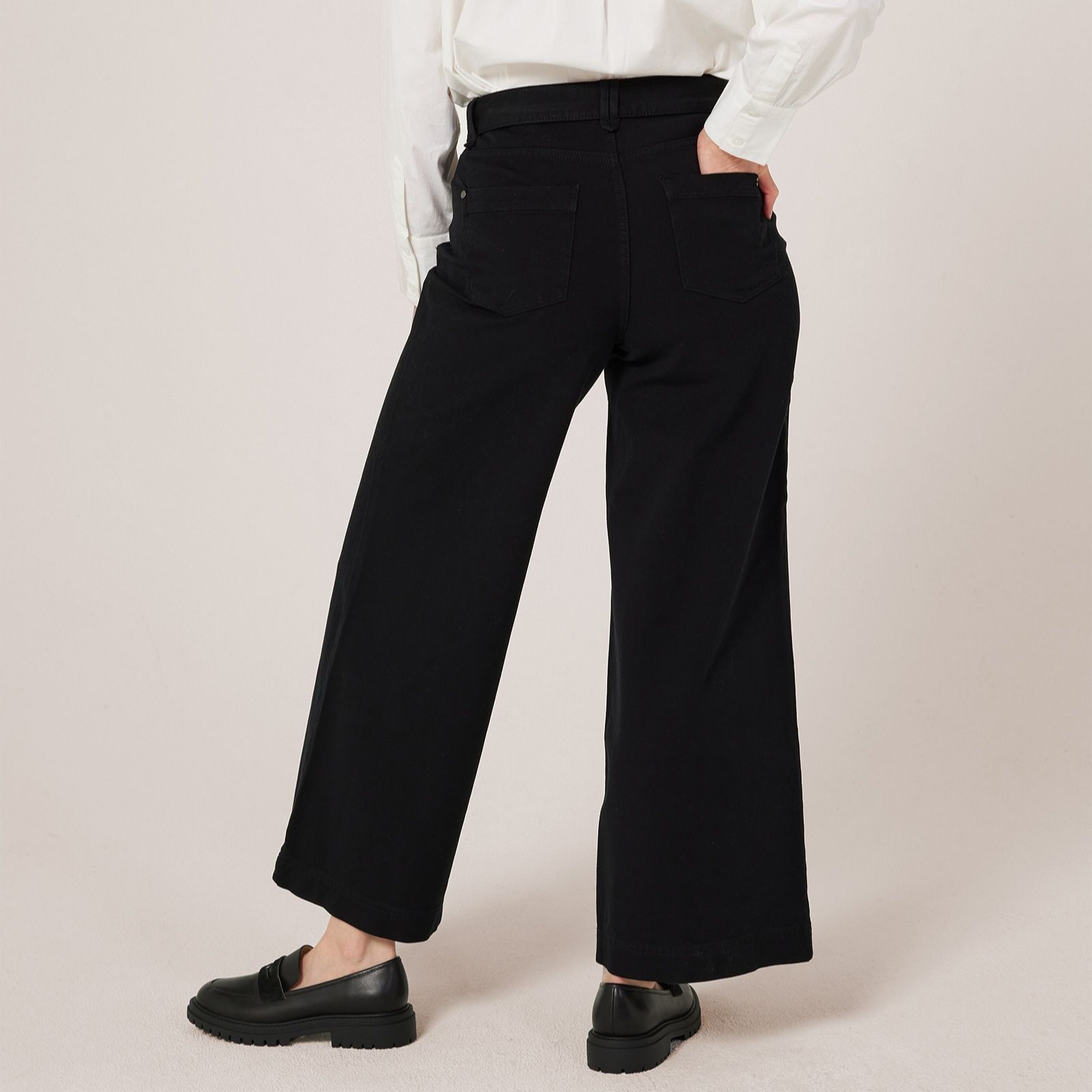 Step out in style with the Ben de Lisi twill wide leg jeans in a standard fit. These jeans boast a contemporary wide-leg silhouette that effortlessly blends comfort and fashion. Designed for versatility, they can be dressed up for a night out or worn casually for a day at the park. Pair them with a fitted blouse and heels for an elegant ensemble or keep it relaxed with a cosy jumper and trainers.