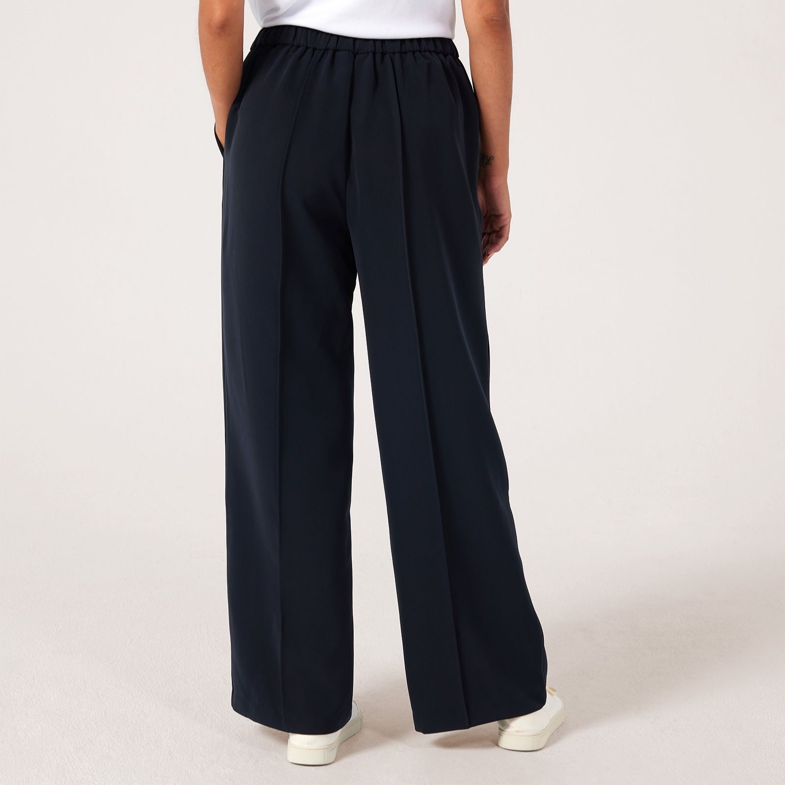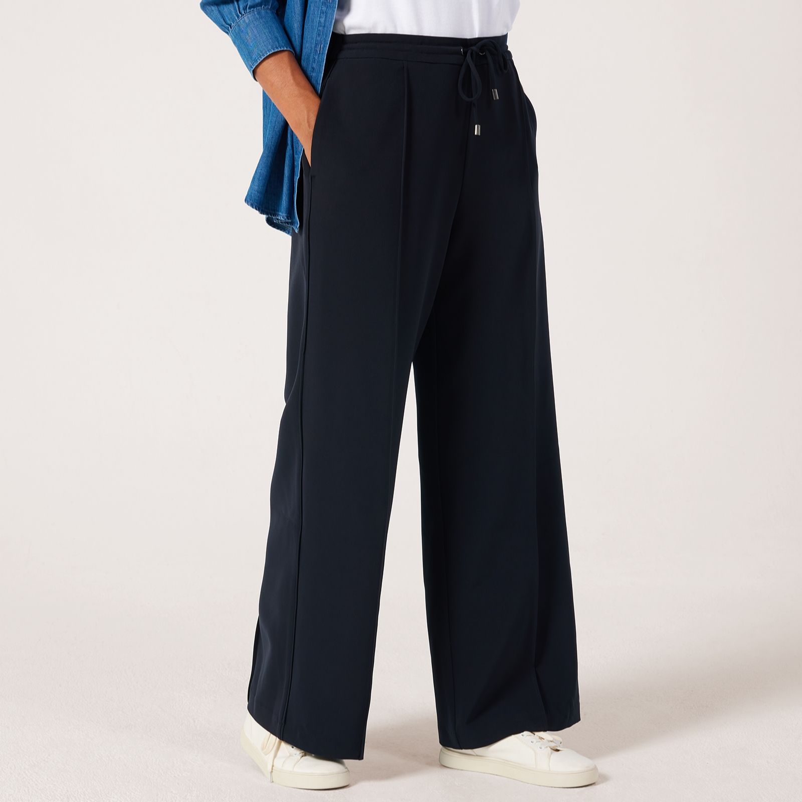 Refresh your everyday style with these wide leg piped trousers from Ben de Lisi, where tailored lines meet an easy elasticated back waistband for comfort that lasts all day. Whether you're heading to the office or enjoying a leisurely lunch, these trousers feature a sleek silhouette with subtle detailing that brings a polished touch to any occasion. For a modern twist, team with a fitted top and loafers.