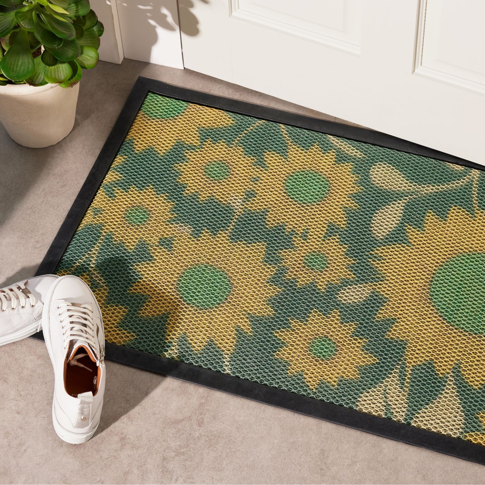 The Aqua Terra doormat features three layers of Terra-Mesh Technology, which is designed to provide the mat with a bouncy, soft texture that can hold up to 5kg of dirt as well as moisture.