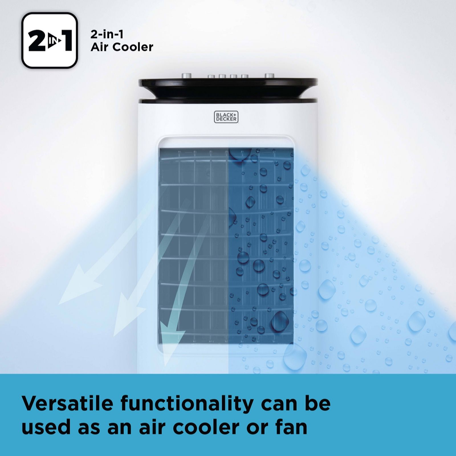 Stay cool and comfortable throughout the seasons with the Black and Decker 7L 2 in 1 Air Cooler, designed to deliver refreshing airflow and versatile performance to any room. Effortlessly switch between cooler and fan modes, adjust speed settings and direct airflow for a perfectly tailored environment, while dual ice packs and honeycomb filtration enhance cooling power and air quality. It's your perfect year-round companion.