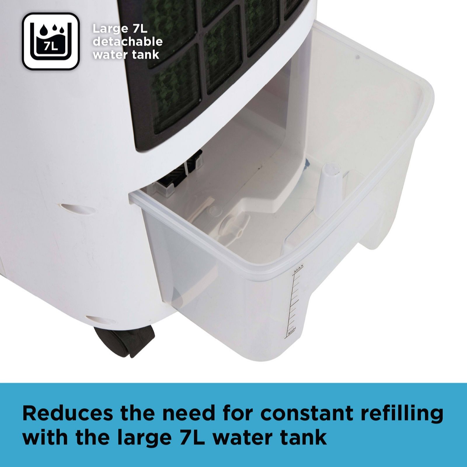 - Detachable 7 litre water tank for easy refilling