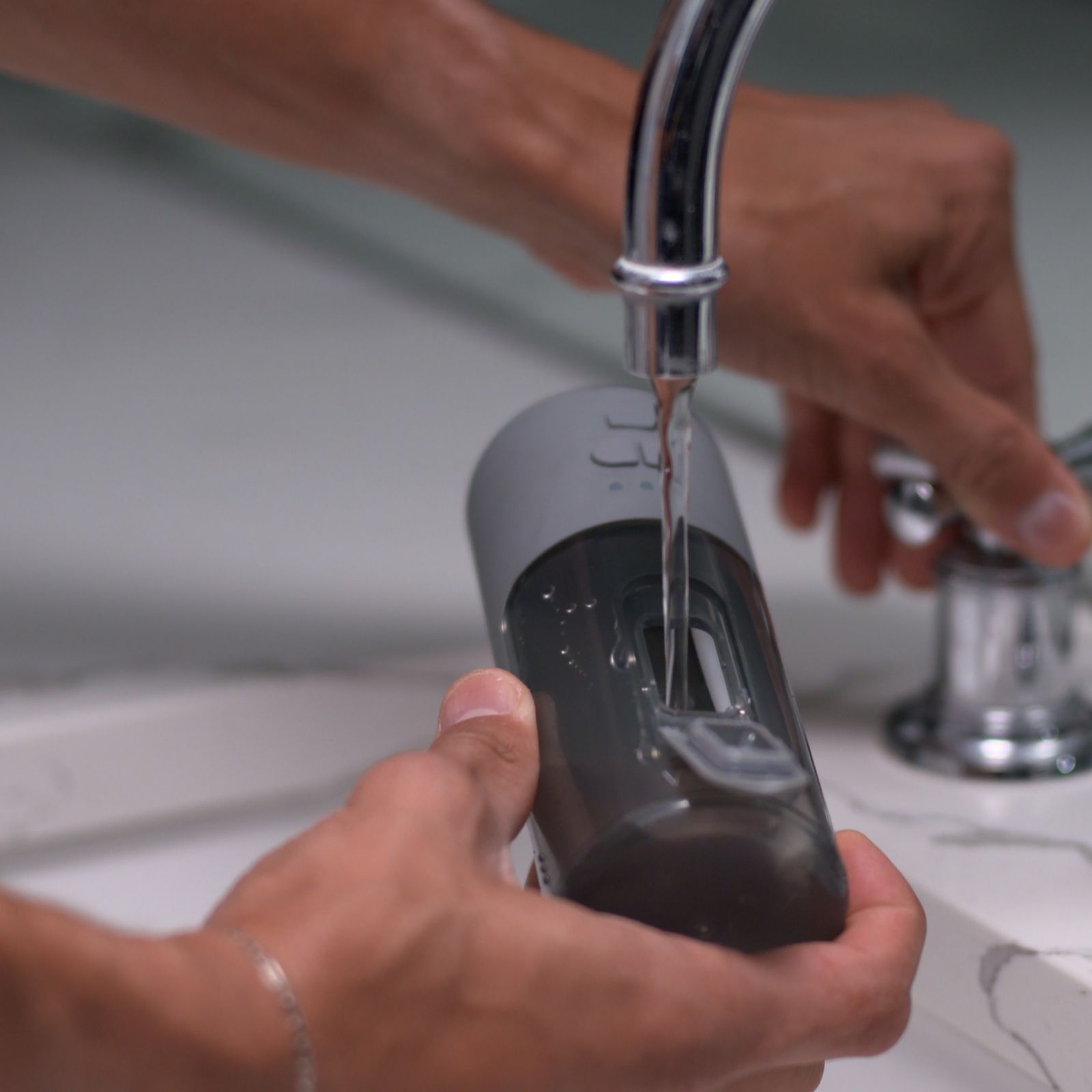 - Fill the basin with warm water, flip the nozzle, and spray!